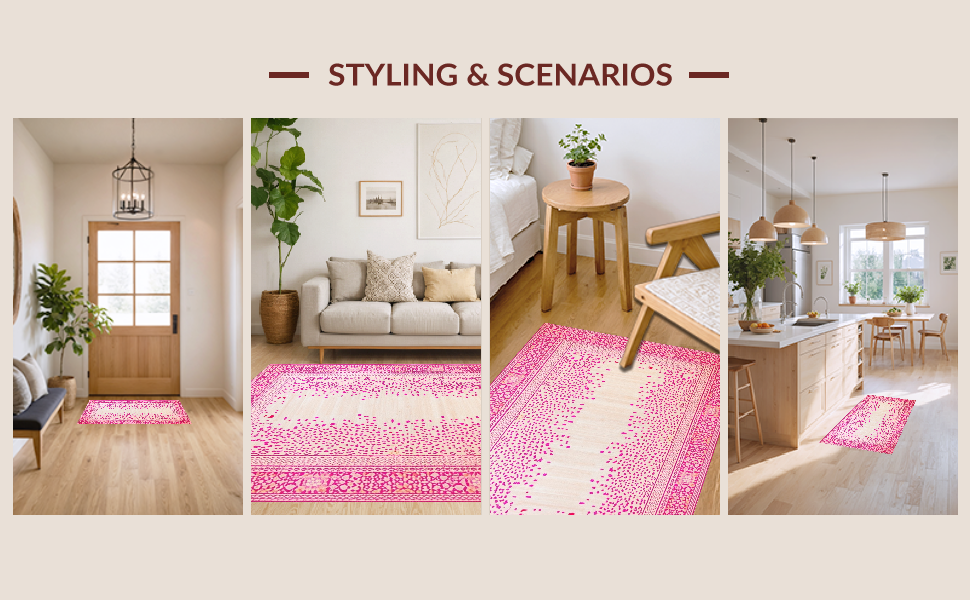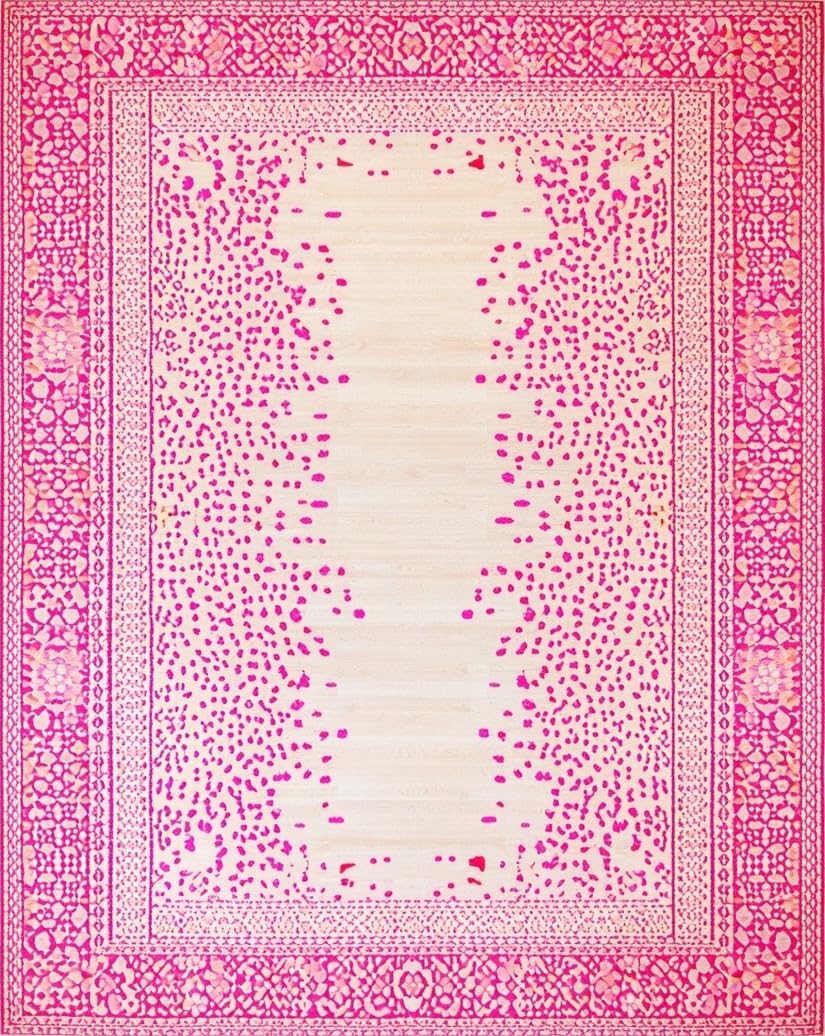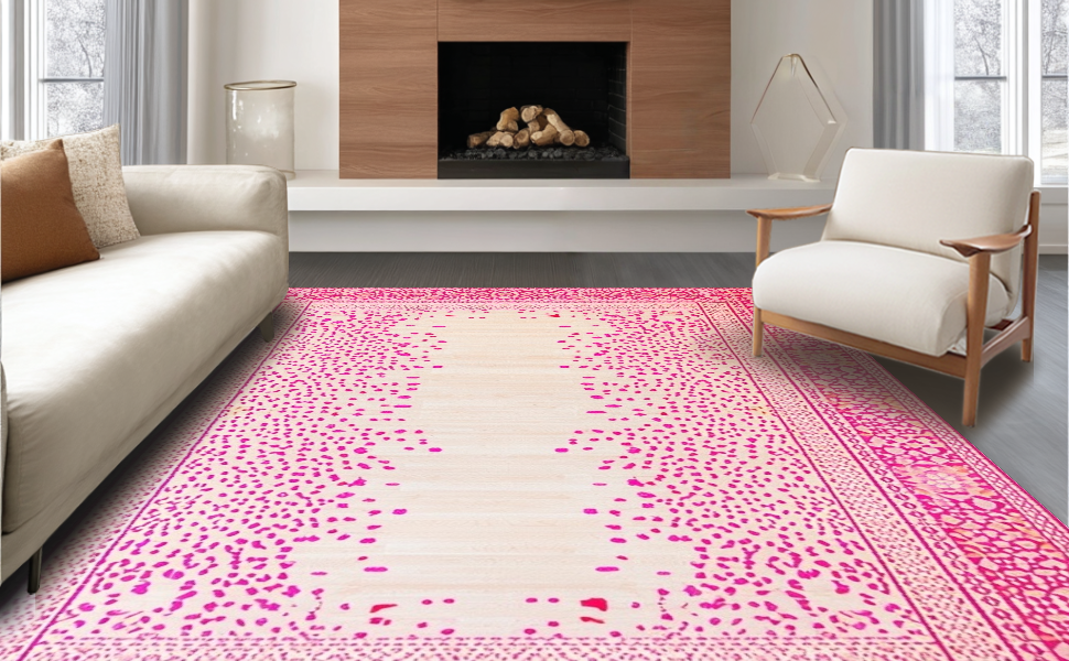 Ultra Soft Area Rug, Non Slip, Stain Resistant, Washable Area Rugs for Living Room, Bedroom, Minimalist Pink Leopard Graphic Style(Pink) Overview: