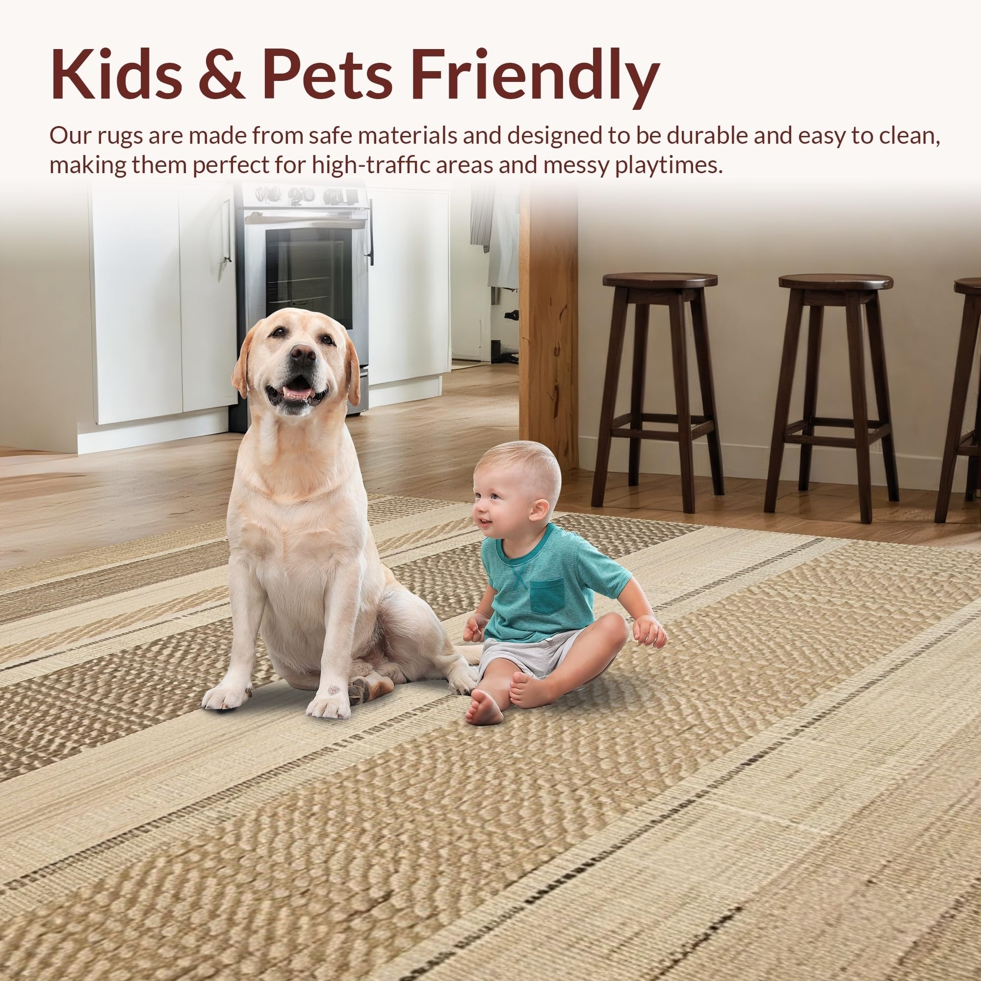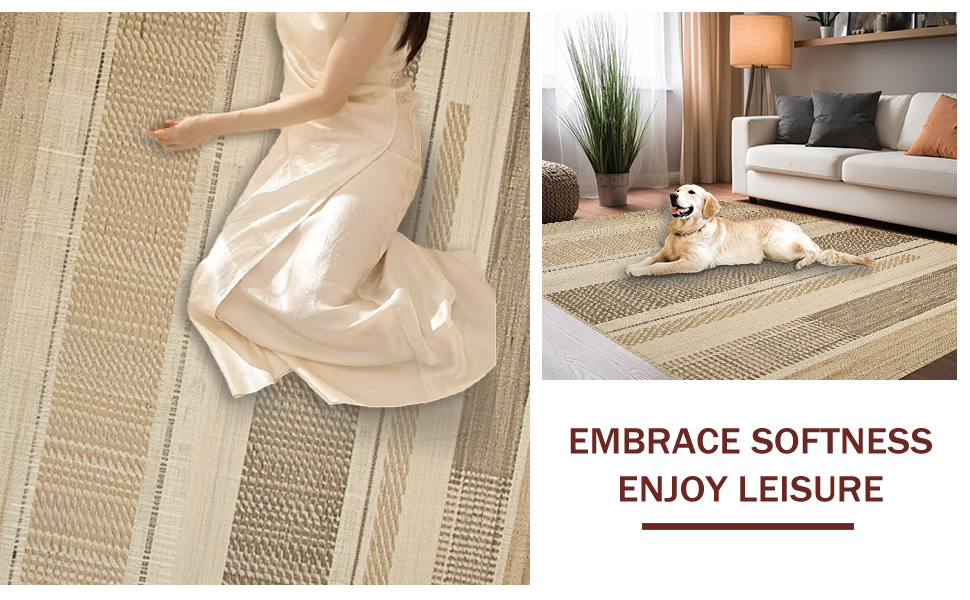 Ultra Soft Area Rug, Non Slip, Stain Resistant, Washable Area Rugs for Living Room, Bedroom, Minimalist Reversible Organic Design(Beige) Overview: