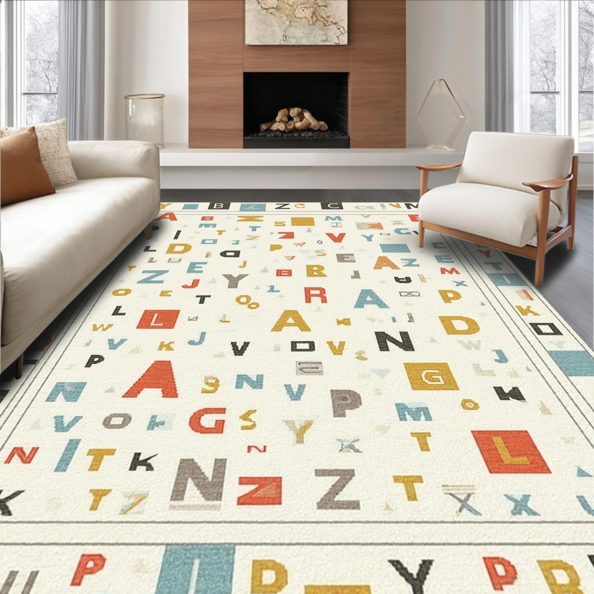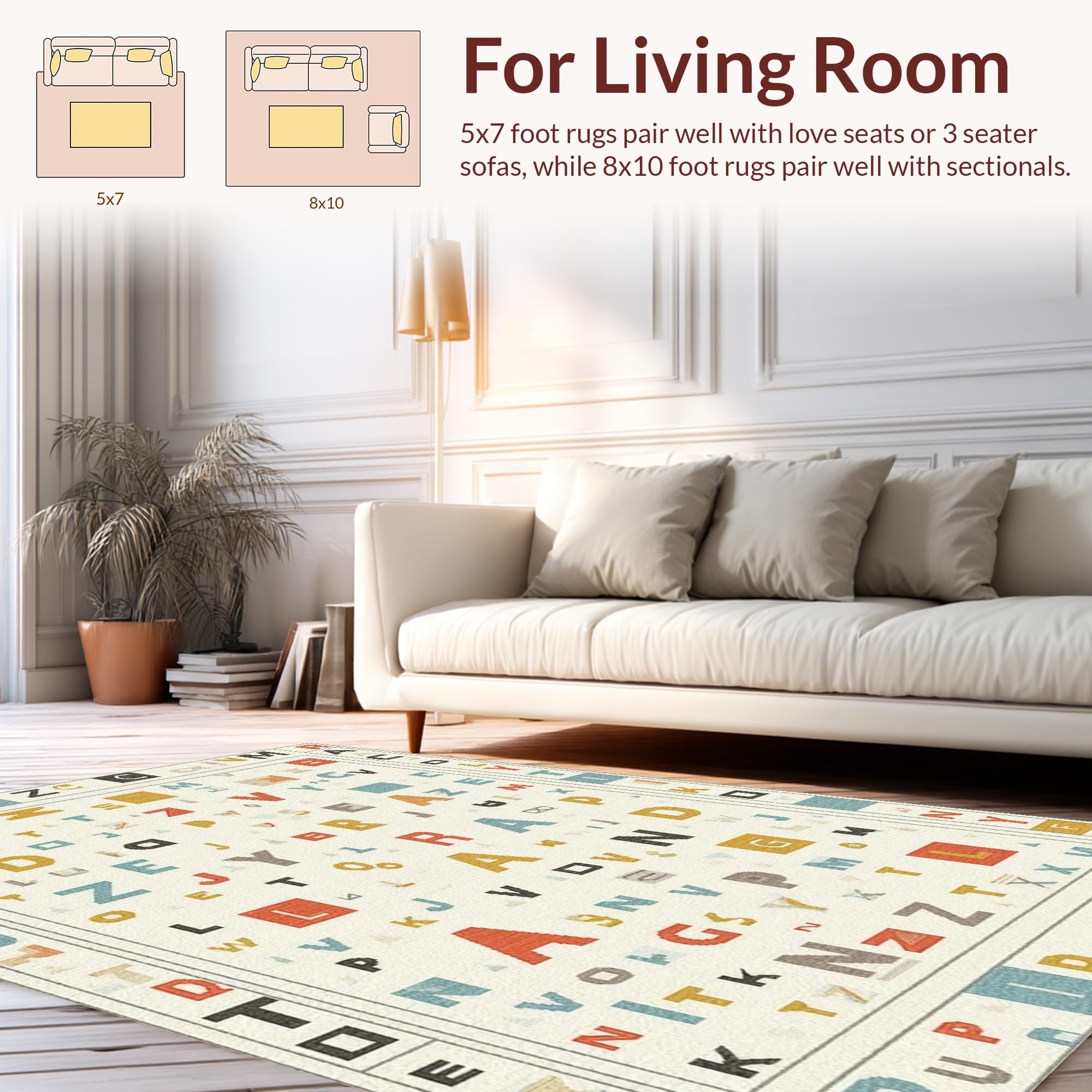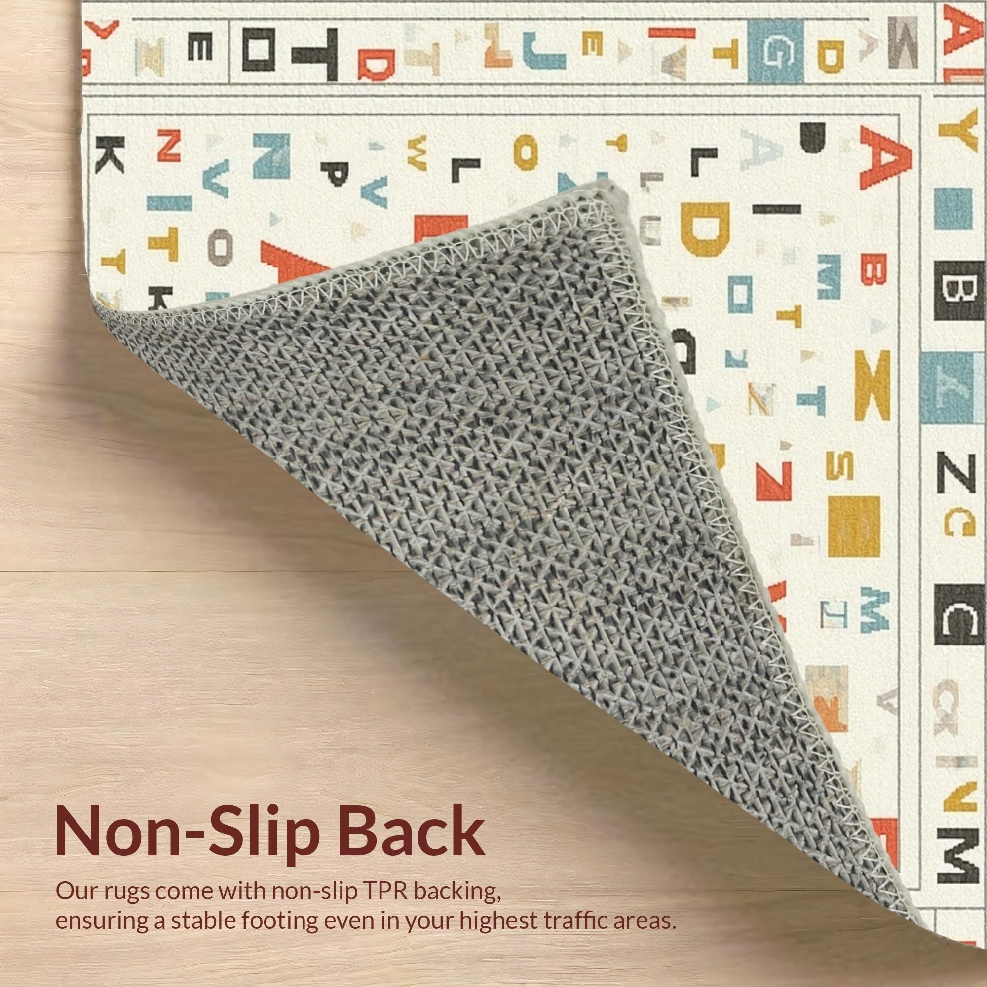 Ultra Soft Area Rug, Non Slip, Stain Resistant, Washable Area Rugs for Living Room, Bedroom, Minimalist Round Typography Art(Red) Overview: