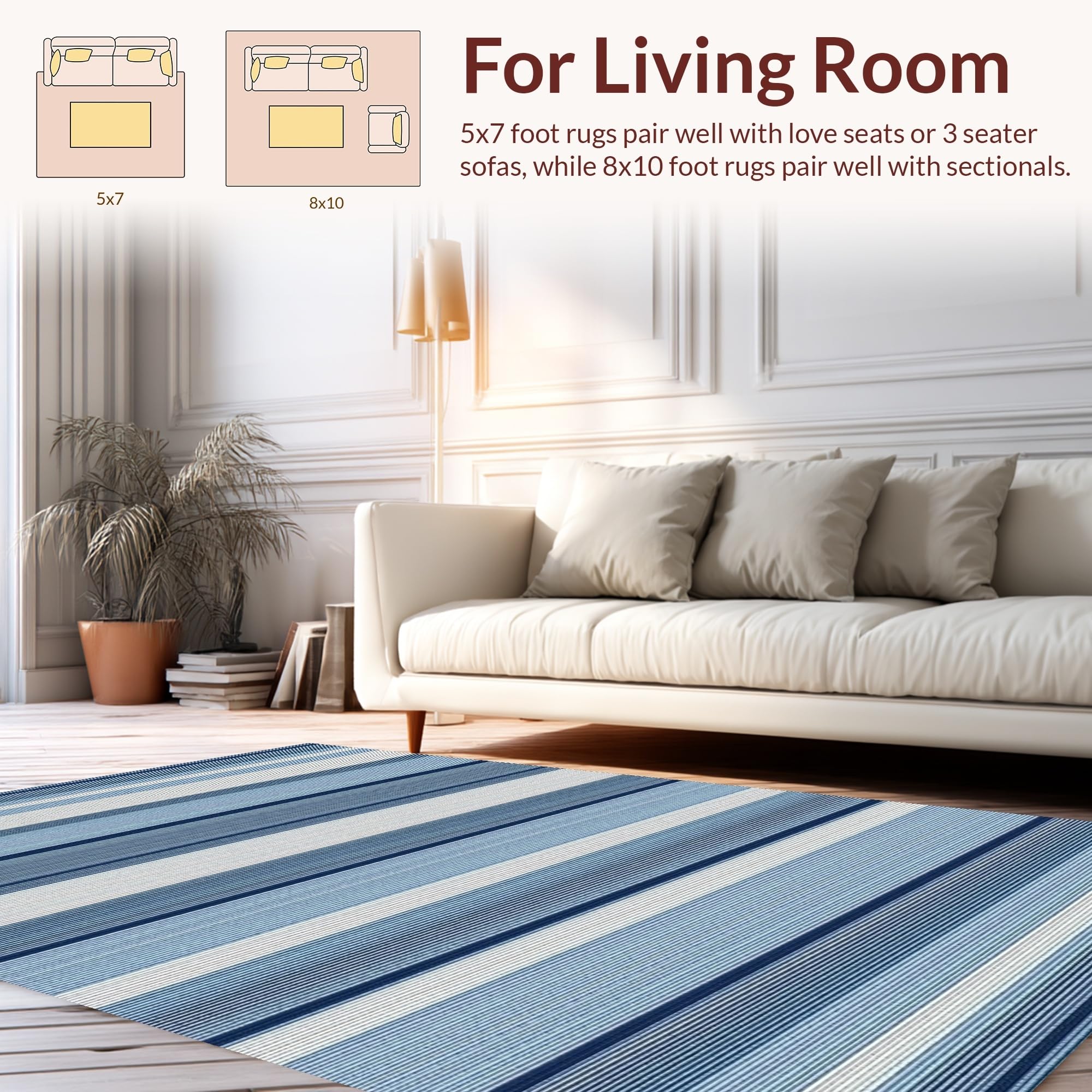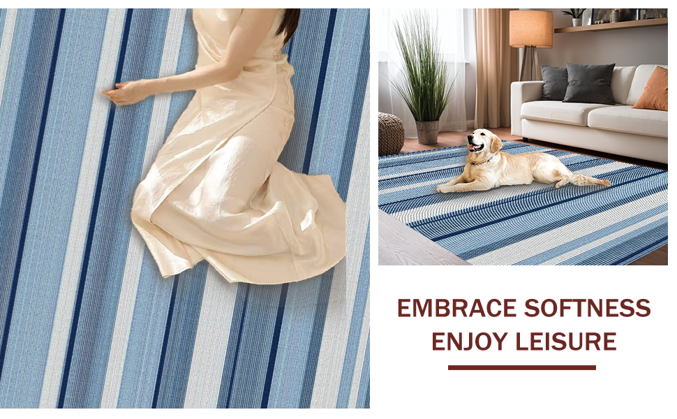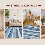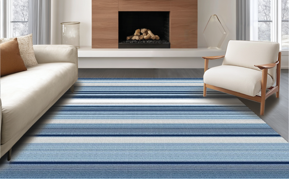 Ultra Soft Area Rug, Non Slip, Stain Resistant, Washable Area Rugs for Living Room, Bedroom, Minimalist Rustic Striped Texture(Blue) Overview: