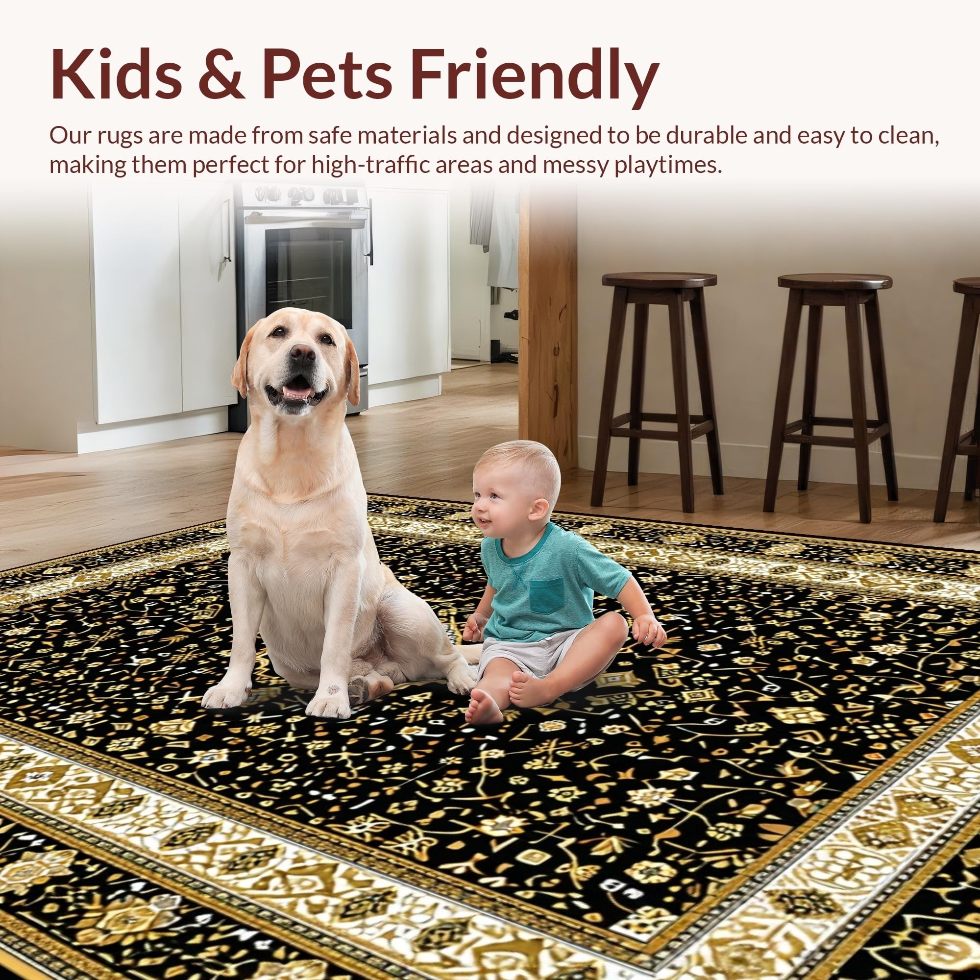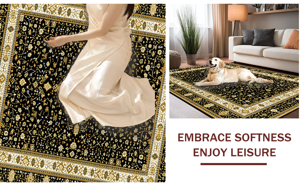 Ultra Soft Area Rug, Non Slip, Stain Resistant, Washable Area Rugs for Living Room, Bedroom, Minimalist Soft Abstract Aesthetic(Black) Overview: