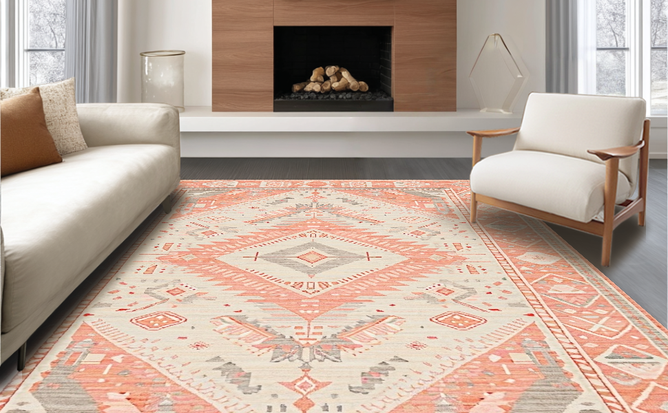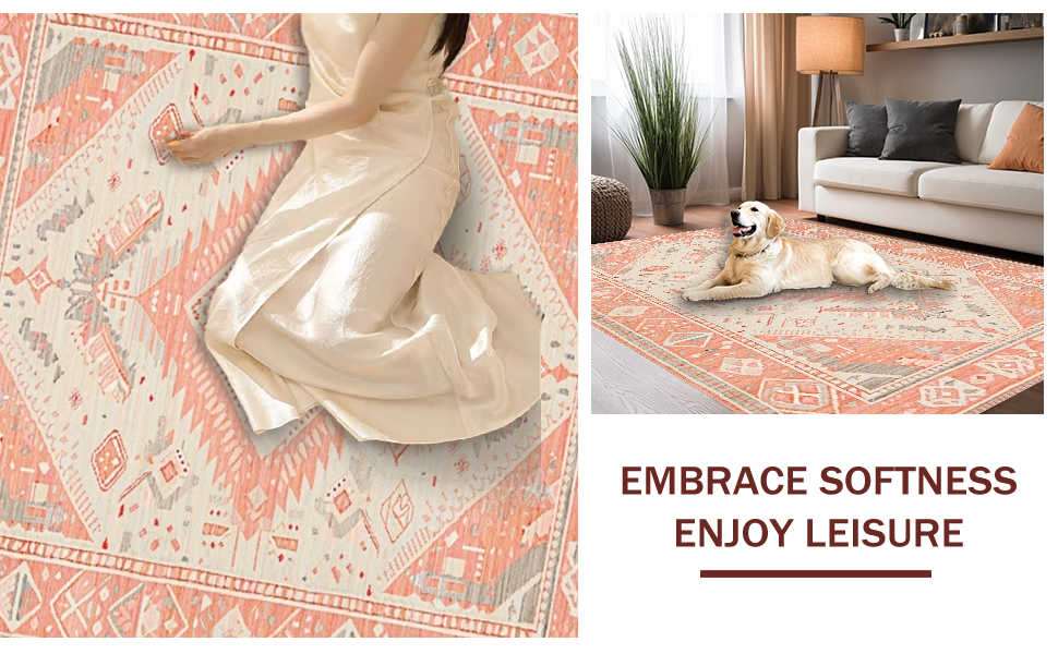 Ultra Soft Area Rug, Non Slip, Stain Resistant, Washable Area Rugs for Living Room, Bedroom, Minimalist Soft Beige Damask Style(Pink) Overview:
