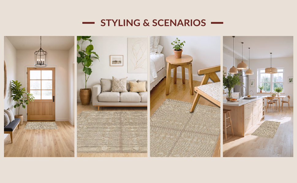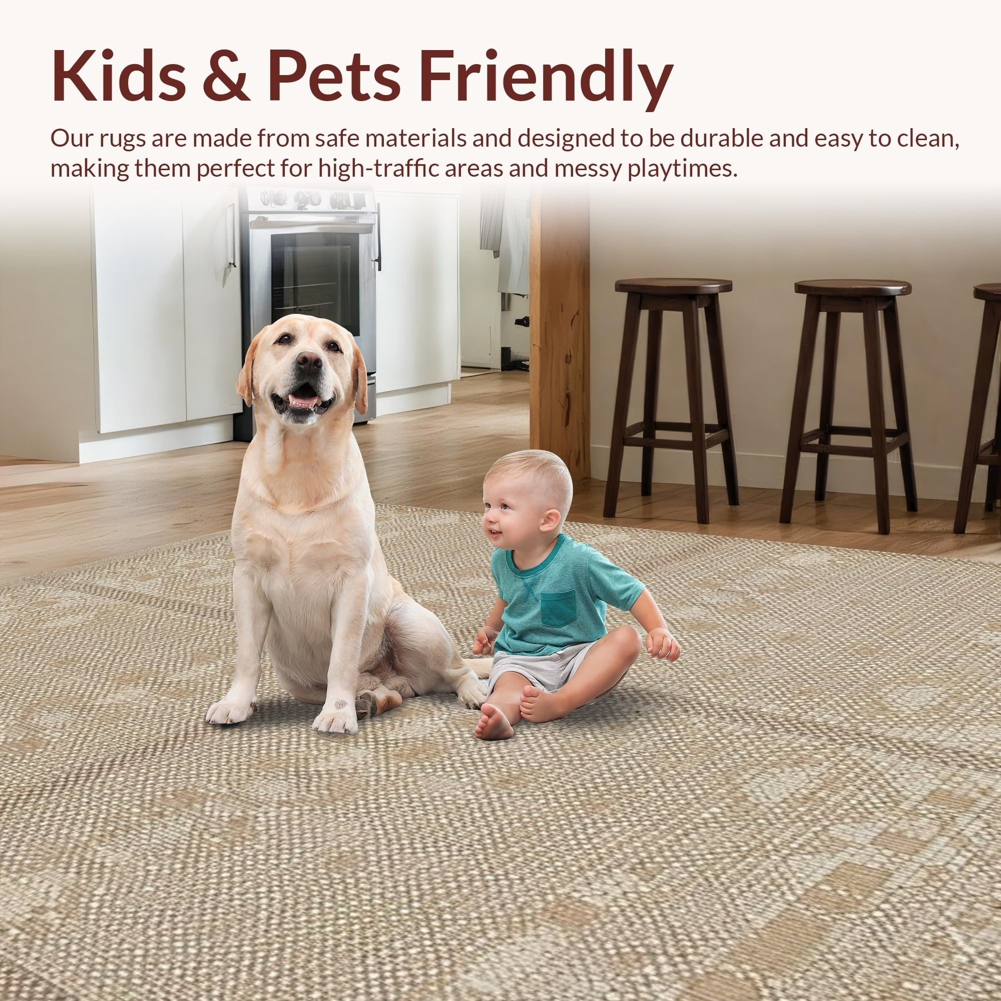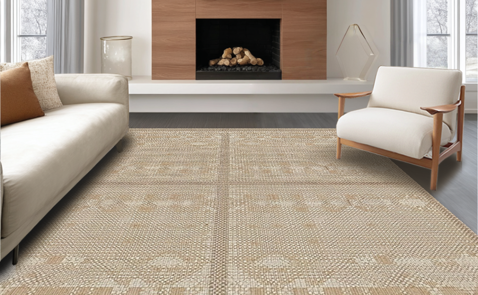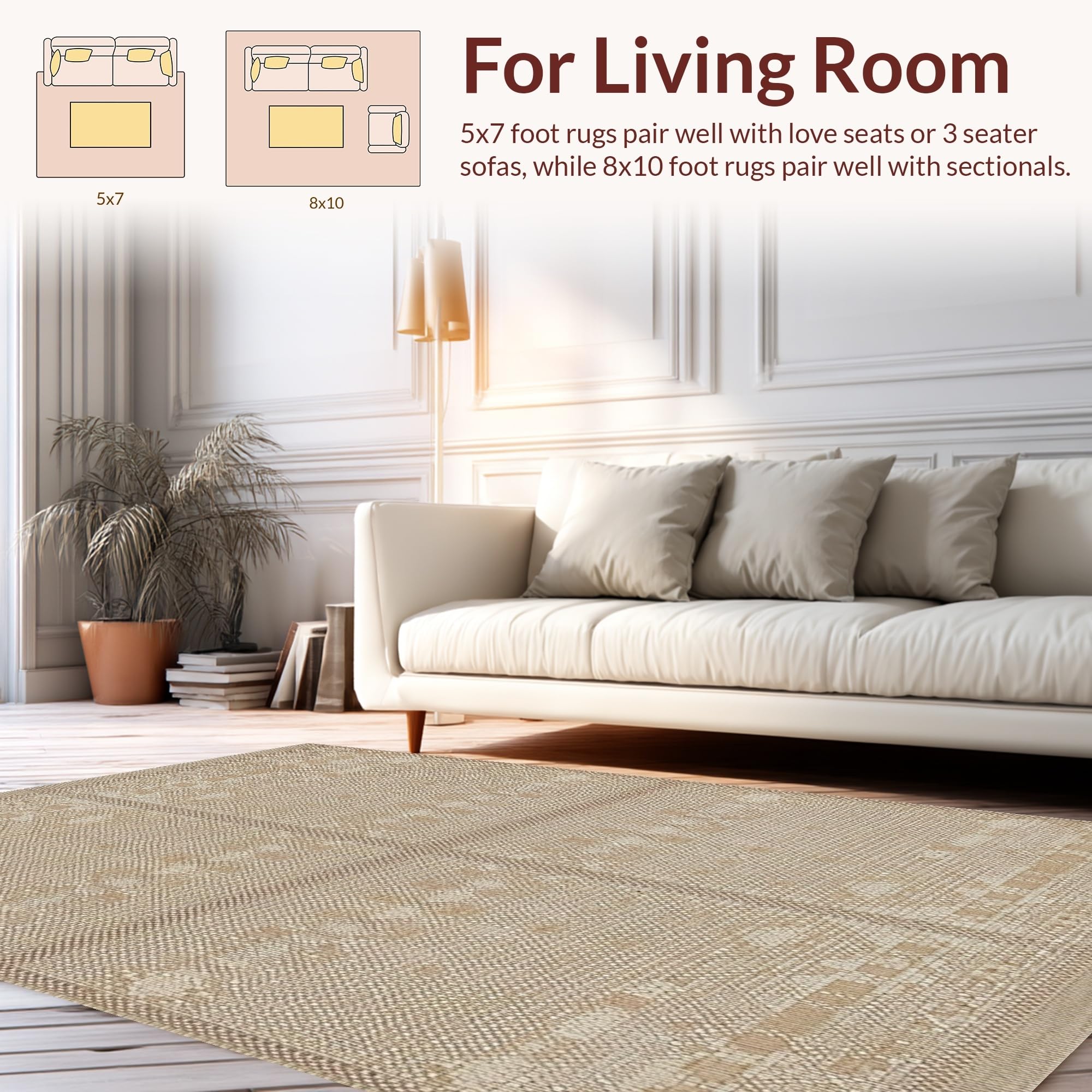 Ultra Soft Area Rug, Non Slip, Stain Resistant, Washable Area Rugs for Living Room, Bedroom, Minimalist Soft Beige Lattice Style(Beige) Overview: