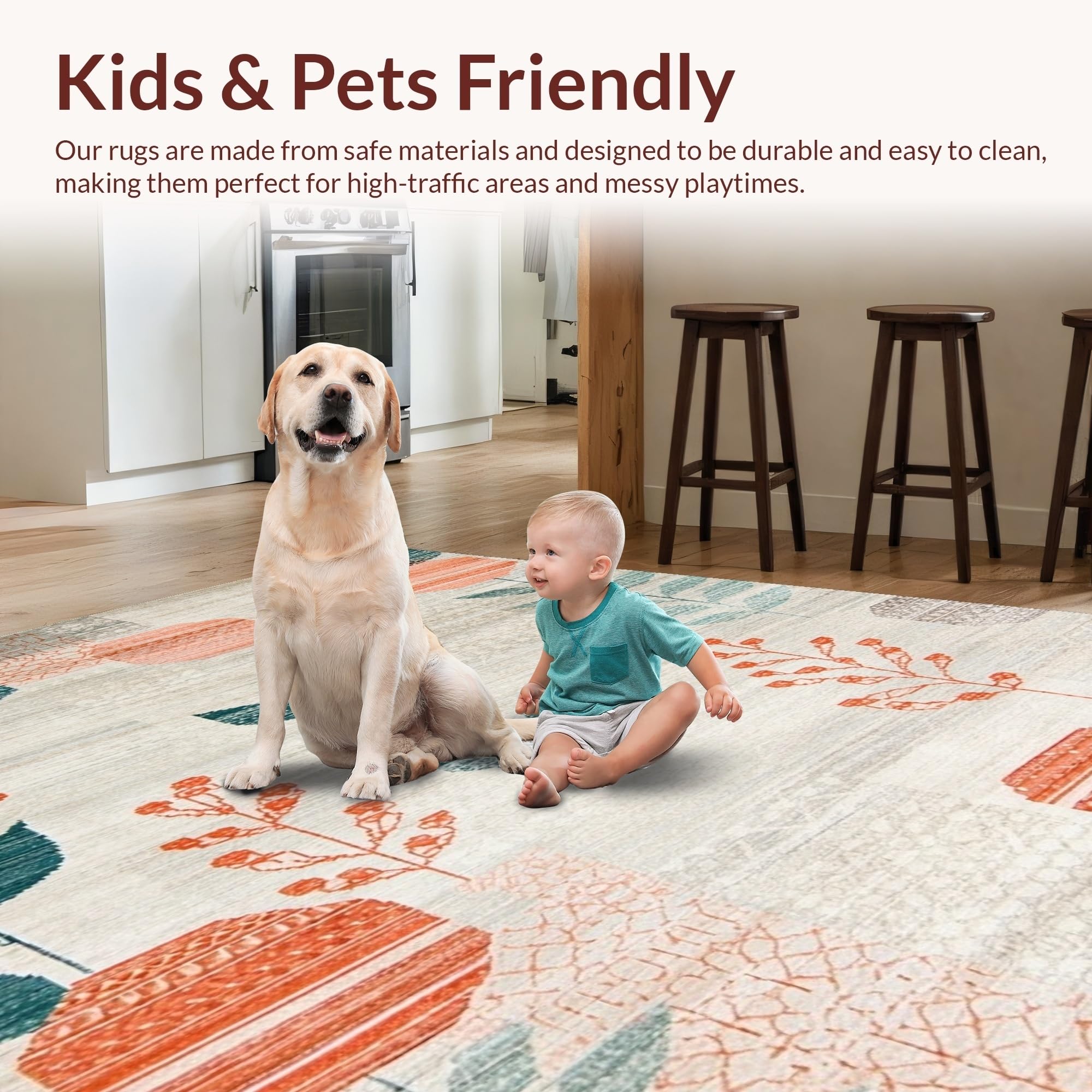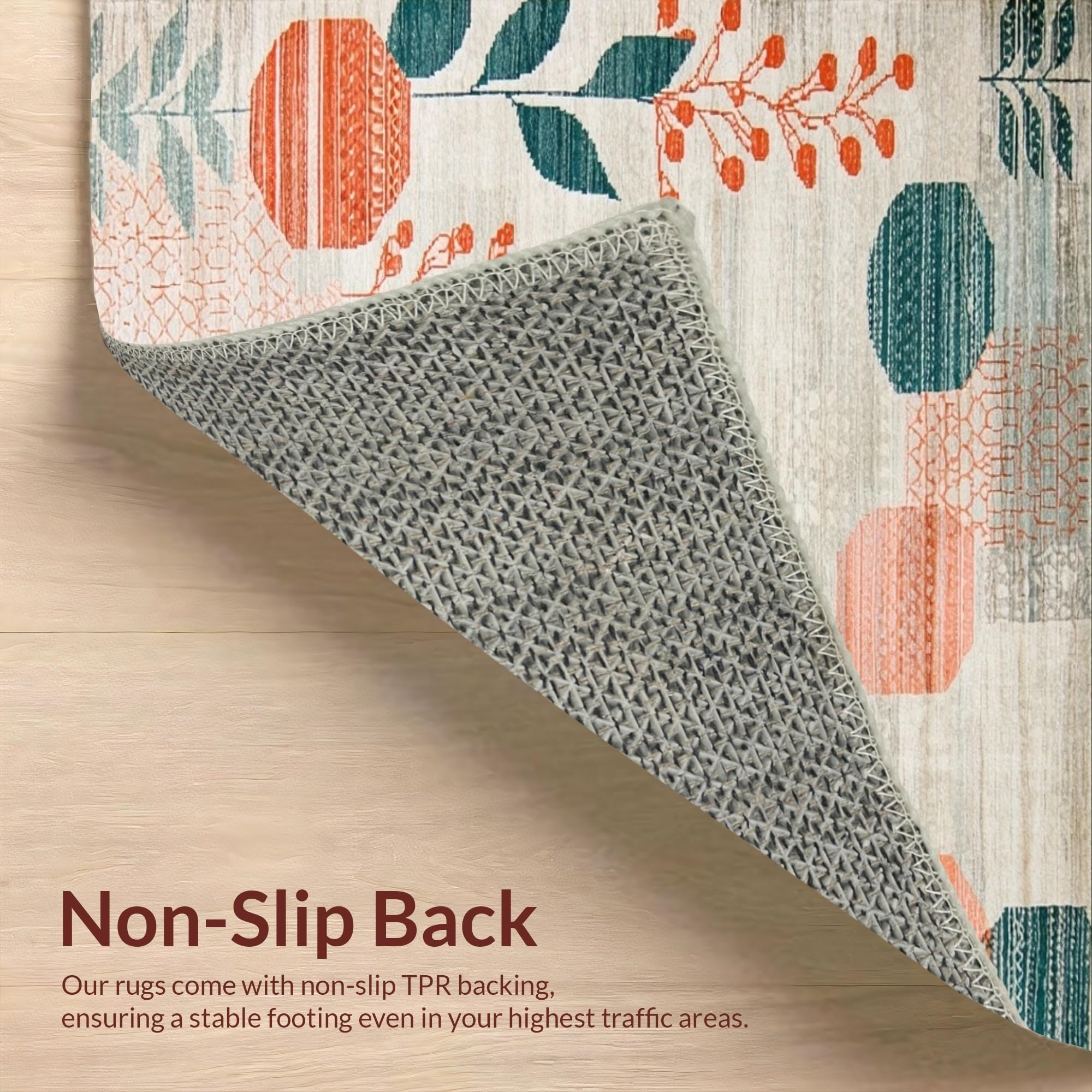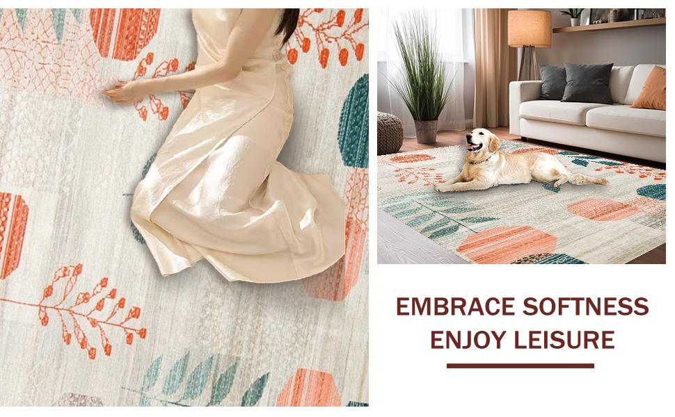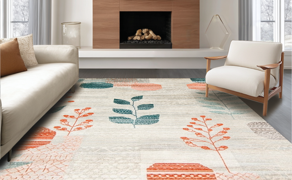 Ultra Soft Area Rug, Non Slip, Stain Resistant, Washable Area Rugs for Living Room, Bedroom, Minimalist Soft Botanical Motif(Beige) Overview: