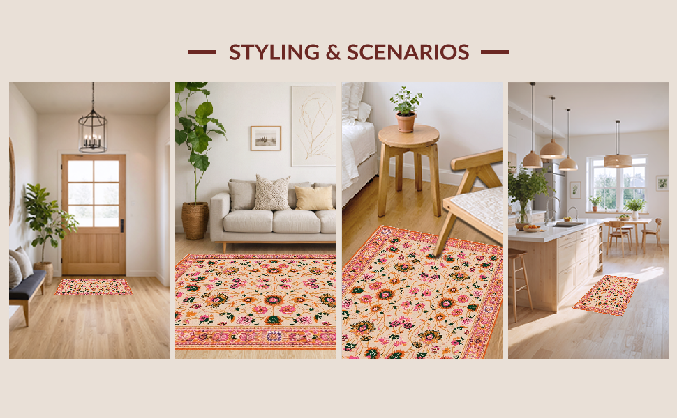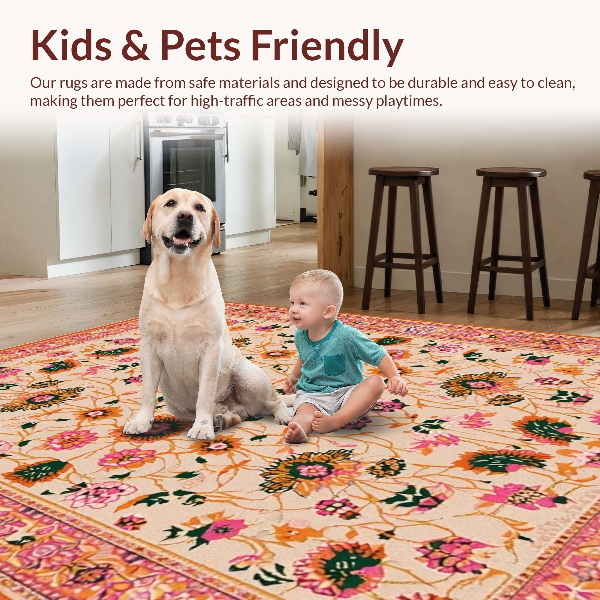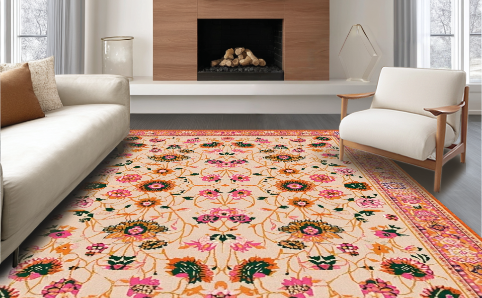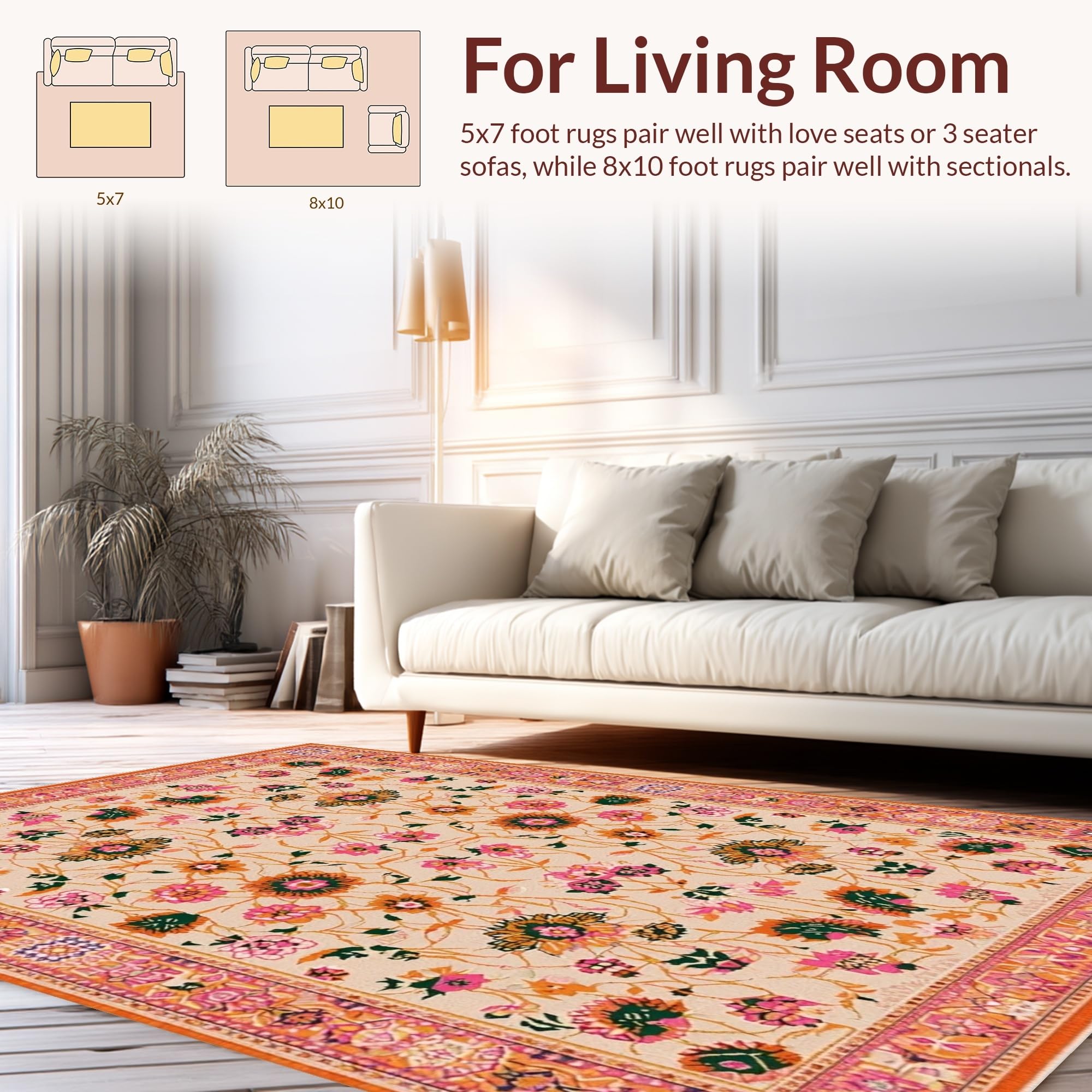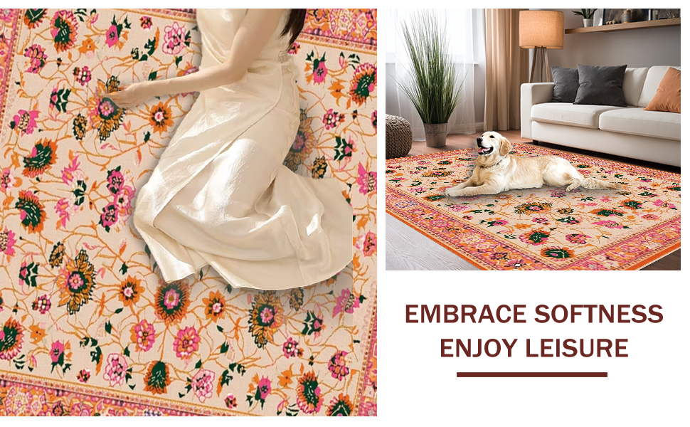 Ultra Soft Area Rug, Non Slip, Stain Resistant, Washable Area Rugs for Living Room, Bedroom, Minimalist Soft Floral Composition(Beige) Overview: