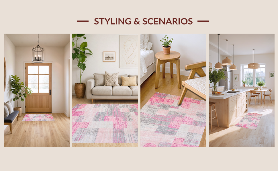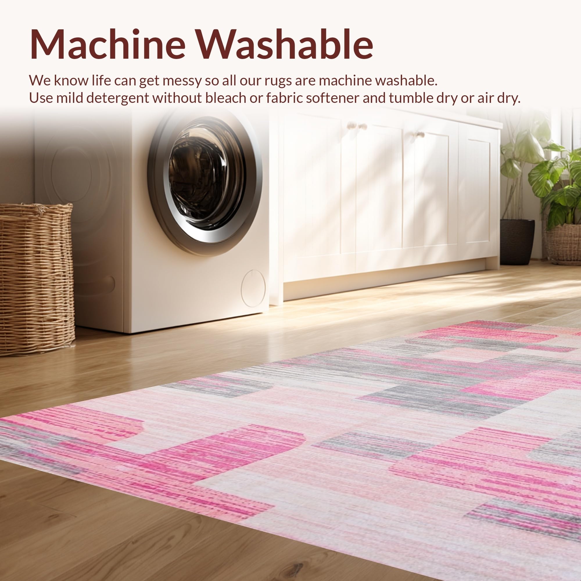 Ultra Soft Area Rug, Non Slip, Stain Resistant, Washable Area Rugs for Living Room, Bedroom, Minimalist Soft Tone Composition(Pink) Overview: