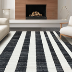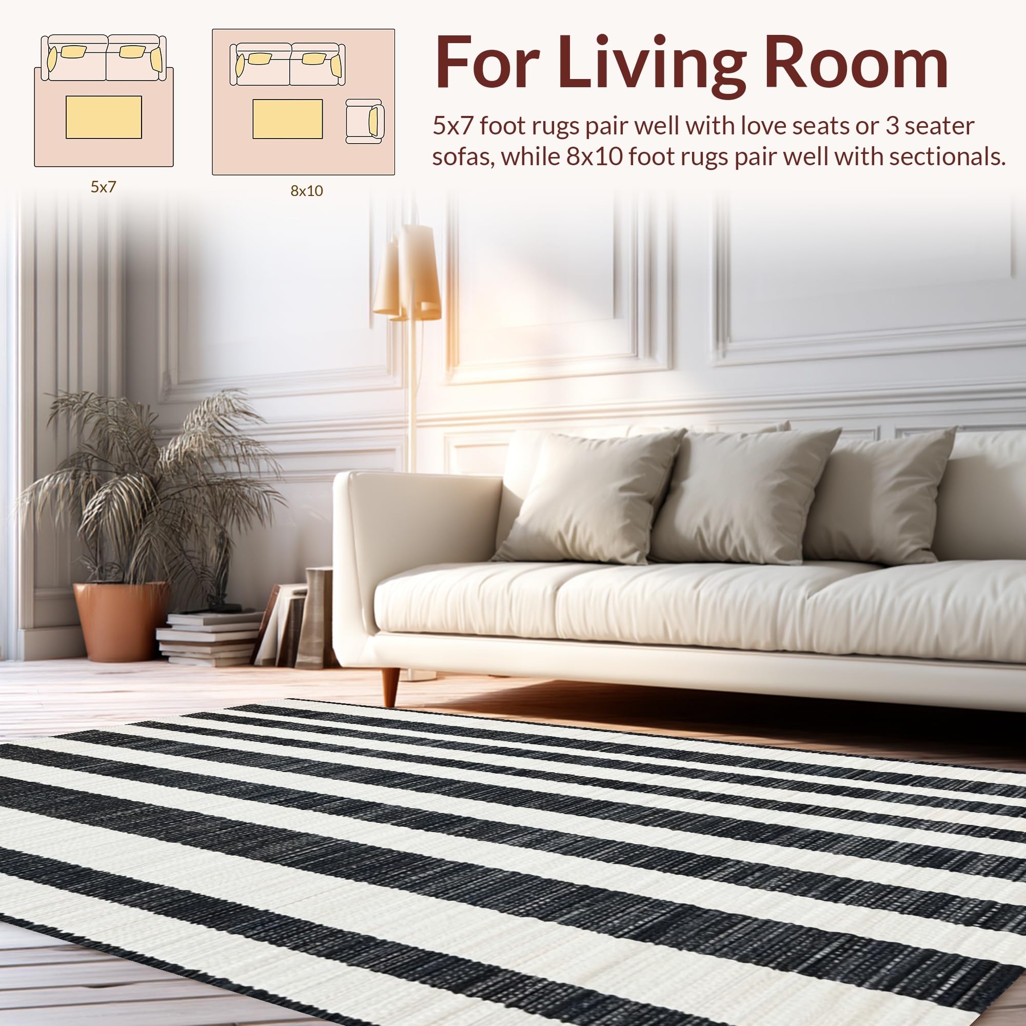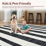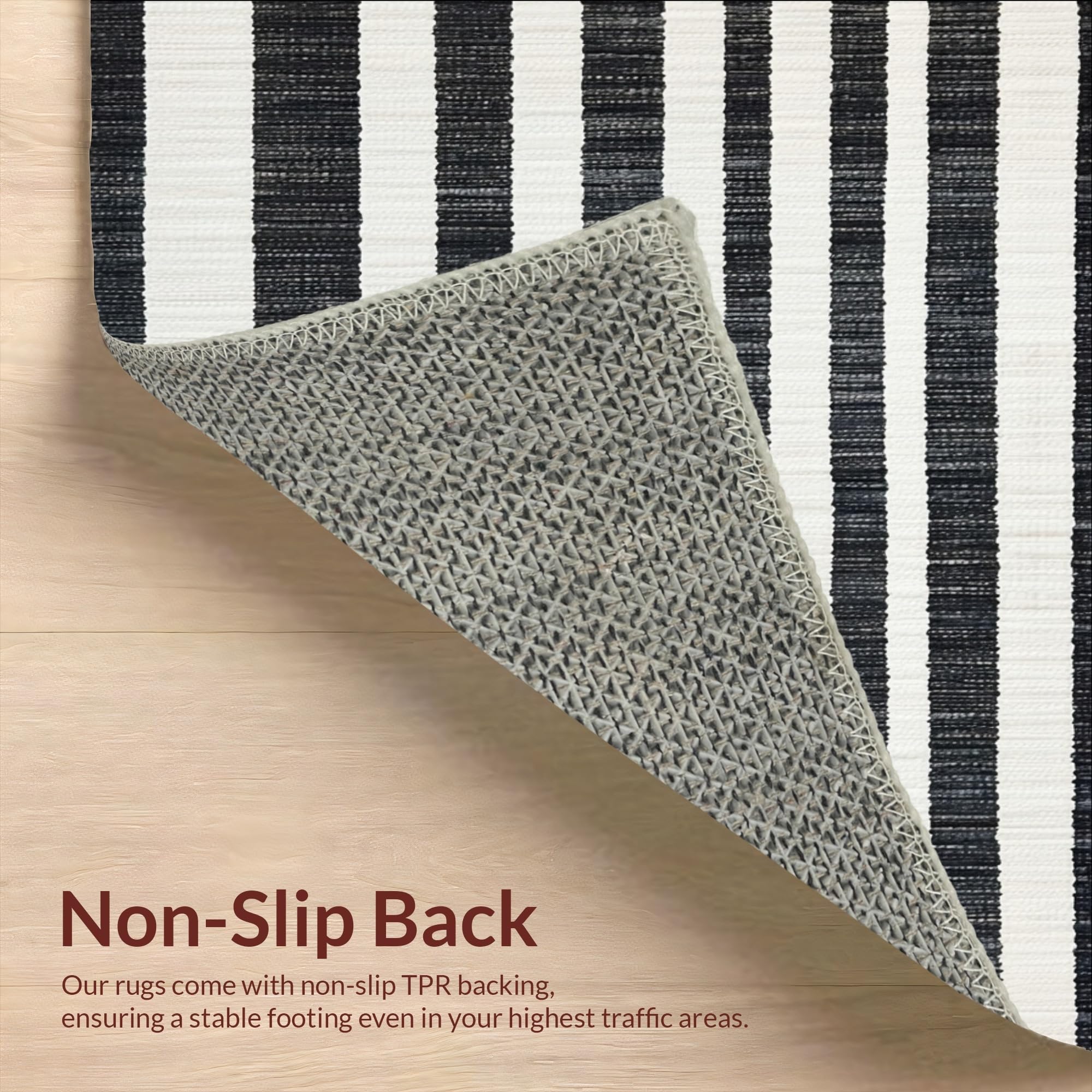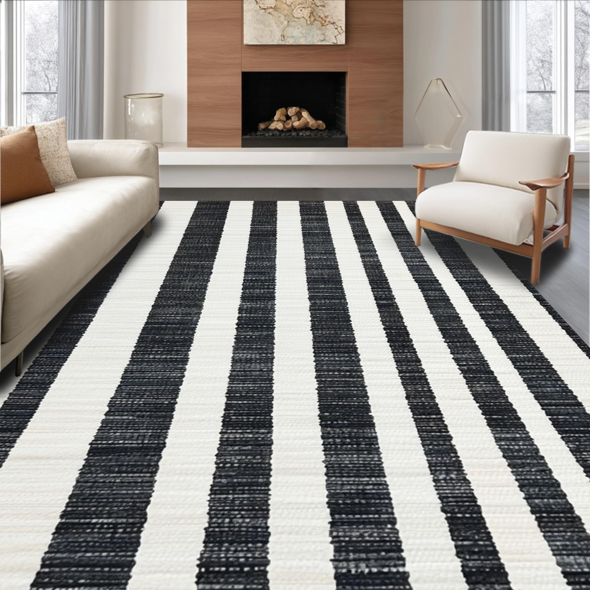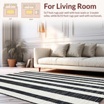 Ultra Soft Area Rug, Non Slip, Stain Resistant, Washable Area Rugs for Living Room, Bedroom, Minimalist Striped Area Rug Reversible Door Mat Style(Black) Overview: