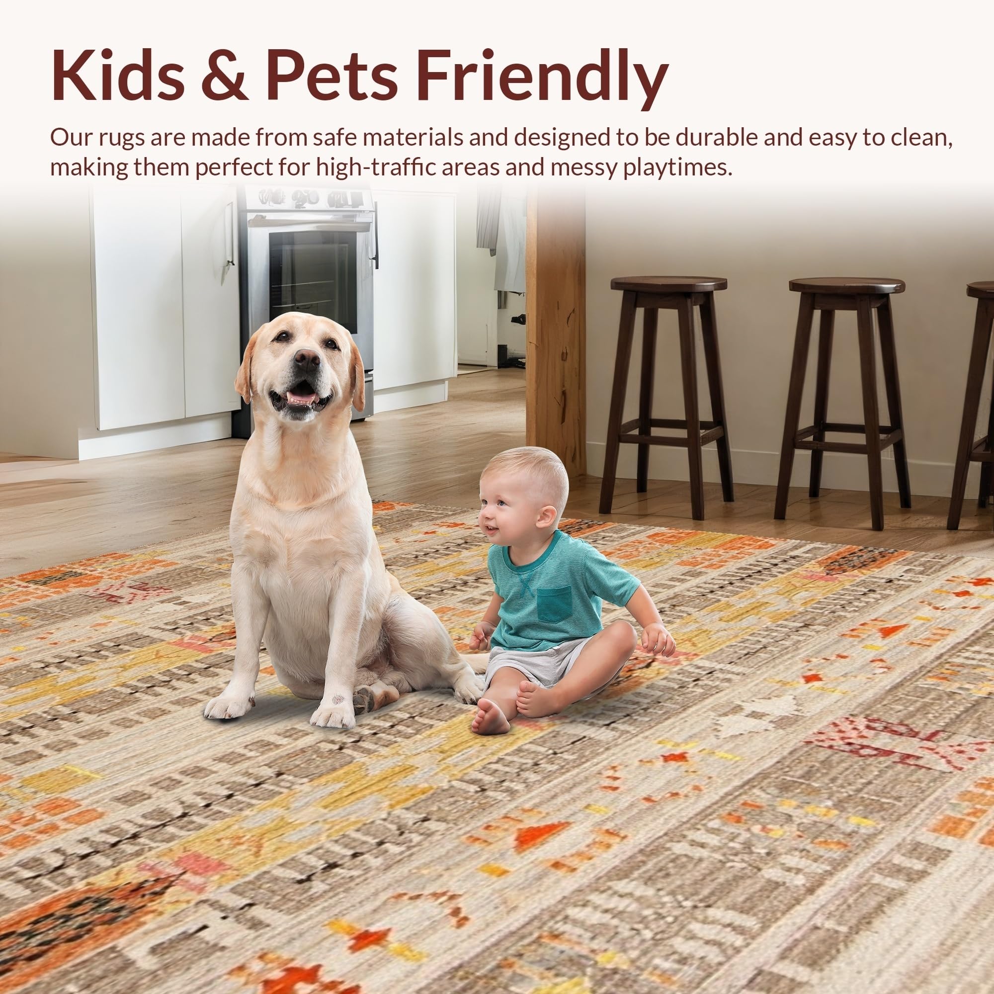 Ultra Soft Area Rug, Non Slip, Stain Resistant, Washable Area Rugs for Living Room, Bedroom, Minimalist Striped Design with Orange Accents(Gray) Overview: