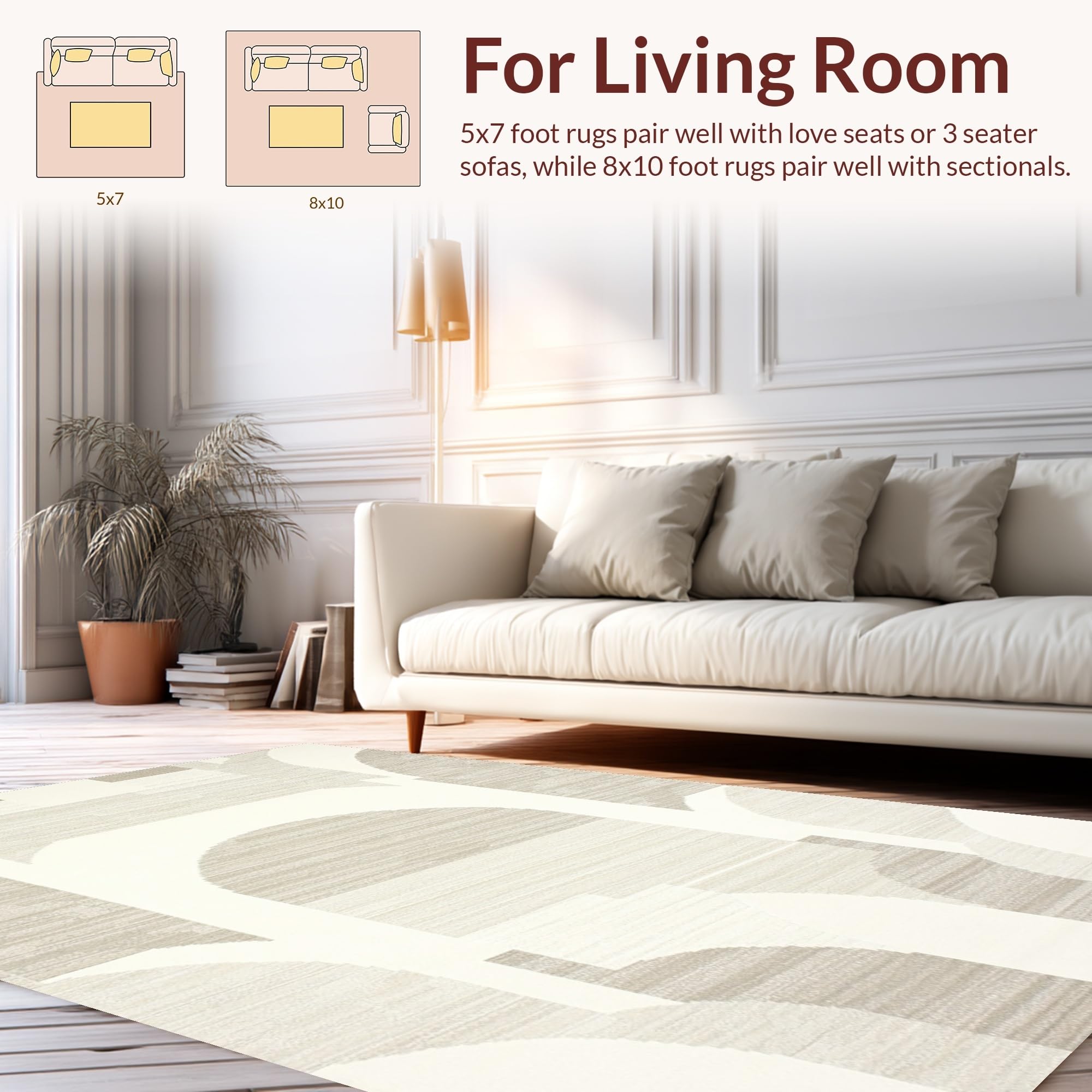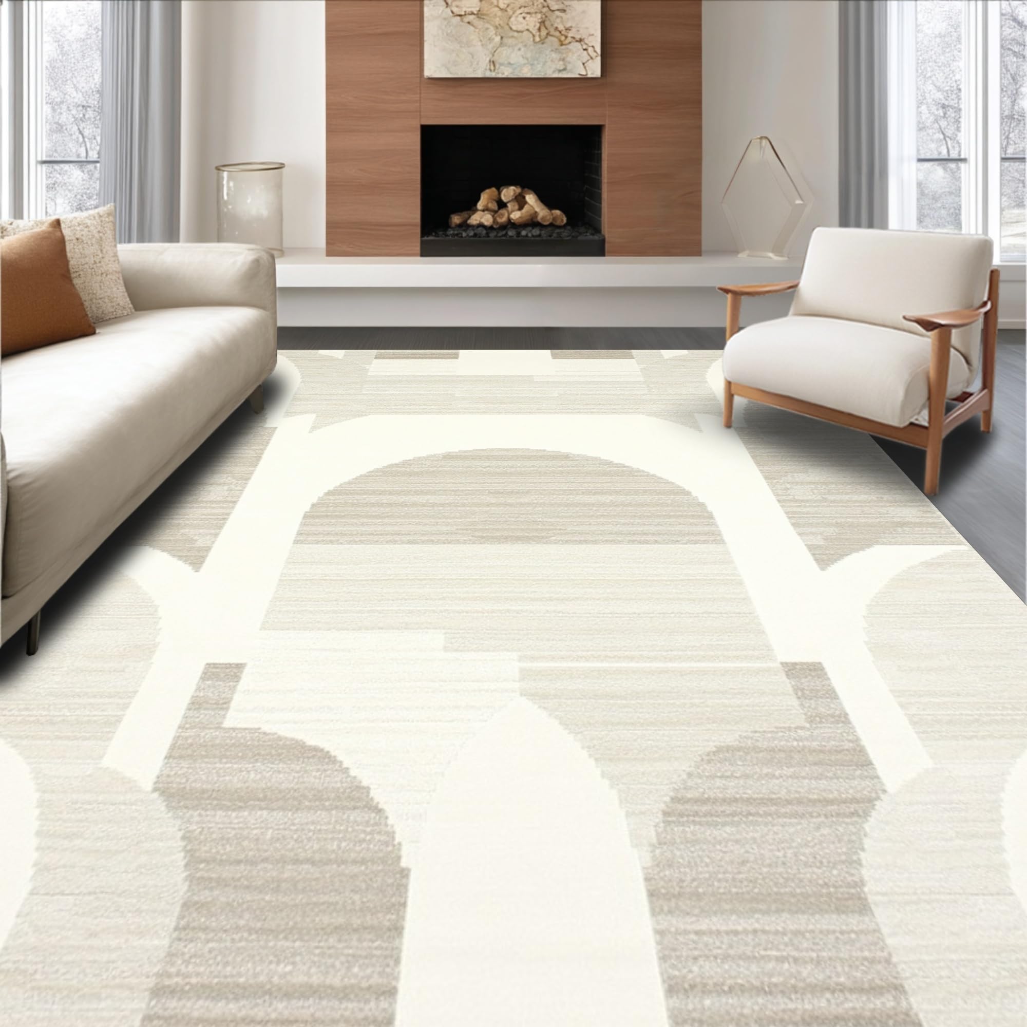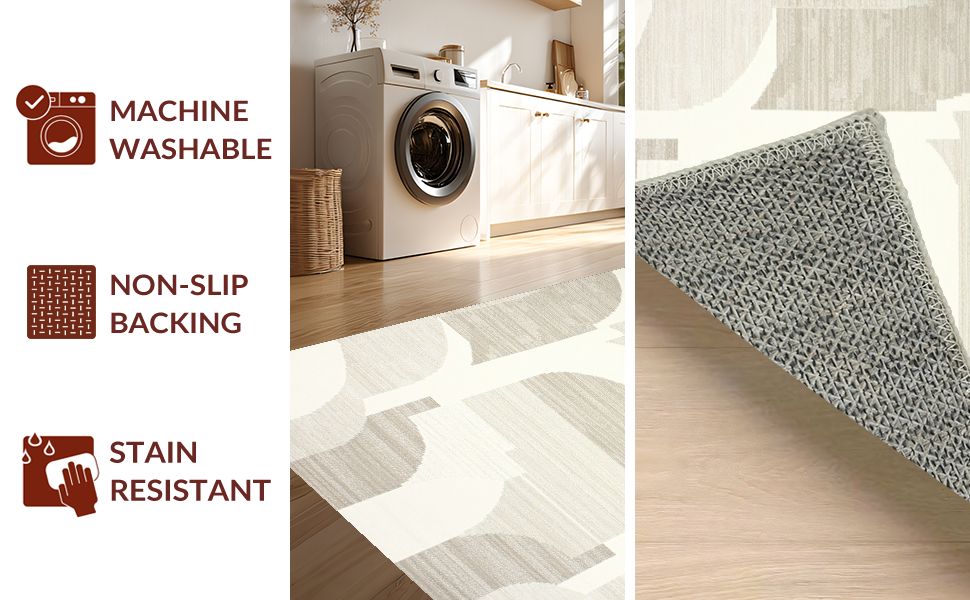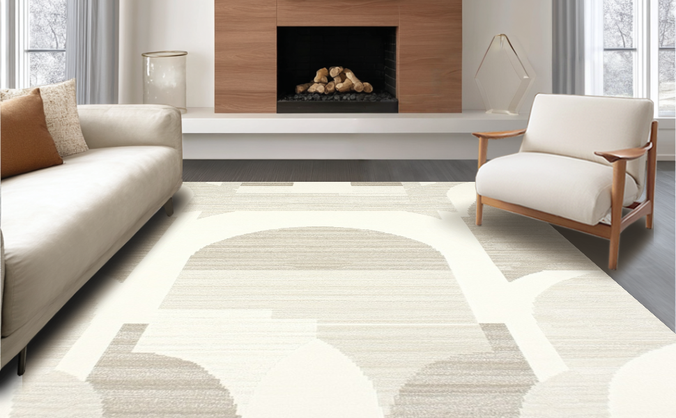 Ultra Soft Area Rug, Non Slip, Stain Resistant, Washable Area Rugs for Living Room, Bedroom, Minimalist Striped Pattern Play(Beige) Overview: