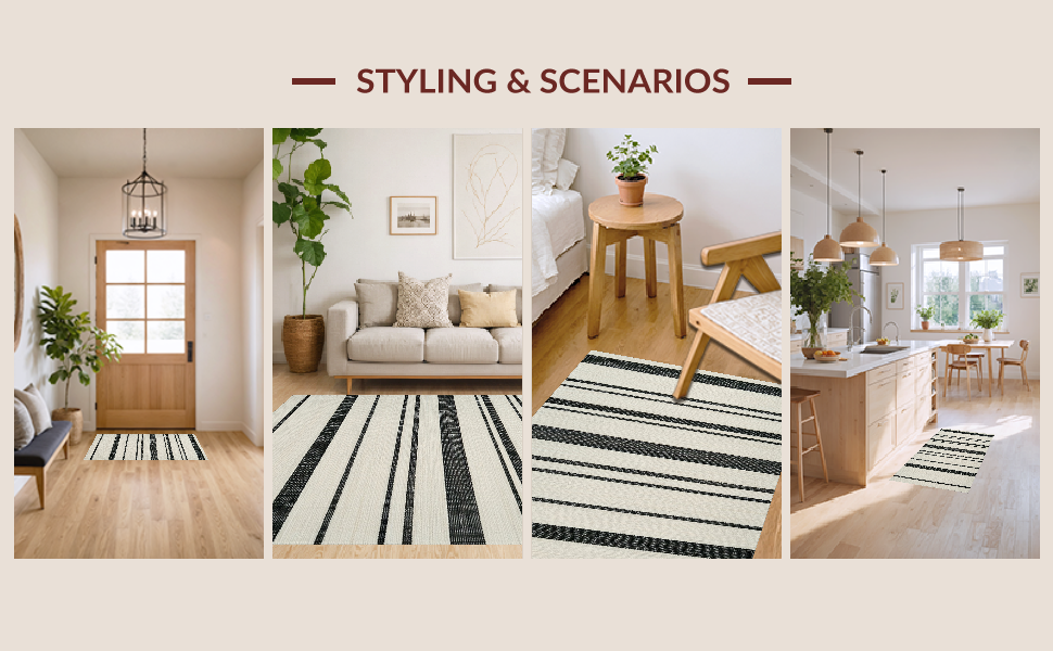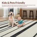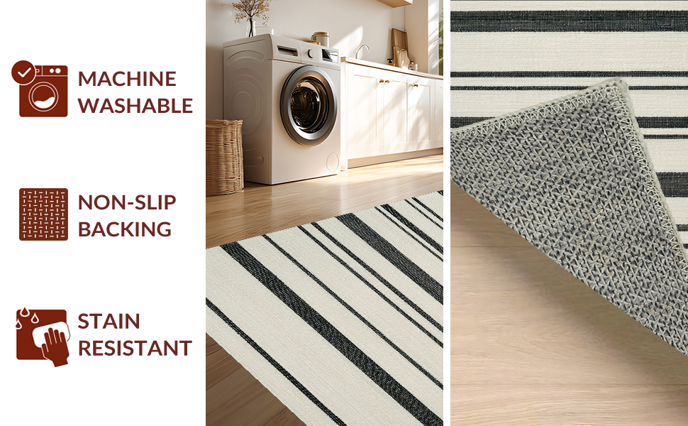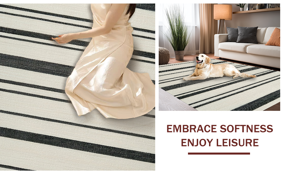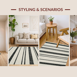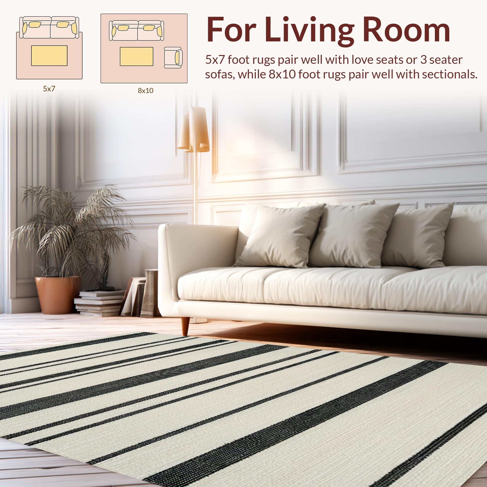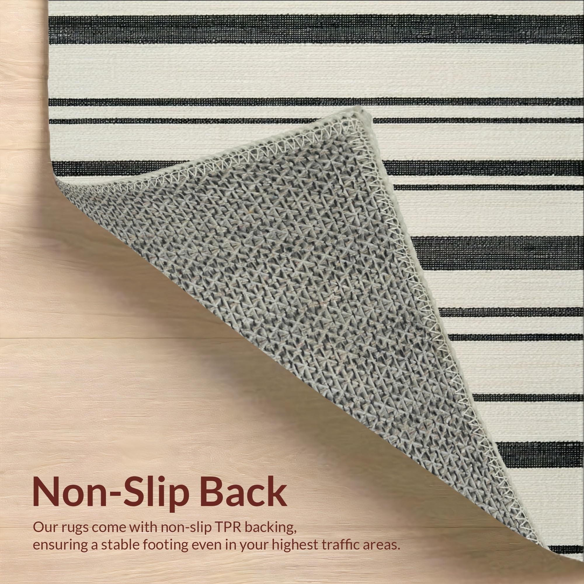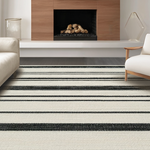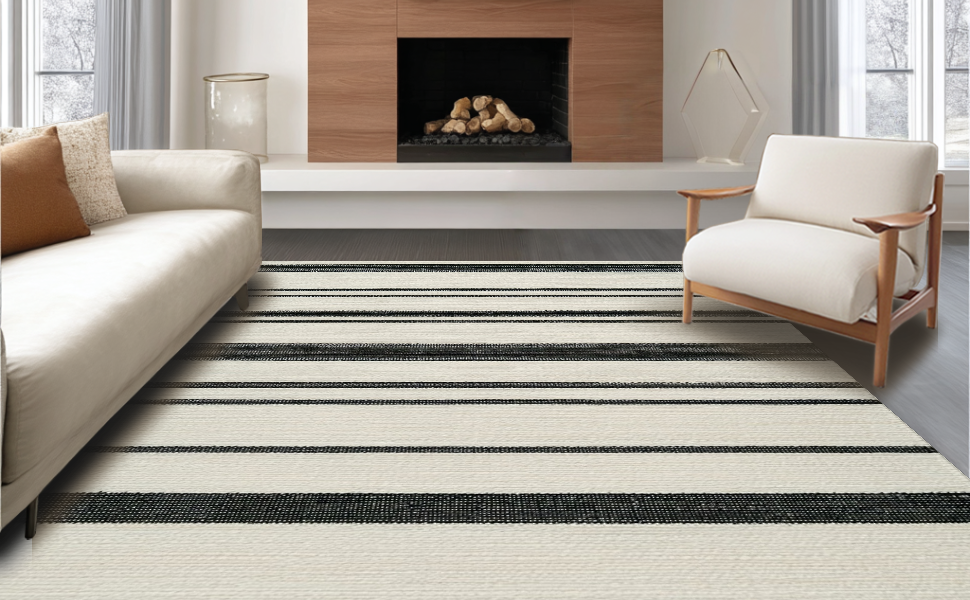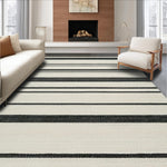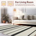 Ultra Soft Area Rug, Non Slip, Stain Resistant, Washable Area Rugs for Living Room, Bedroom, Minimalist Striped Weave with Crisp Black and White Horizontal Lines(Beige) Overview: