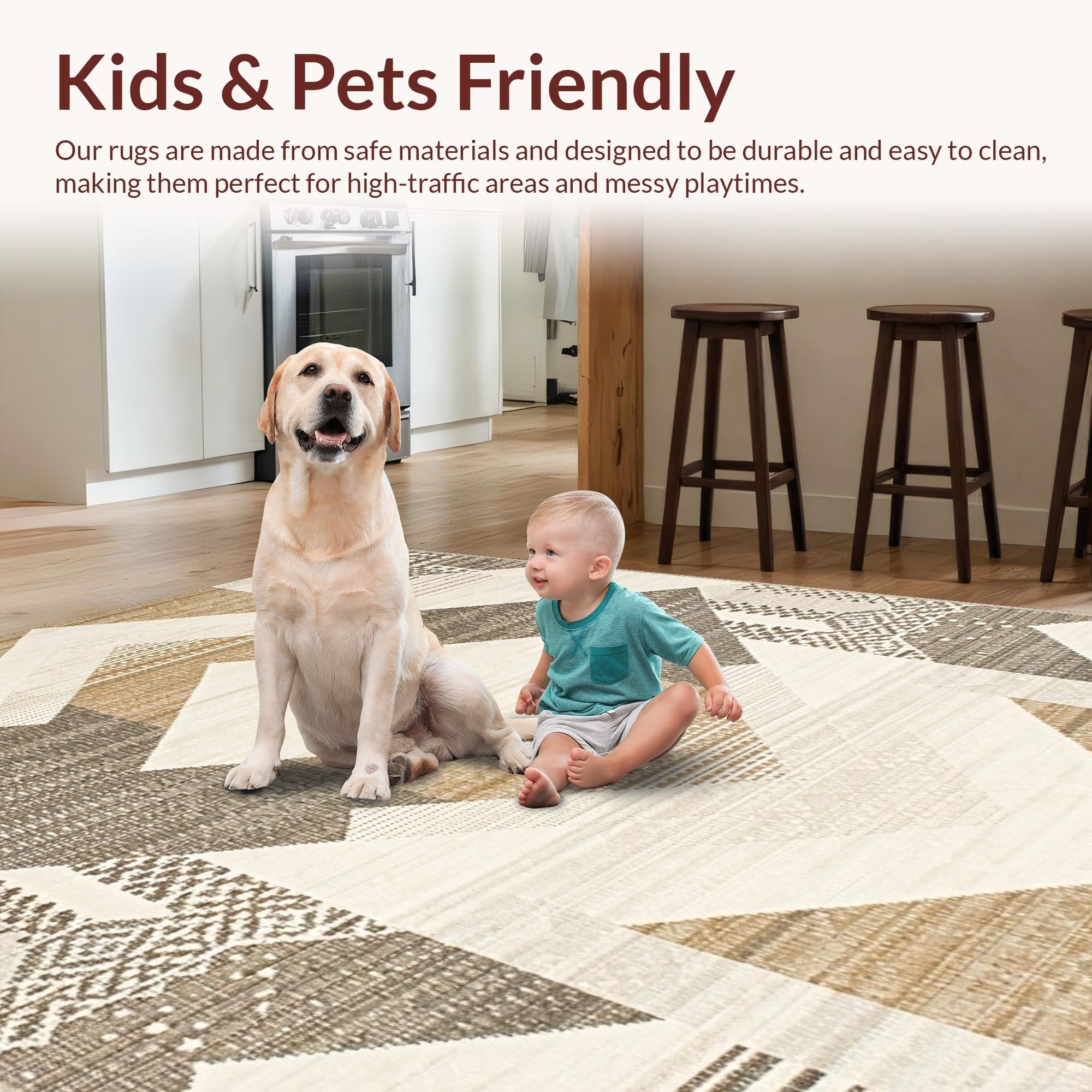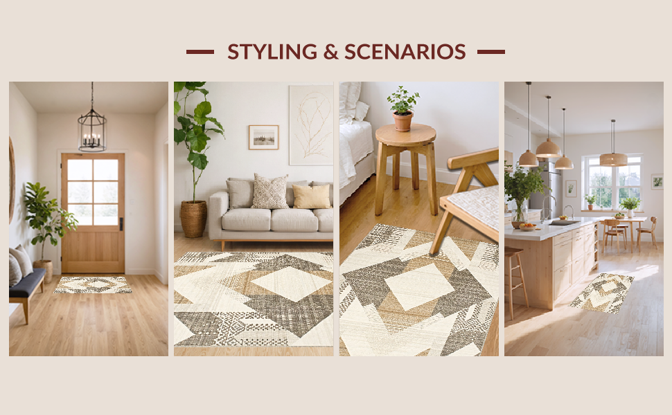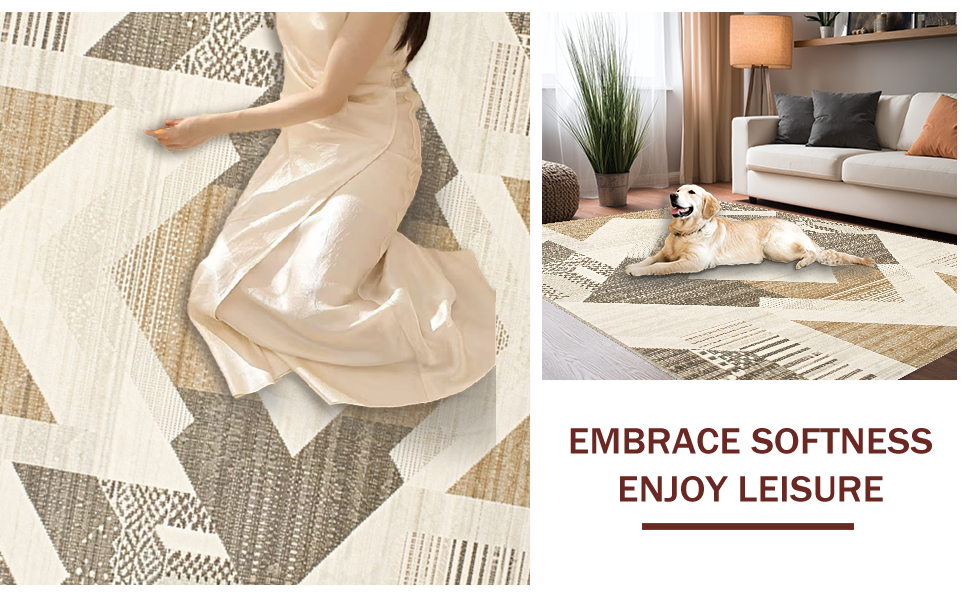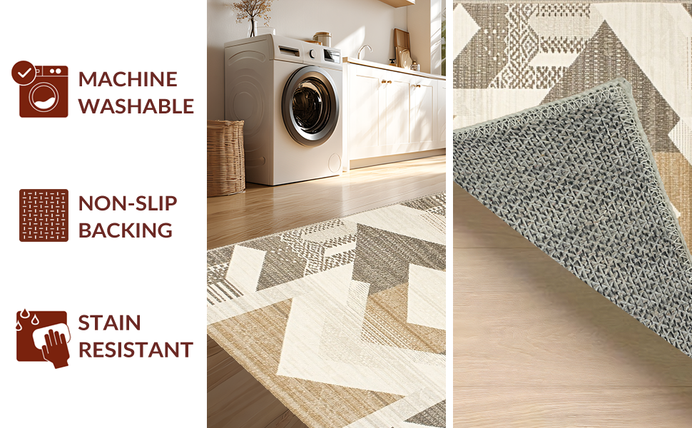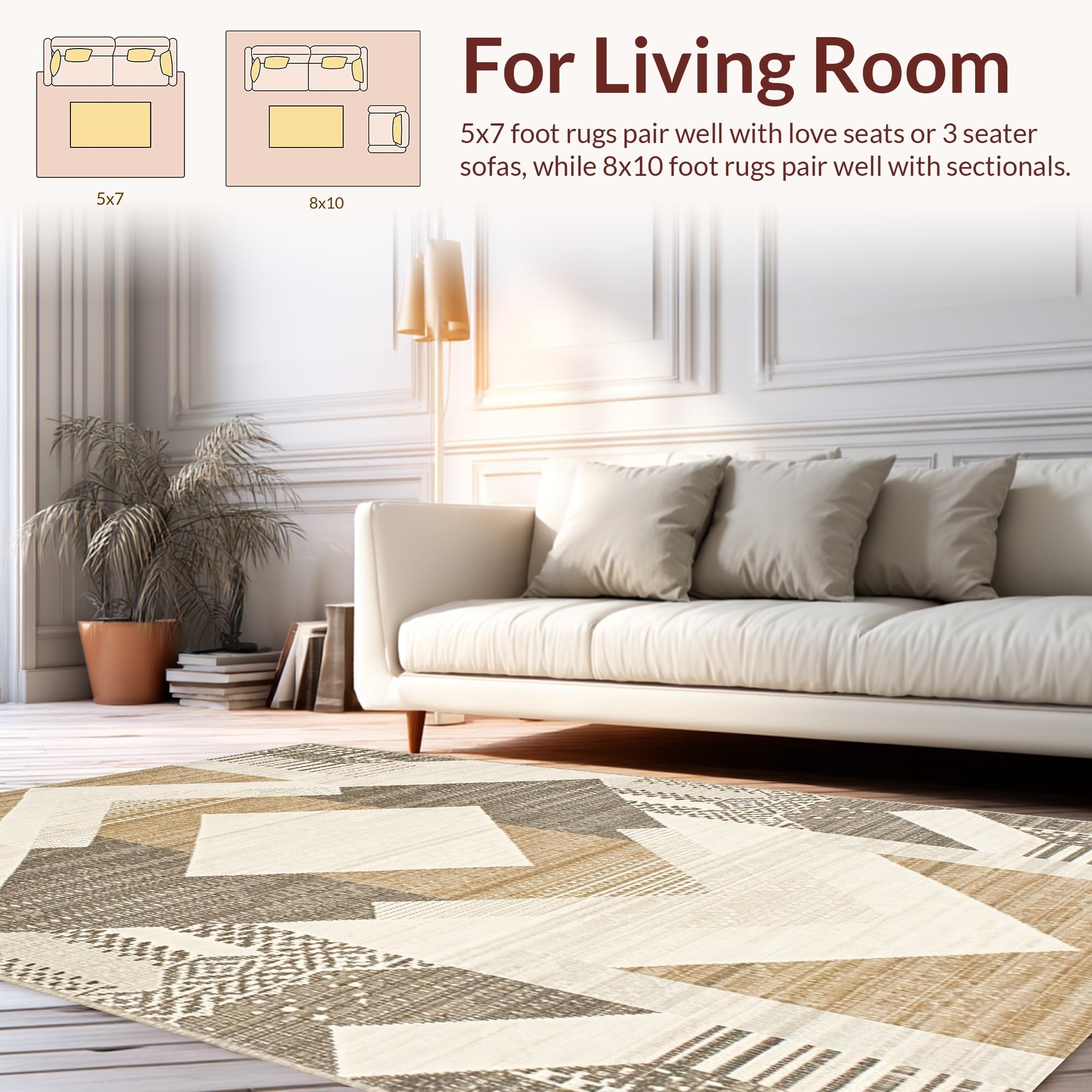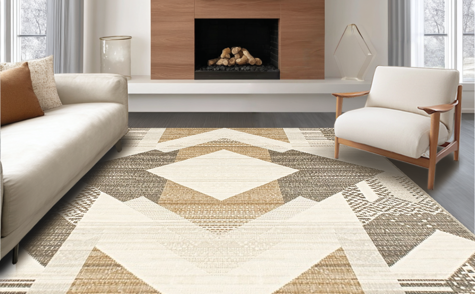 Ultra Soft Area Rug, Non Slip, Stain Resistant, Washable Area Rugs for Living Room, Bedroom, Minimalist Stylish Diamond Arrangement(Beige) Overview: