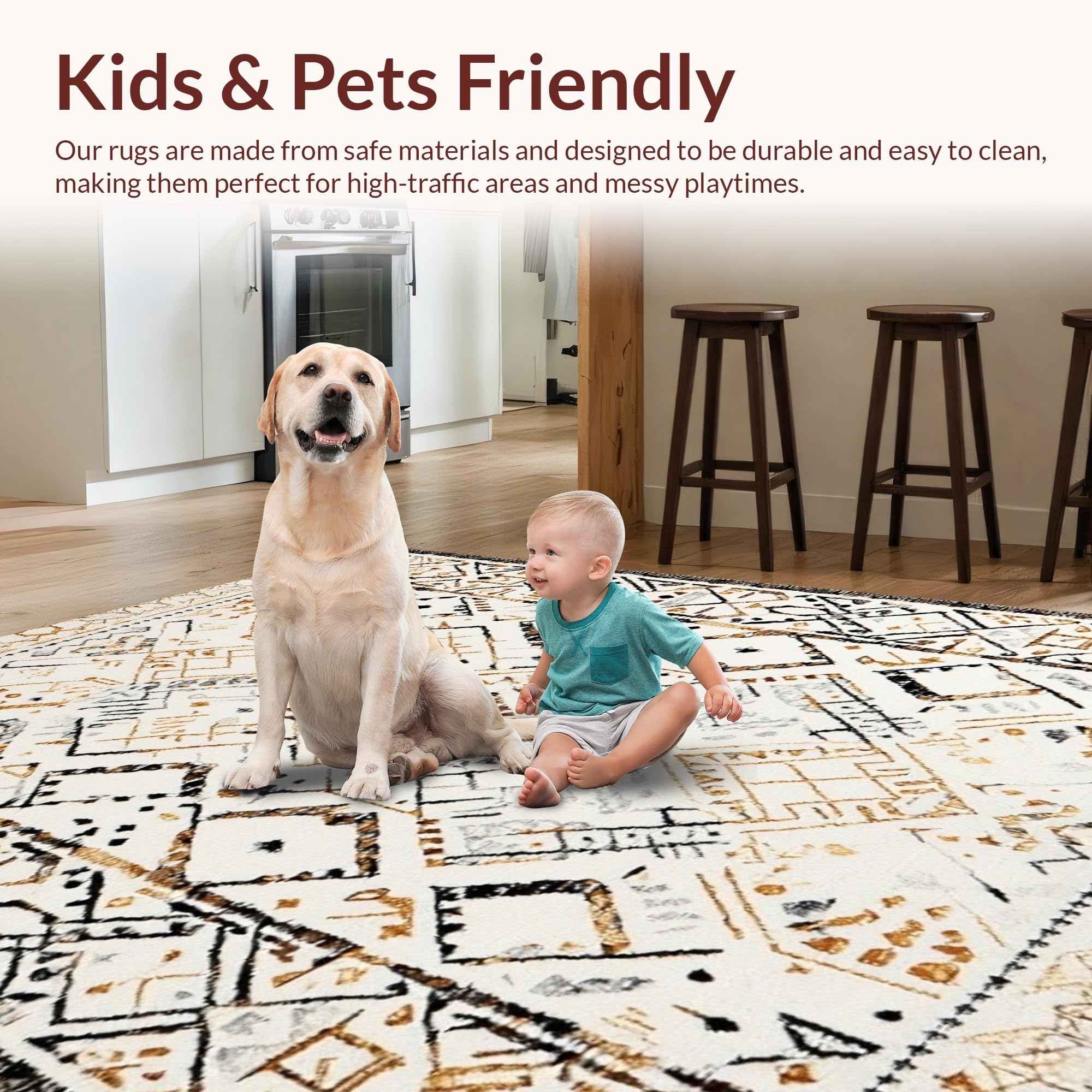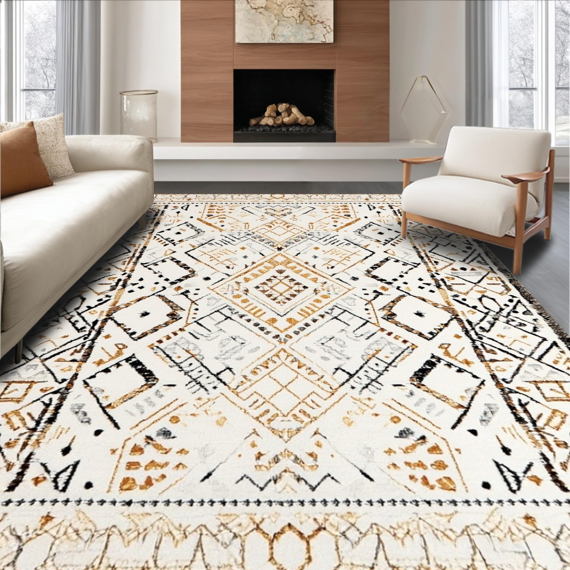 Ultra Soft Area Rug, Non Slip, Stain Resistant, Washable Area Rugs for Living Room, Bedroom, Minimalist Subtle Geometric Arrangement(Beige) Overview: