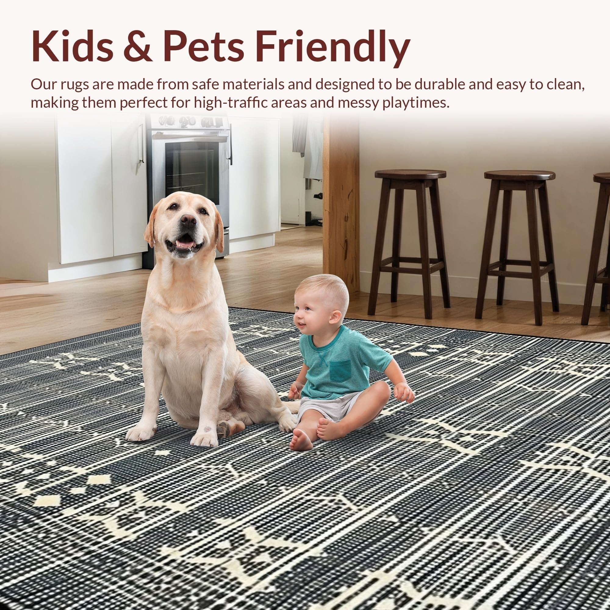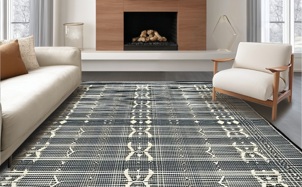 Ultra Soft Area Rug, Non Slip, Stain Resistant, Washable Area Rugs for Living Room, Bedroom, Minimalist Symmetrical Artistry Flair(Black) Overview: