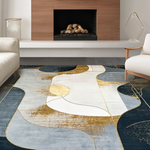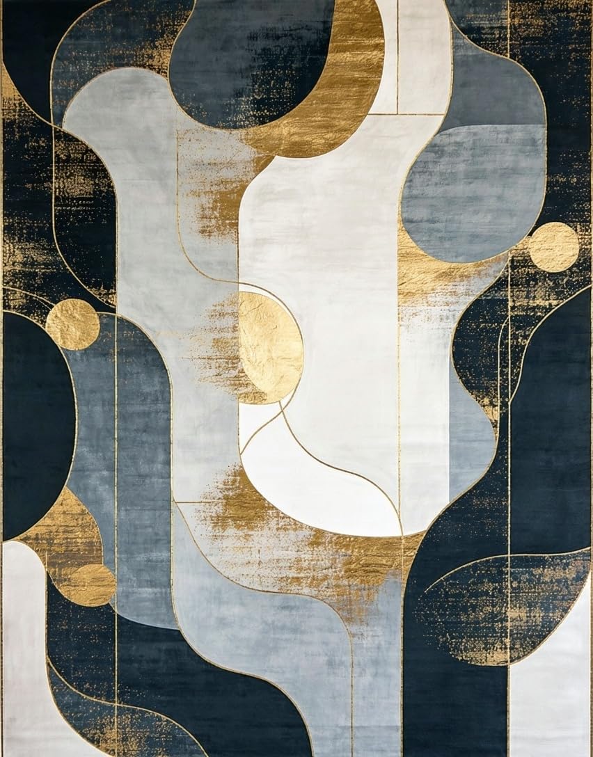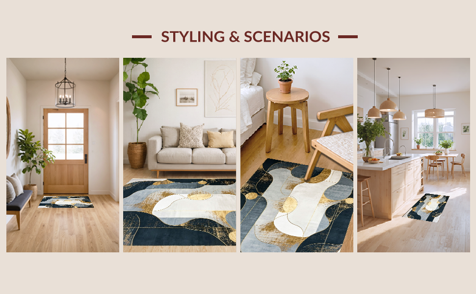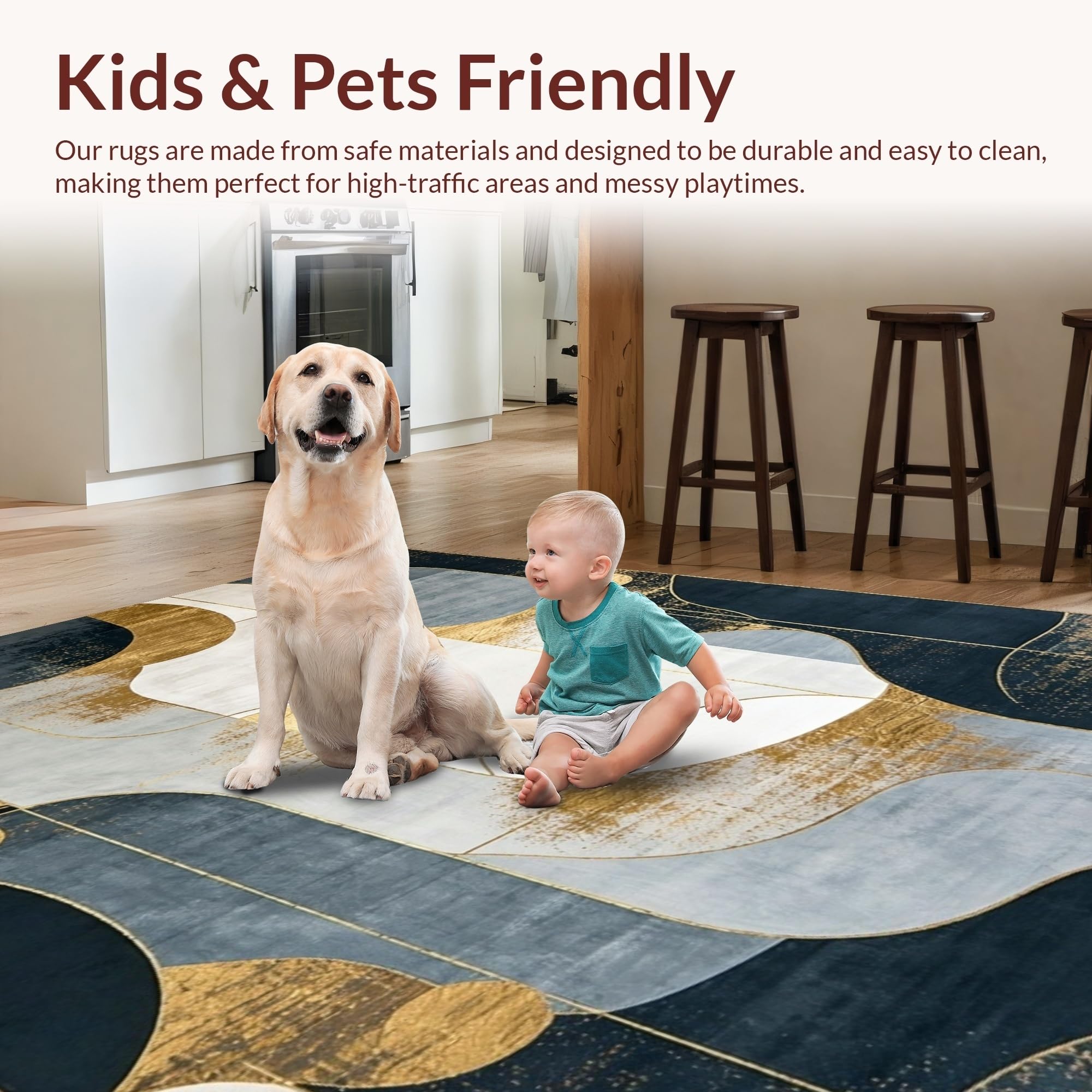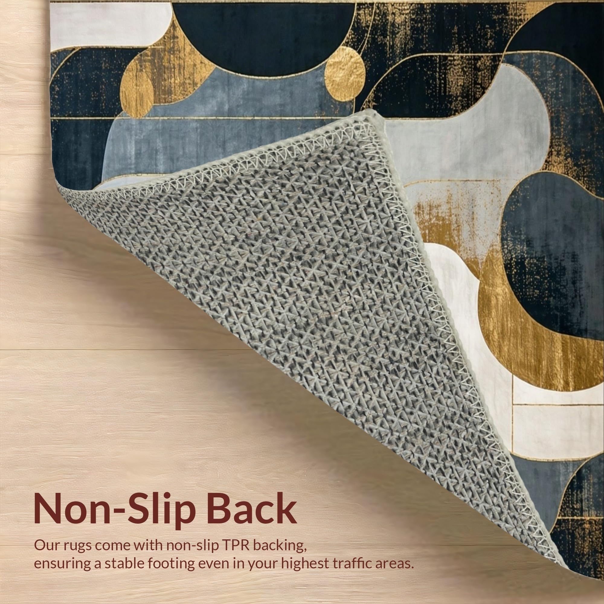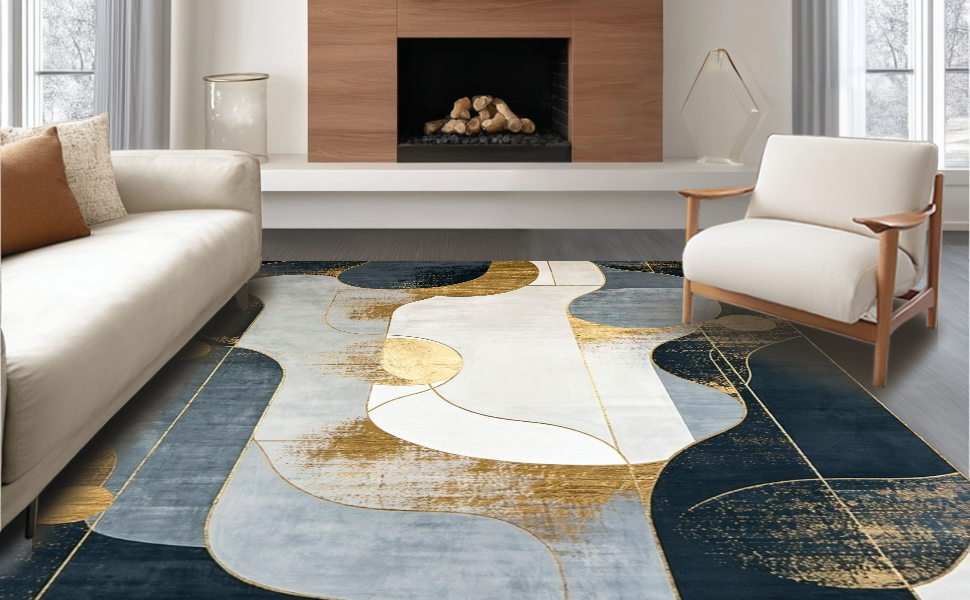 Ultra Soft Area Rug, Non Slip, Stain Resistant, Washable Area Rugs for Living Room, Bedroom, Minimalist Symmetrical Gold and Gray Design(Gray) Overview: