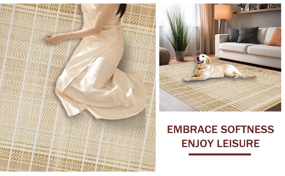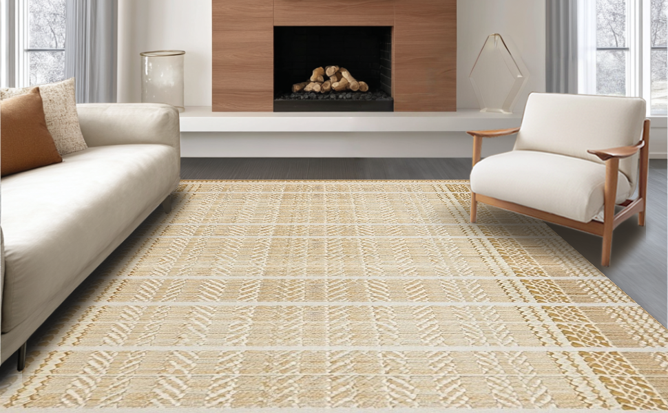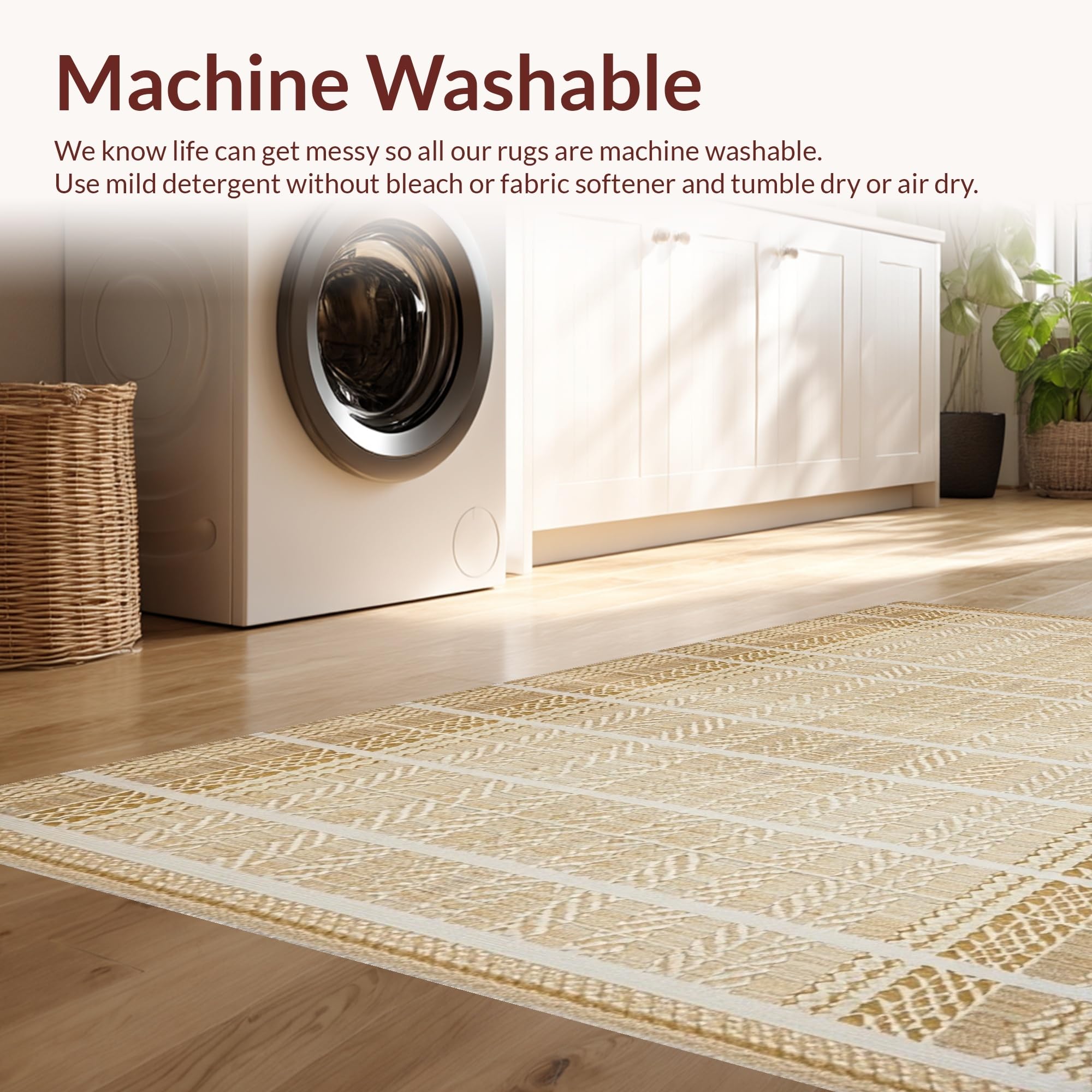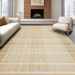 Ultra Soft Area Rug, Non Slip, Stain Resistant, Washable Area Rugs for Living Room, Bedroom, Minimalist Tan Geometric Motif(Beige) Overview: