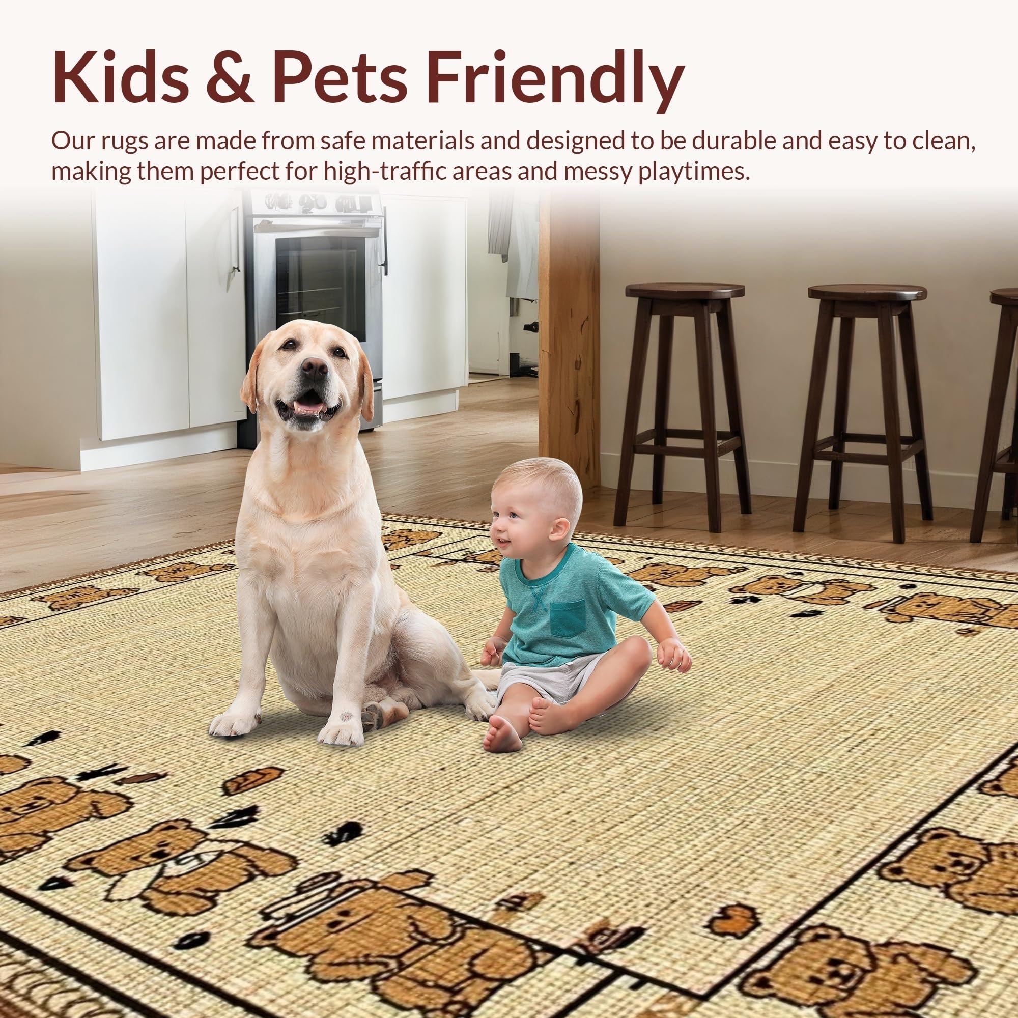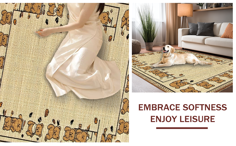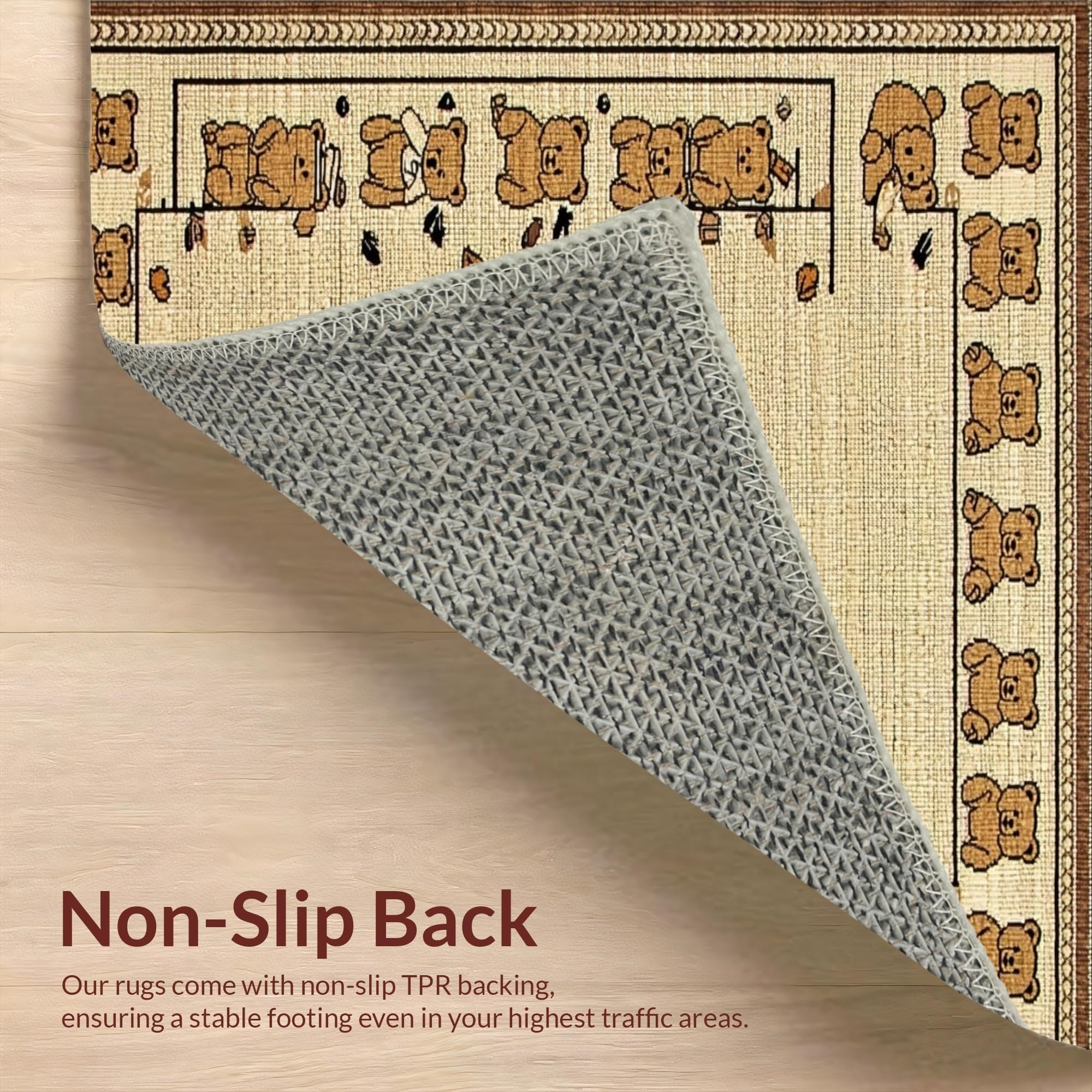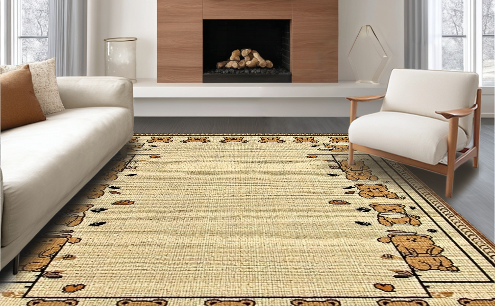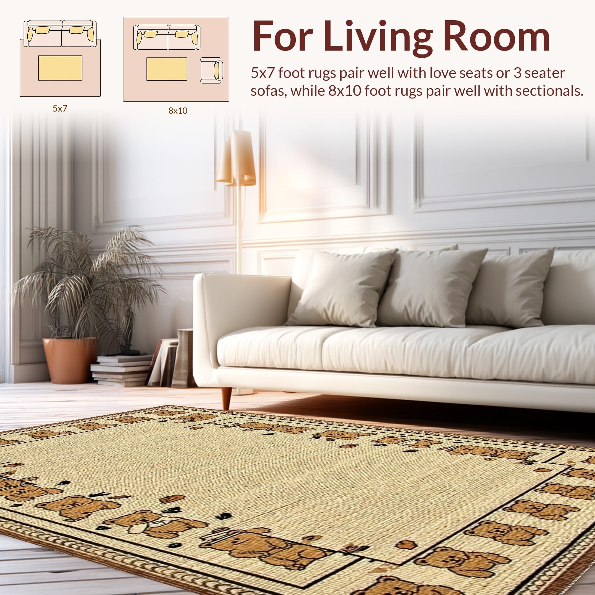 Ultra Soft Area Rug, Non Slip, Stain Resistant, Washable Area Rugs for Living Room, Bedroom, Minimalist Teddy Bear Theme(Beige) Overview: