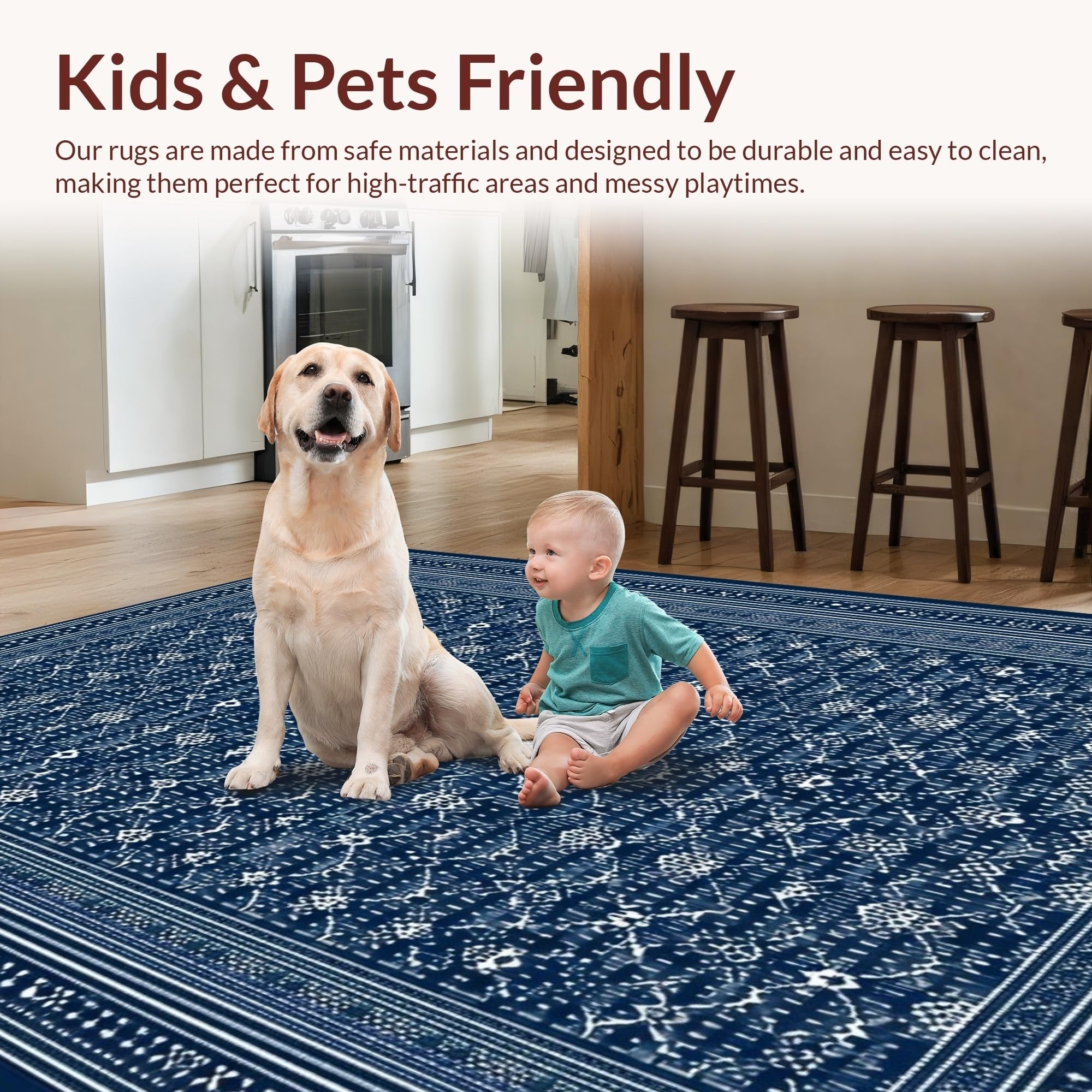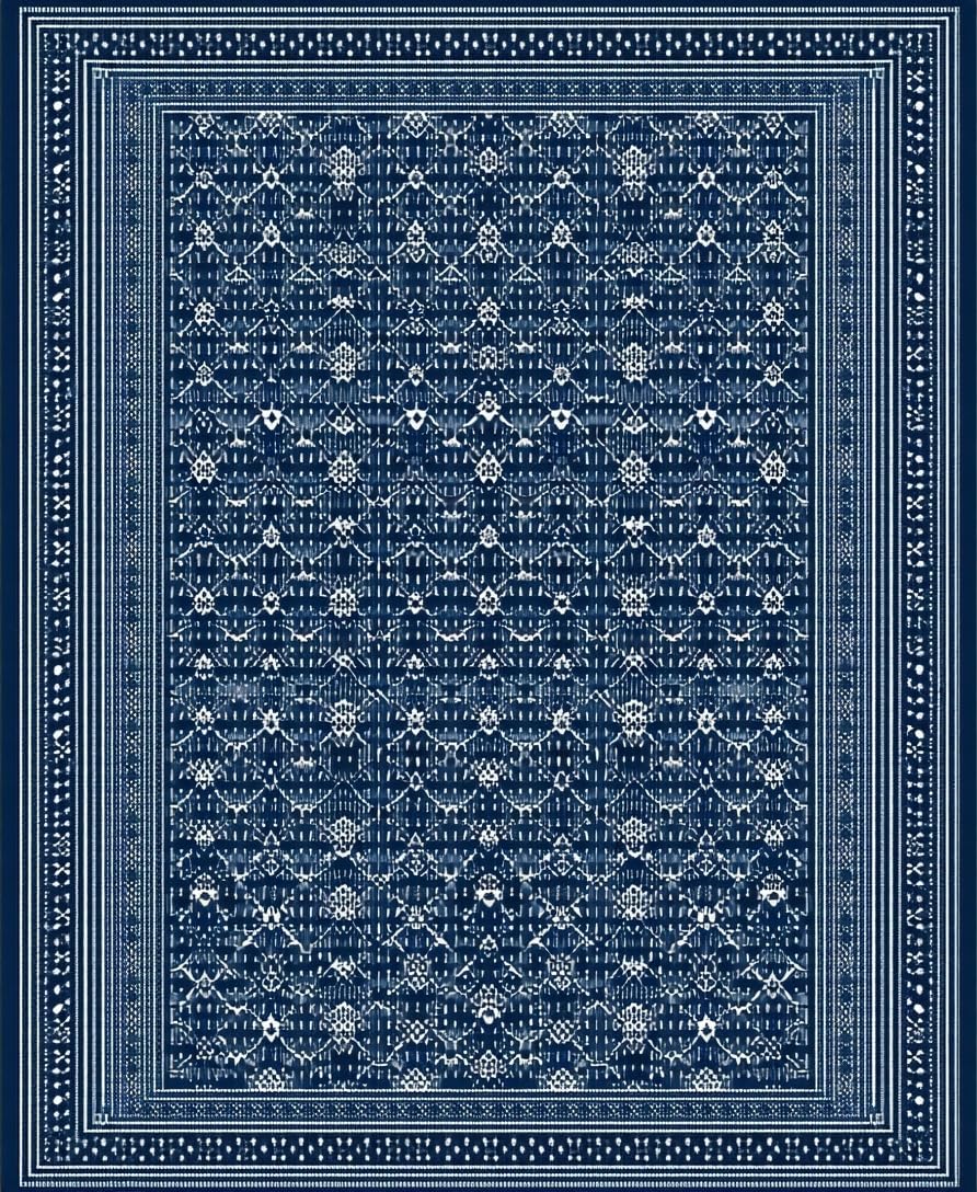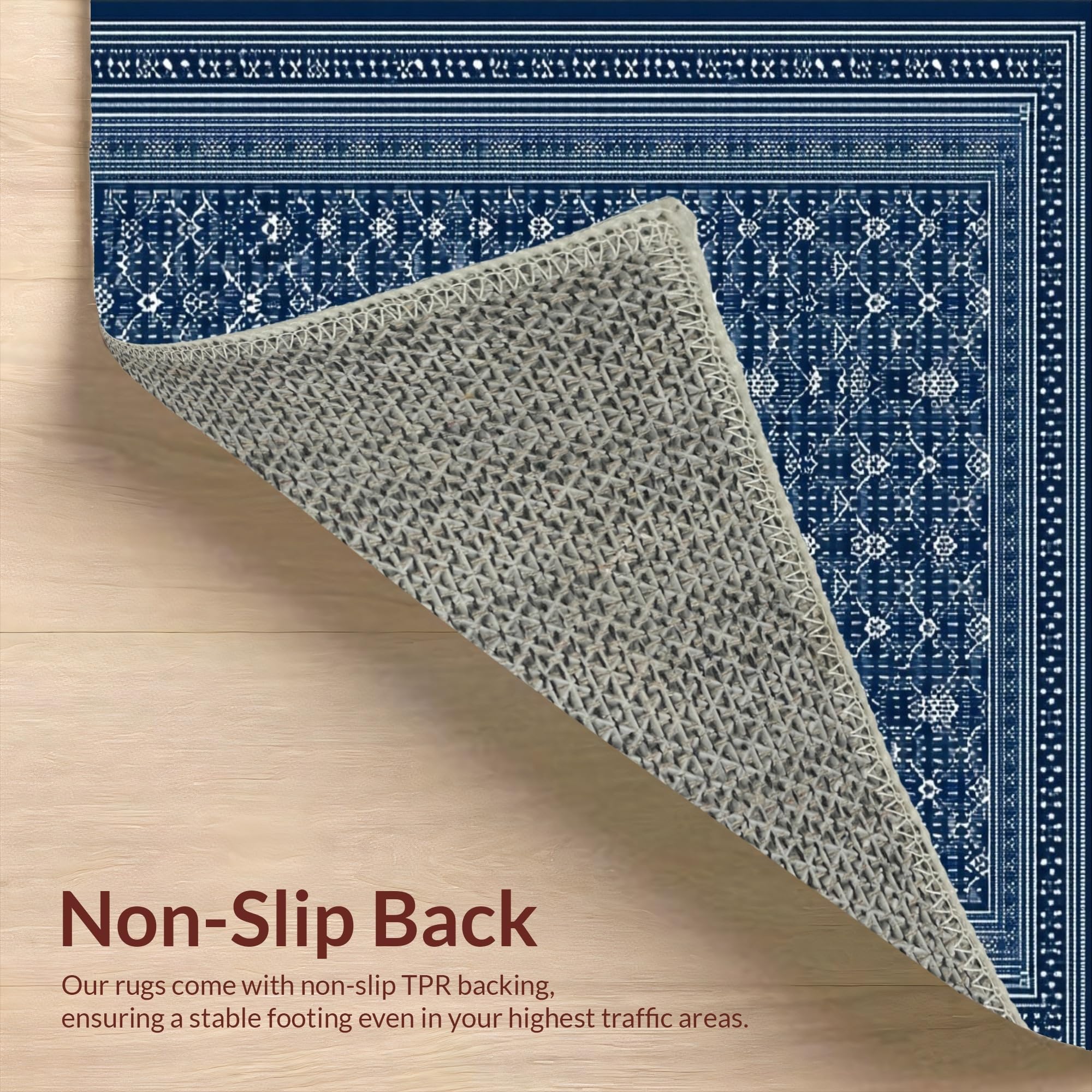 Ultra Soft Area Rug, Non Slip, Stain Resistant, Washable Area Rugs for Living Room, Bedroom, Minimalist Tiled Design with Contrast(Blue) Overview: