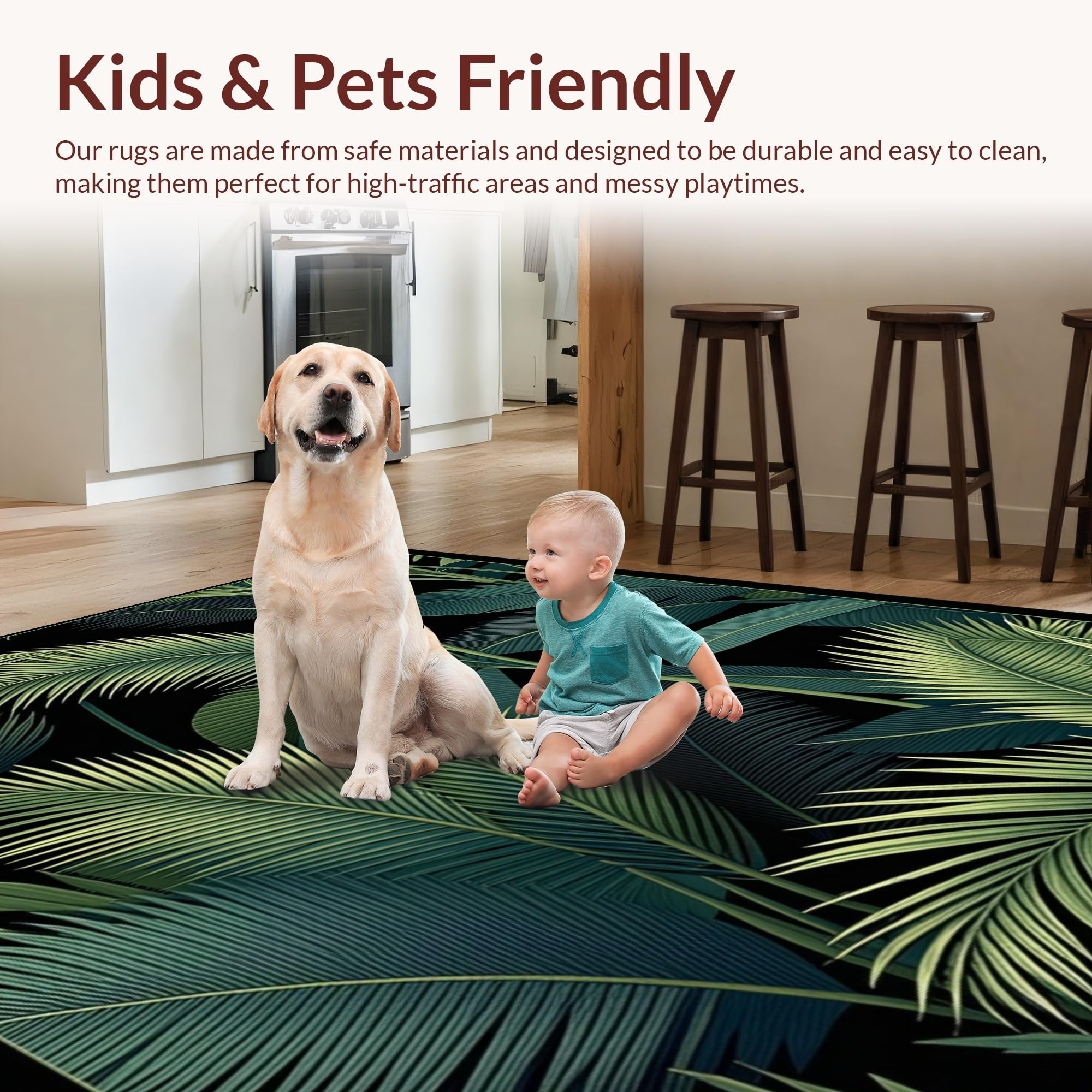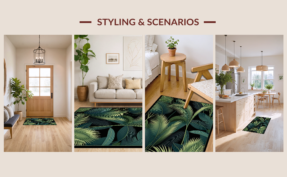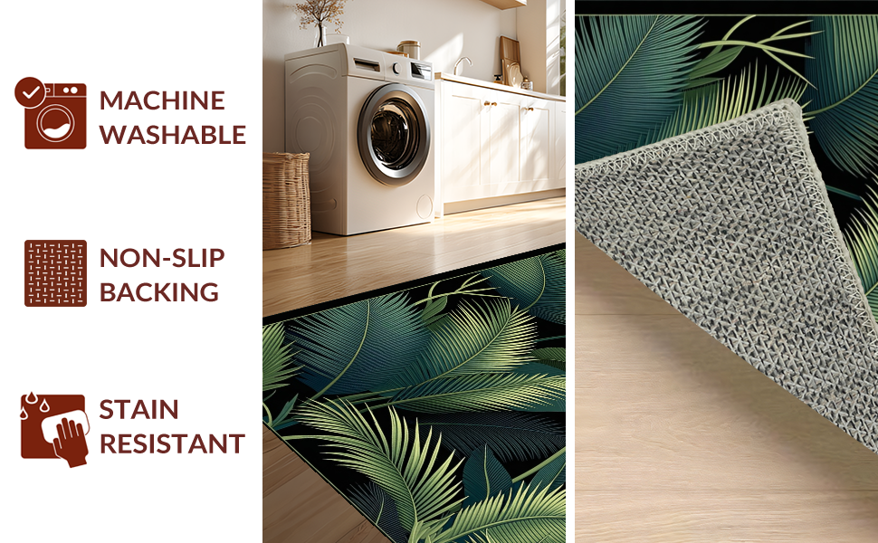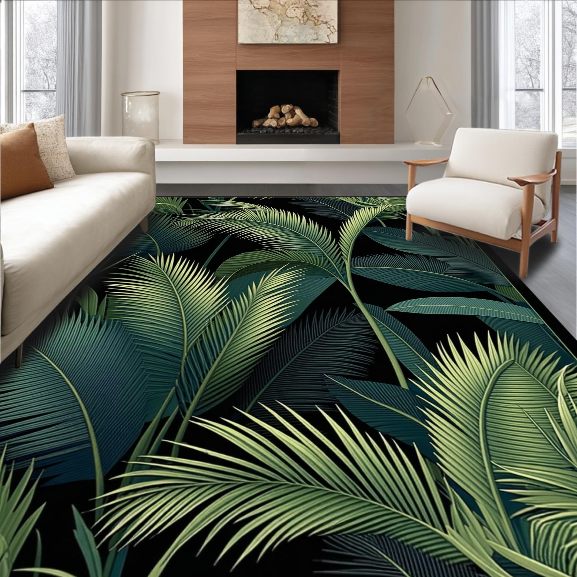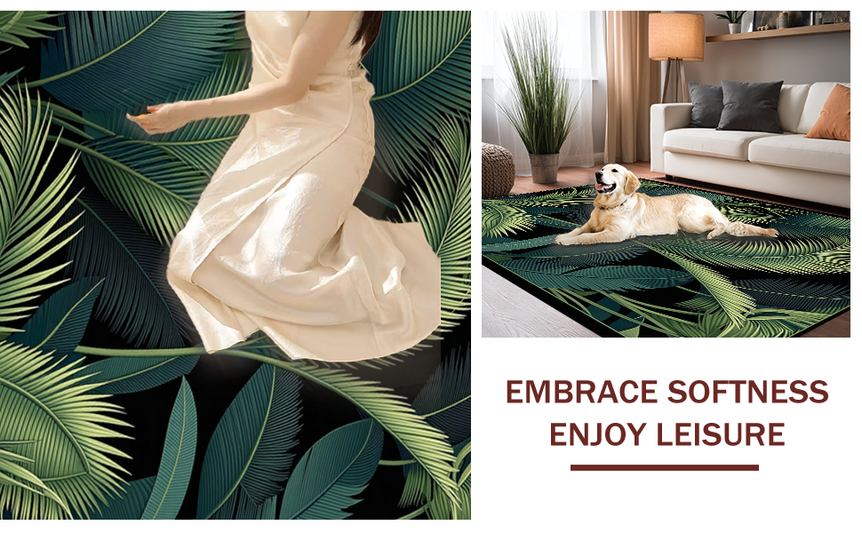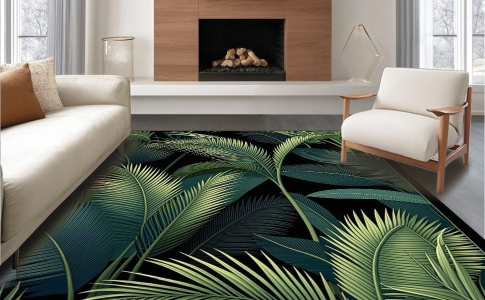 Ultra Soft Area Rug, Non Slip, Stain Resistant, Washable Area Rugs for Living Room, Bedroom, Minimalist Tropical Leaf Arrangement(Green) Overview: