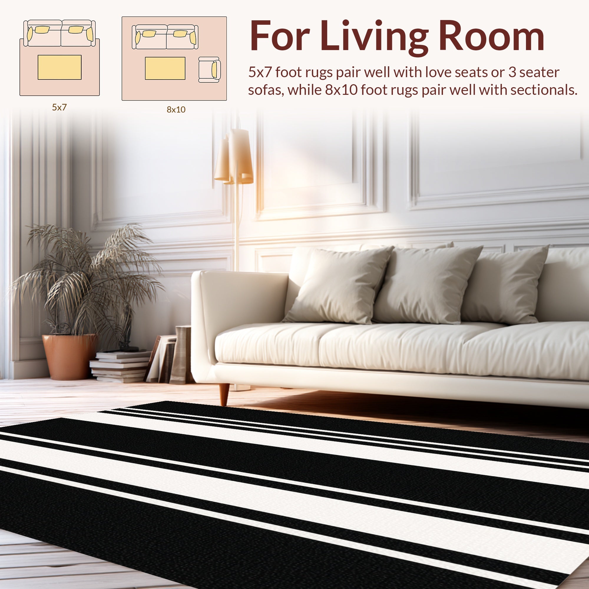 Ultra Soft Area Rug, Non Slip, Stain Resistant, Washable Area Rugs for Living Room, Bedroom, Minimalist Two Tone Horizontal Banded Lightweight Doorway Floor Accent(Black) Overview: