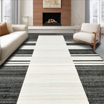 Ultra Soft Area Rug, Non Slip, Stain Resistant, Washable Area Rugs for Living Room, Bedroom, Minimalist Two-Tone Linear Rug with Striking Black and White Stripe Composition(Gray) Overview:
