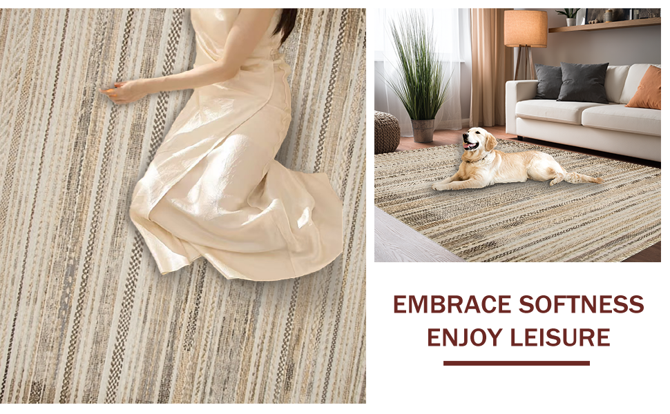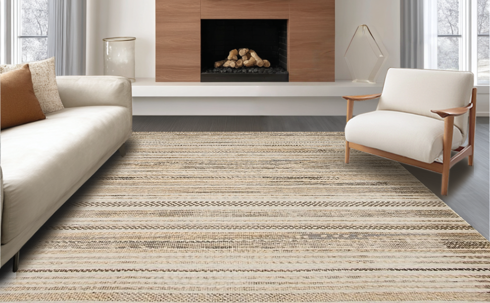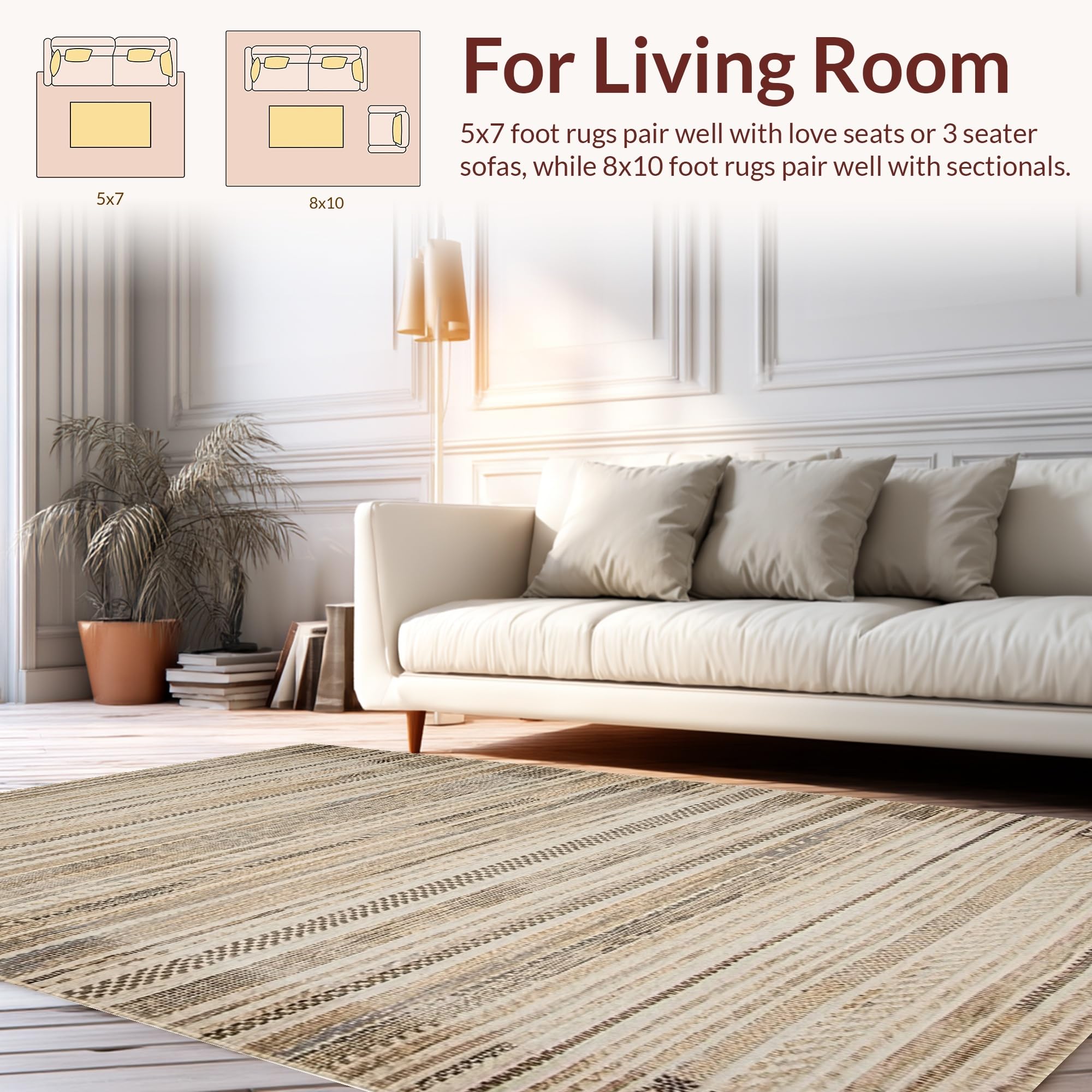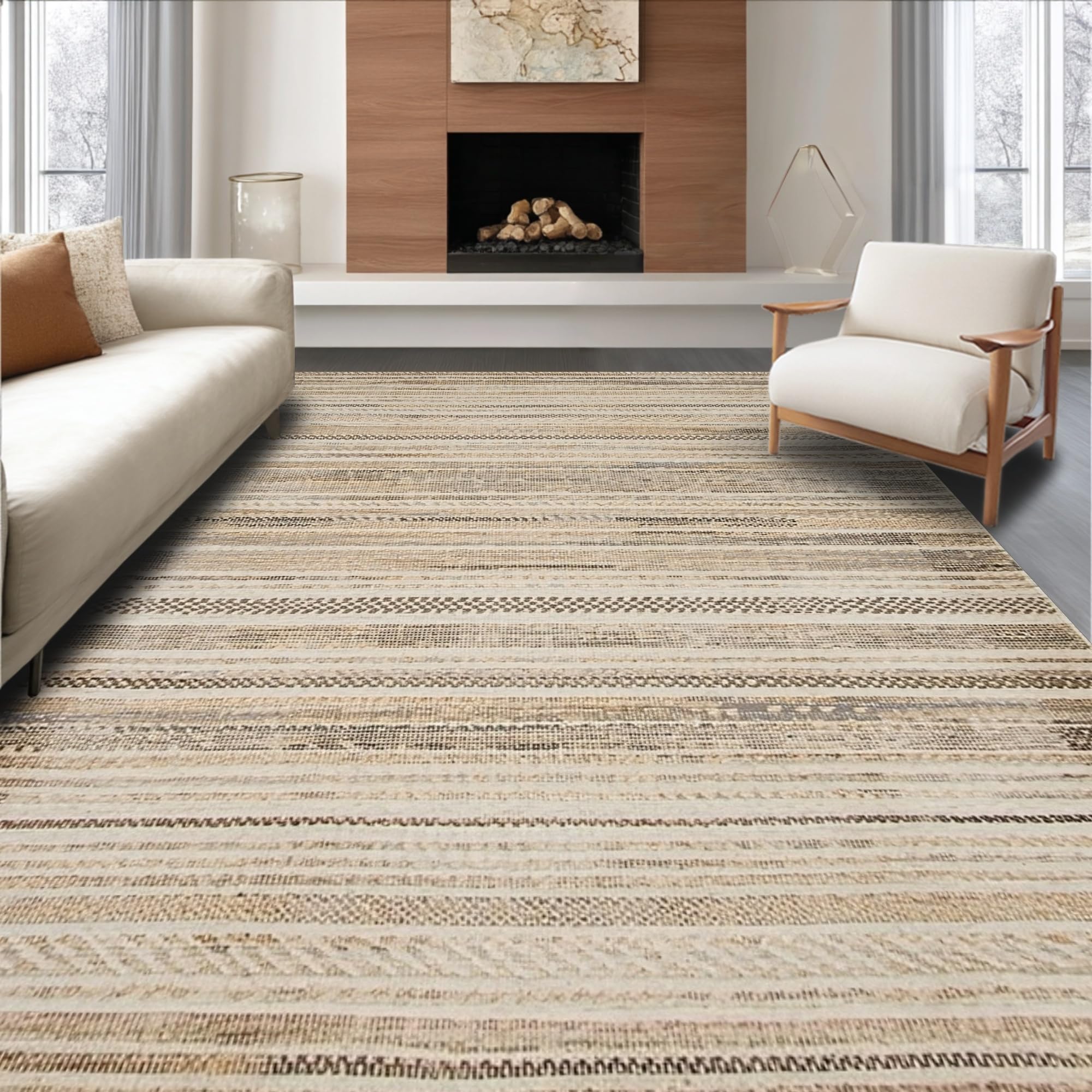 Ultra Soft Area Rug, Non Slip, Stain Resistant, Washable Area Rugs for Living Room, Bedroom, Minimalist Warm Beige Knitted Look(Beige) Overview: