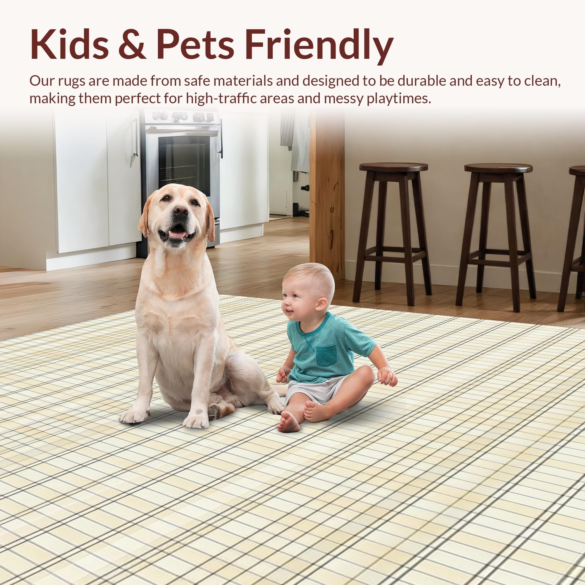 Ultra Soft Area Rug, Non Slip, Stain Resistant, Washable Area Rugs for Living Room, Bedroom, Minimalist Warm Lattice Design(Beige) Overview: