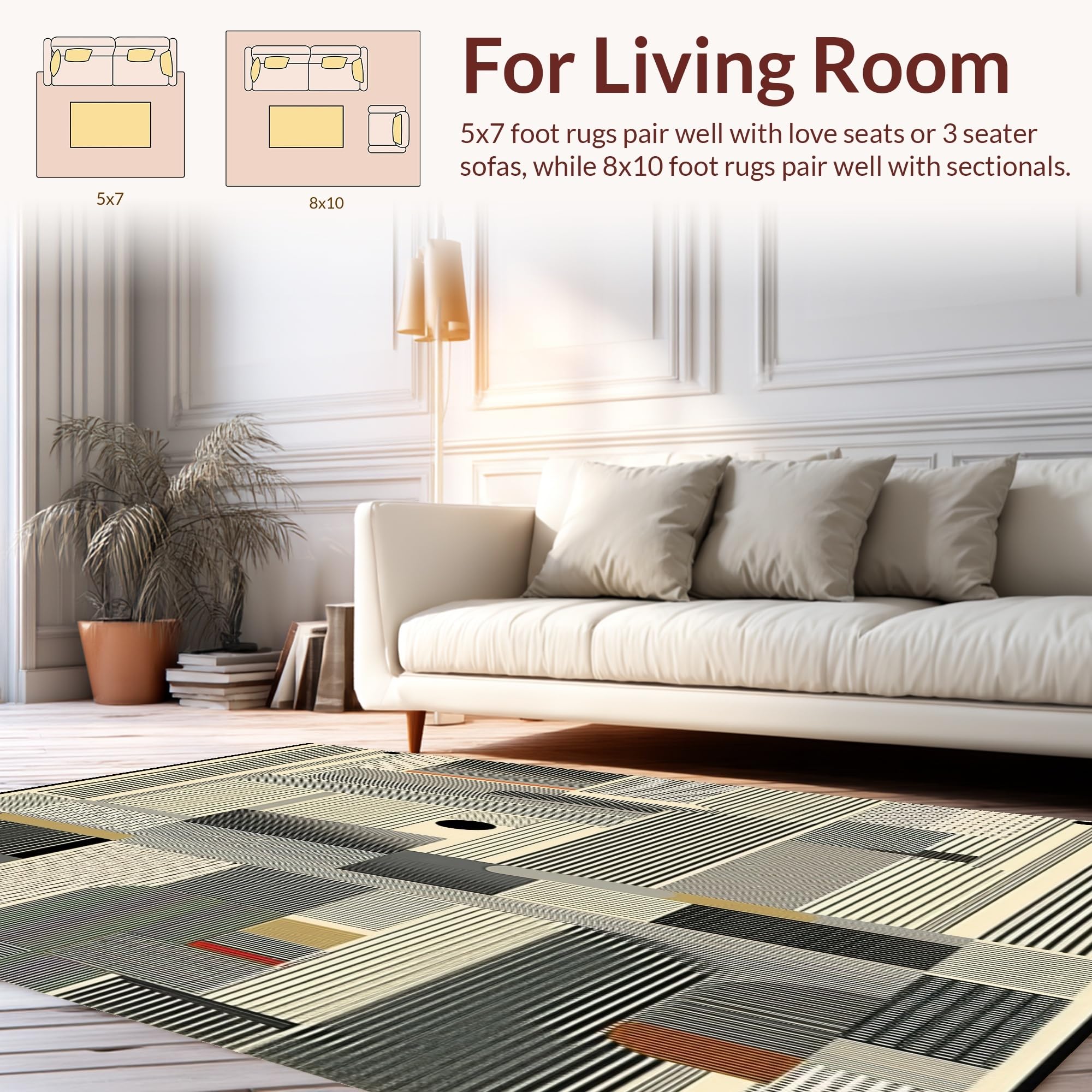 Ultra Soft Area Rug, Non Slip, Stain Resistant, Washable Area Rugs for Living Room, Bedroom, Modern Abstract Animal Design Beige & Onyx Striped(Gray) Overview: