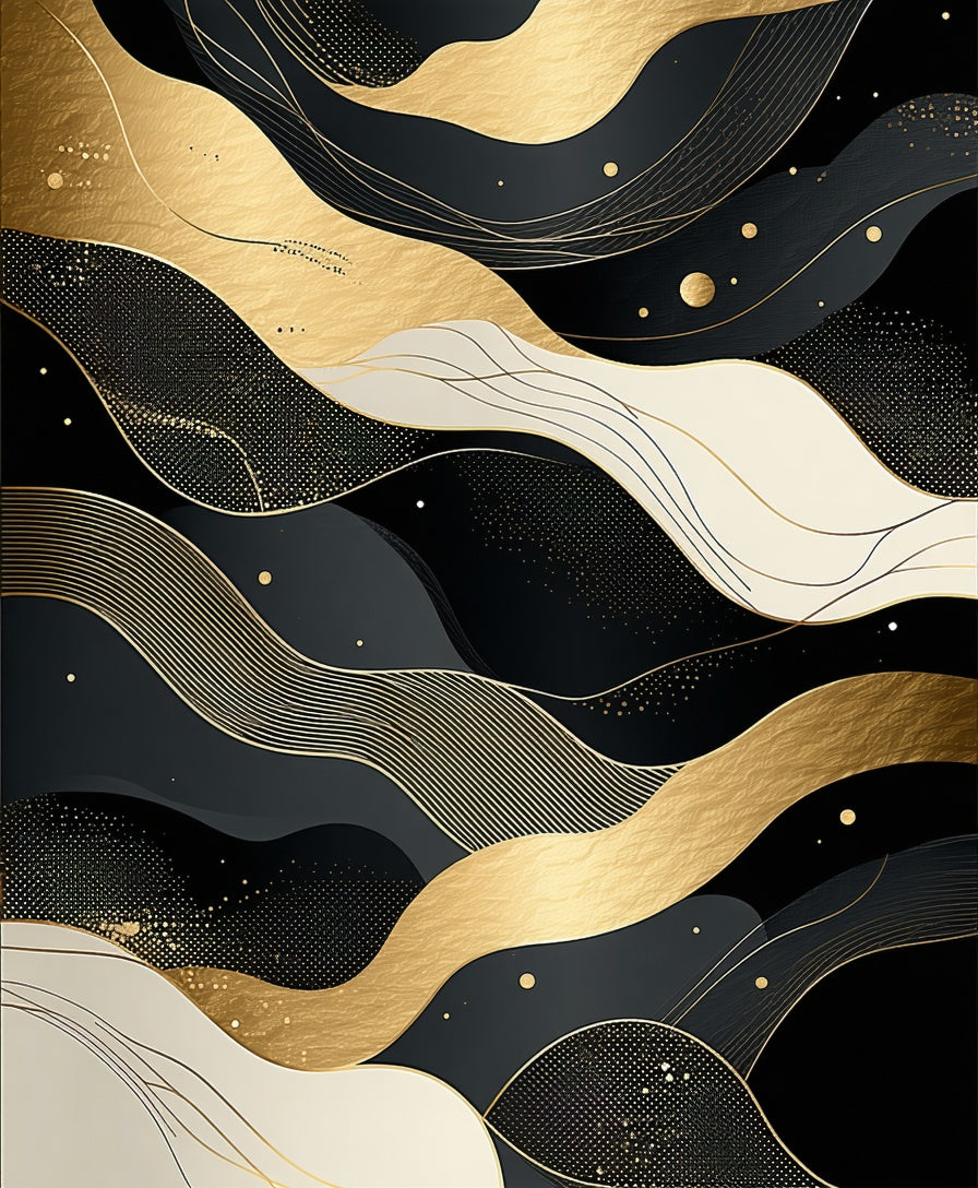 Modern Abstract Black and Gold with Fluid Geometric Swirls Accents(Black)