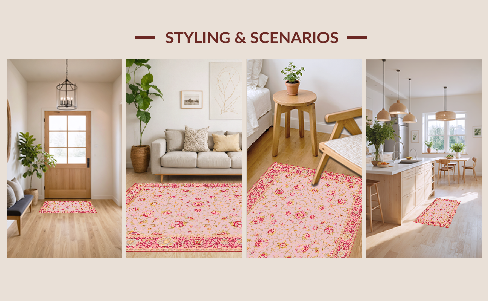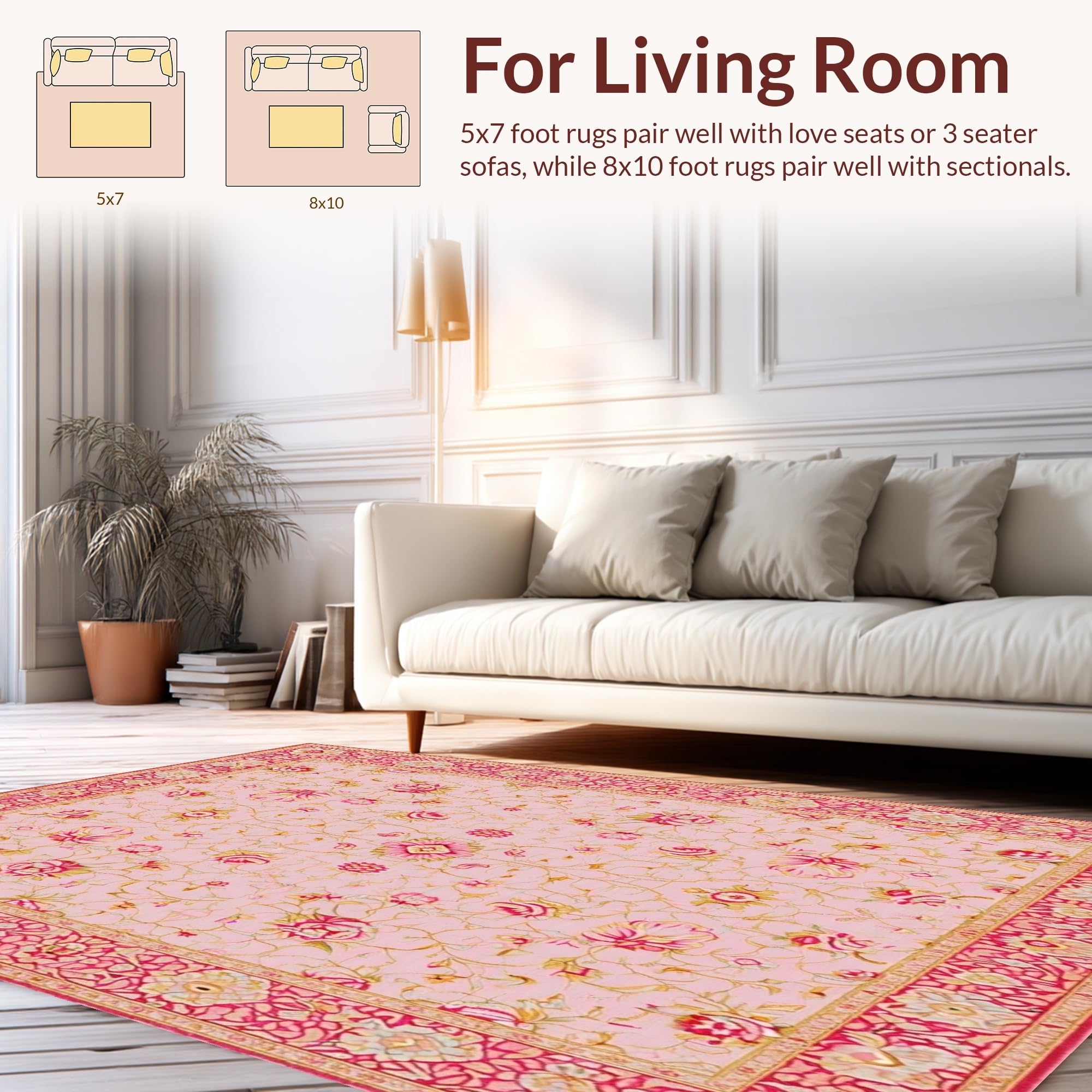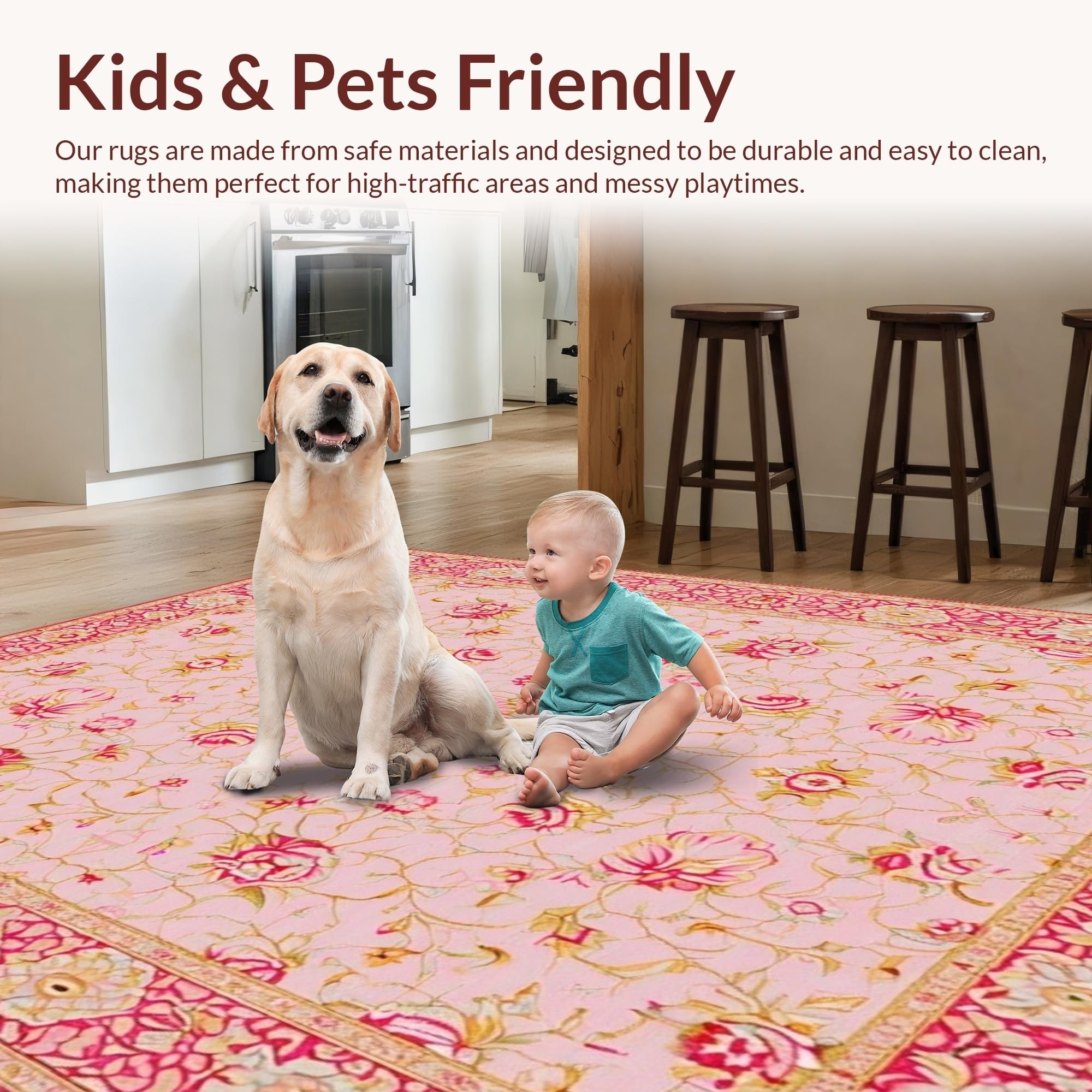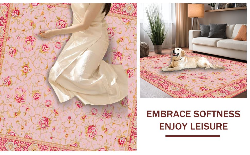 Ultra Soft Area Rug, Non Slip, Stain Resistant, Washable Area Rugs for Living Room, Bedroom, Modern Abstract Colorful Arrangement(Pink) Overview: