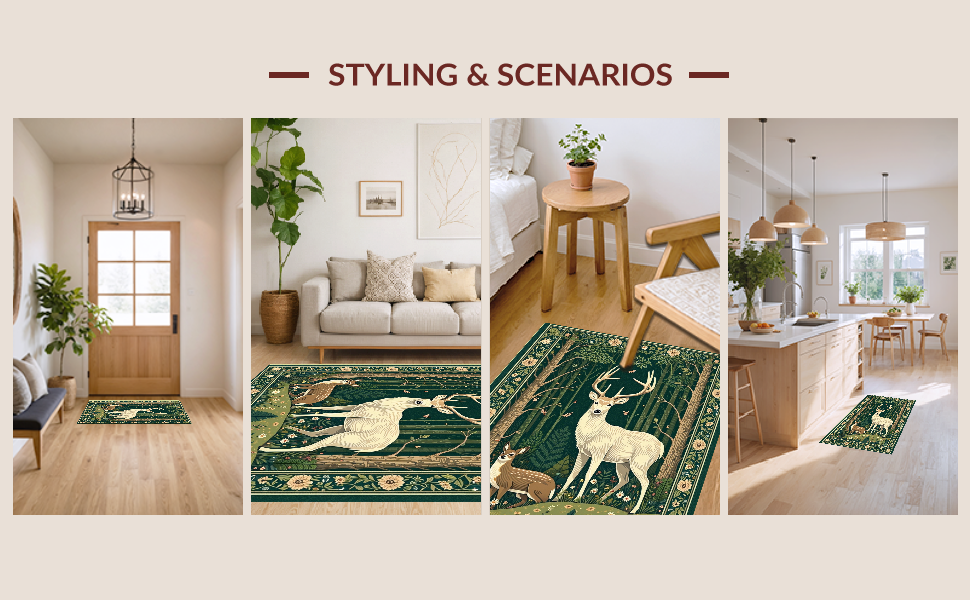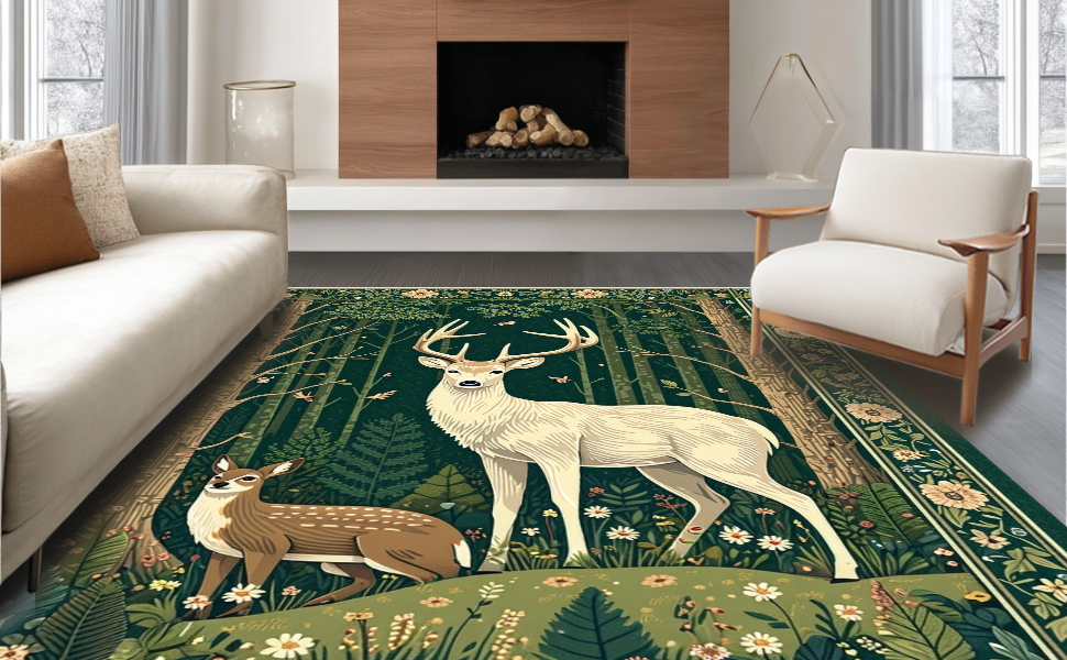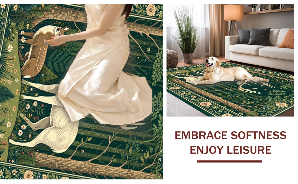 Ultra Soft Area Rug, Non Slip, Stain Resistant, Washable Area Rugs for Living Room, Bedroom, Modern Abstract Fauna Design(Green) Overview:
