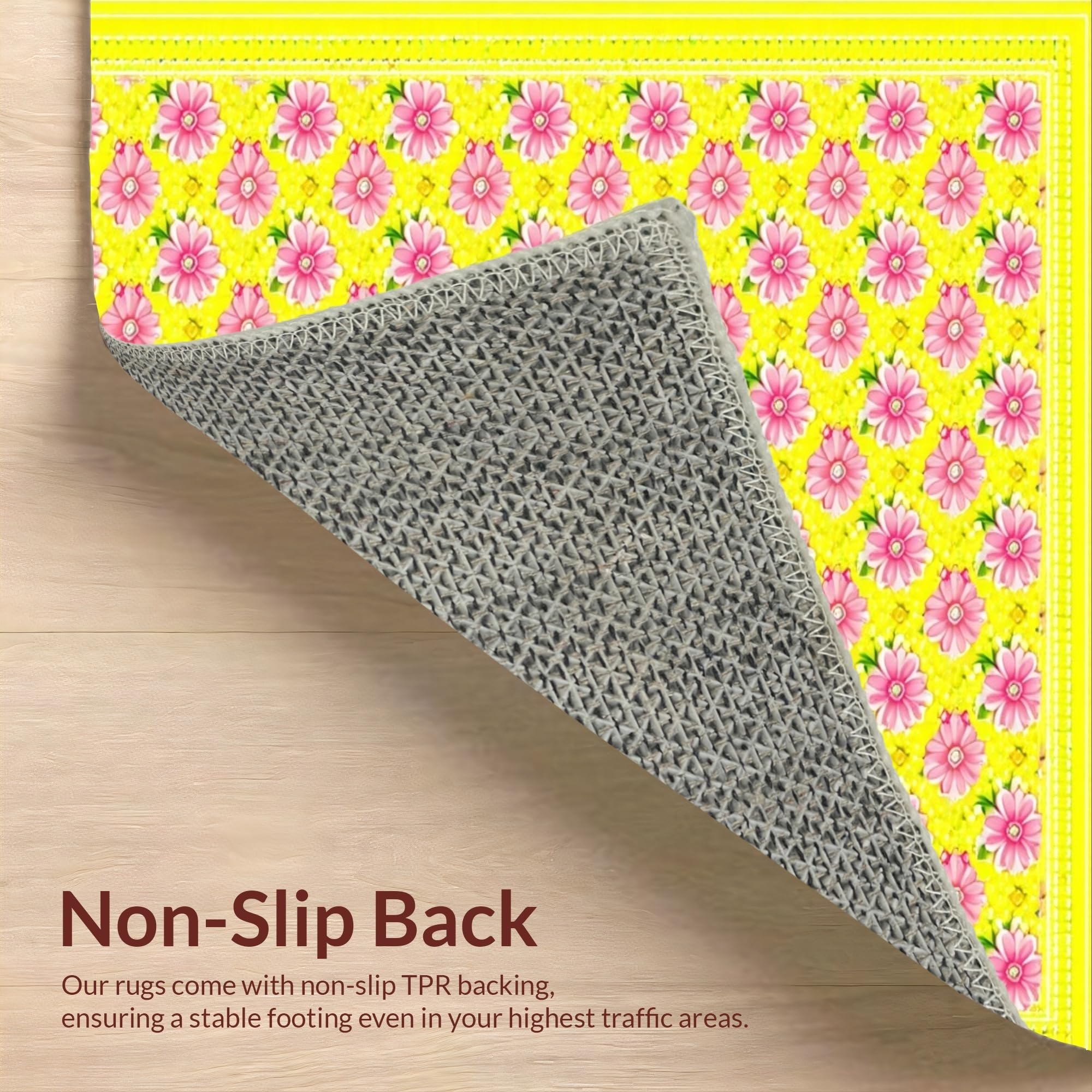 Ultra Soft Area Rug, Non Slip, Stain Resistant, Washable Area Rugs for Living Room, Bedroom, Modern Abstract Floral Aesthetic(Yellow) Overview: