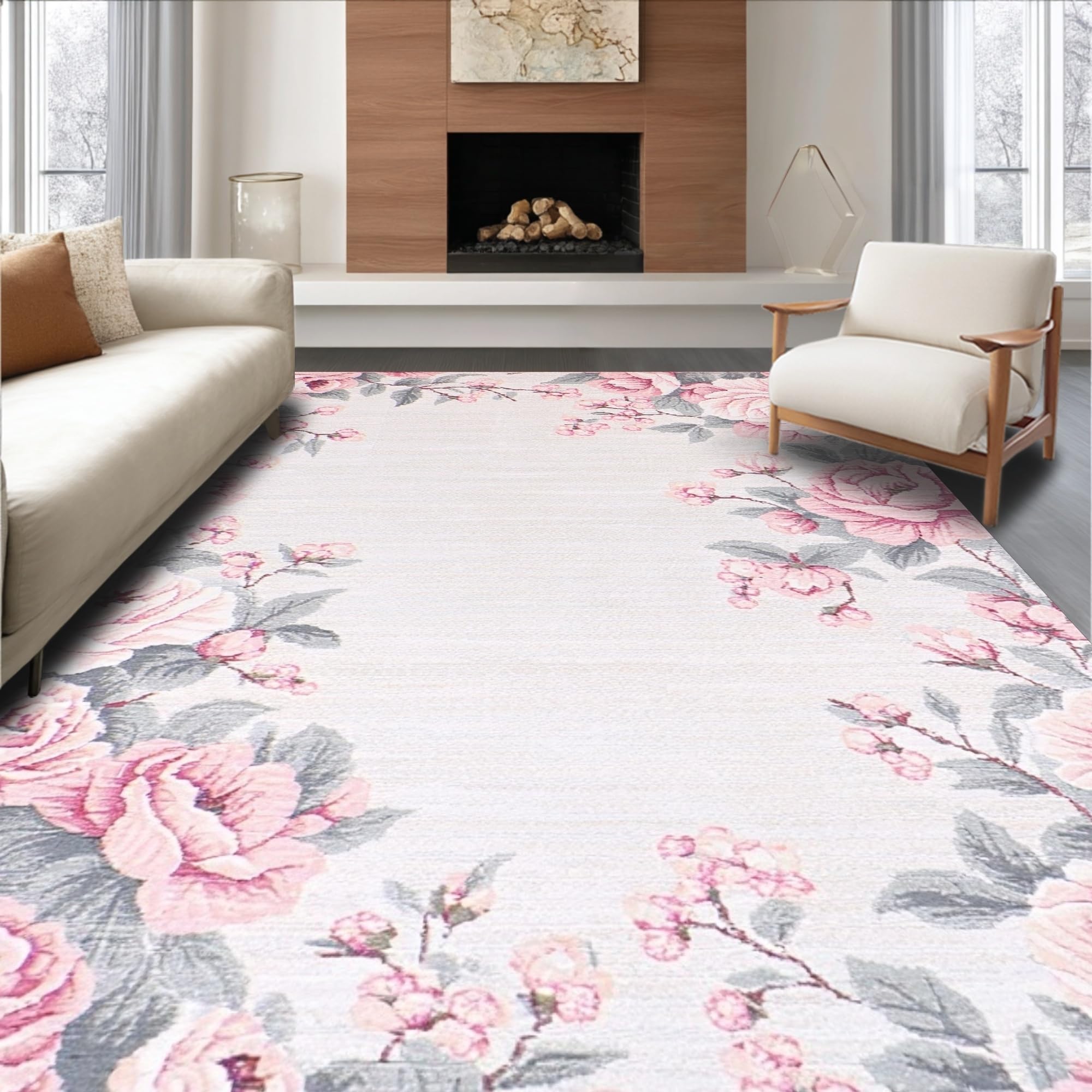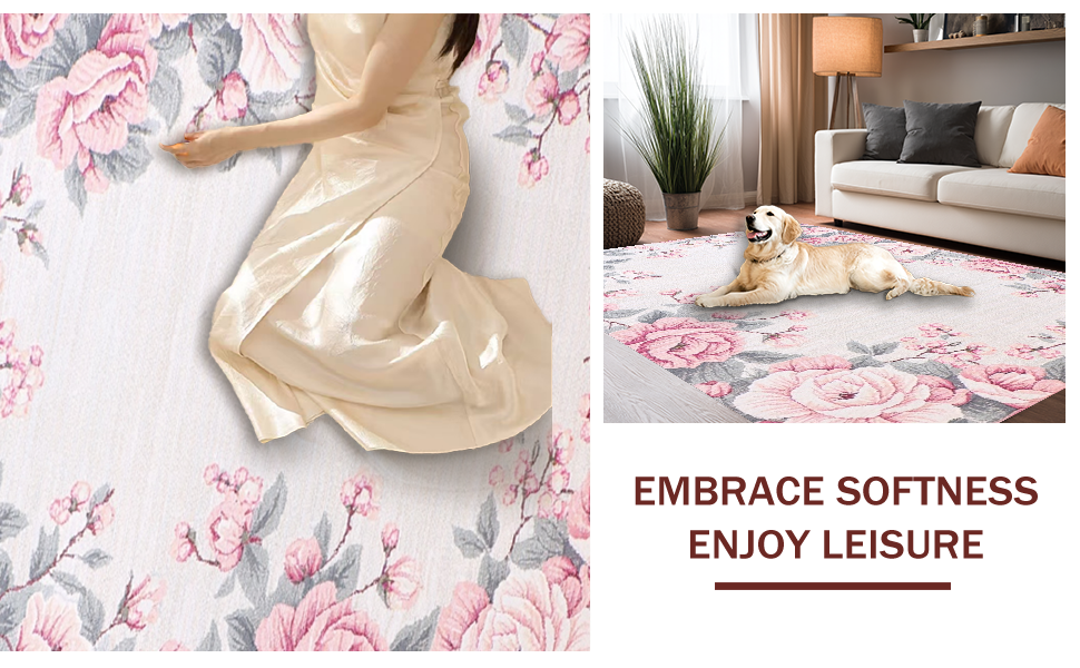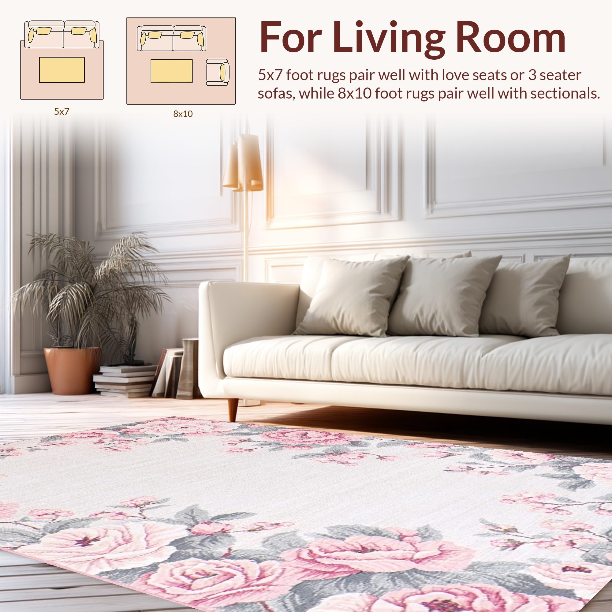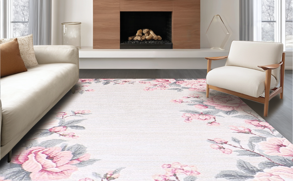 Ultra Soft Area Rug, Non Slip, Stain Resistant, Washable Area Rugs for Living Room, Bedroom, Modern Abstract Flower Fusion(Ivory) Overview: