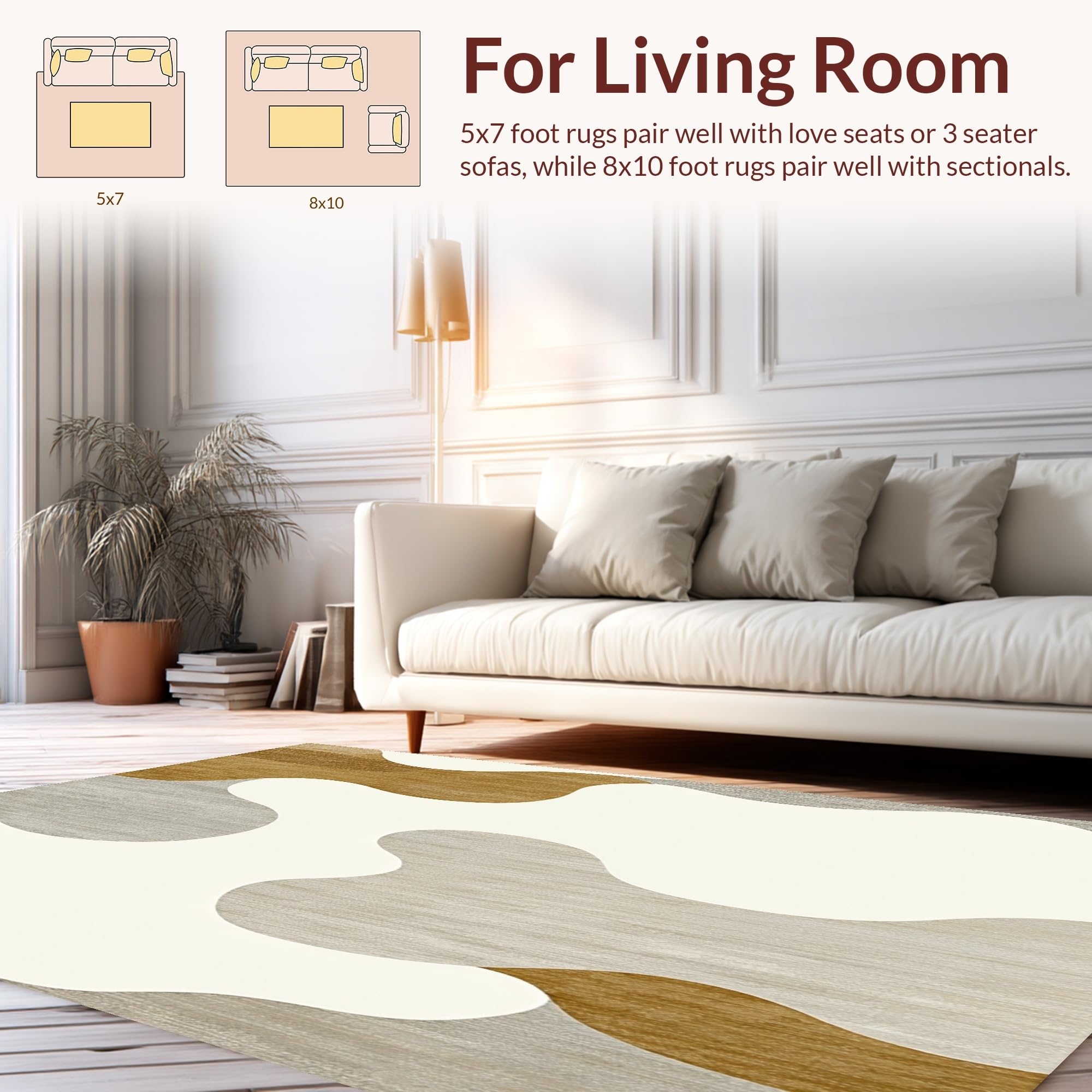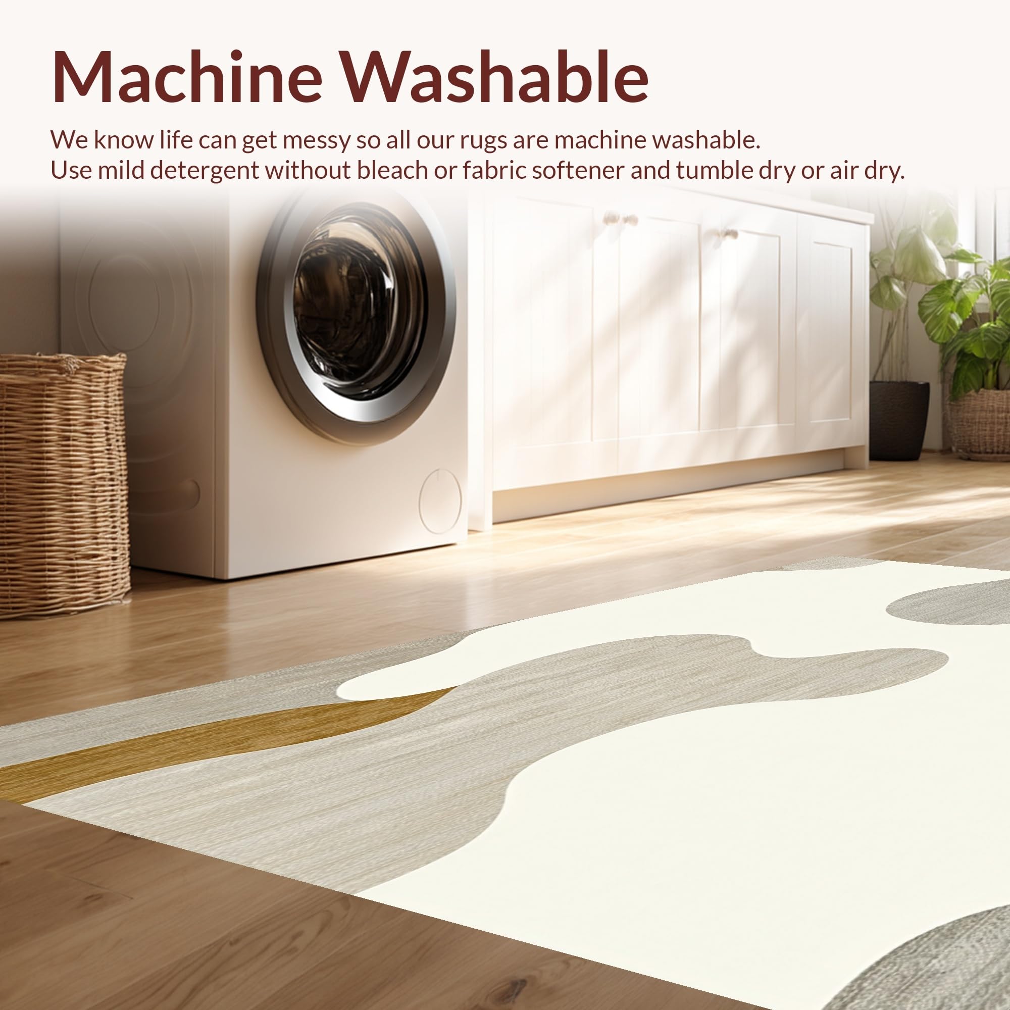 Ultra Soft Area Rug, Non Slip, Stain Resistant, Washable Area Rugs for Living Room, Bedroom, Modern Abstract Flowing Area Beige Cream Pet Friendly Non Shedding(Beige) Overview: