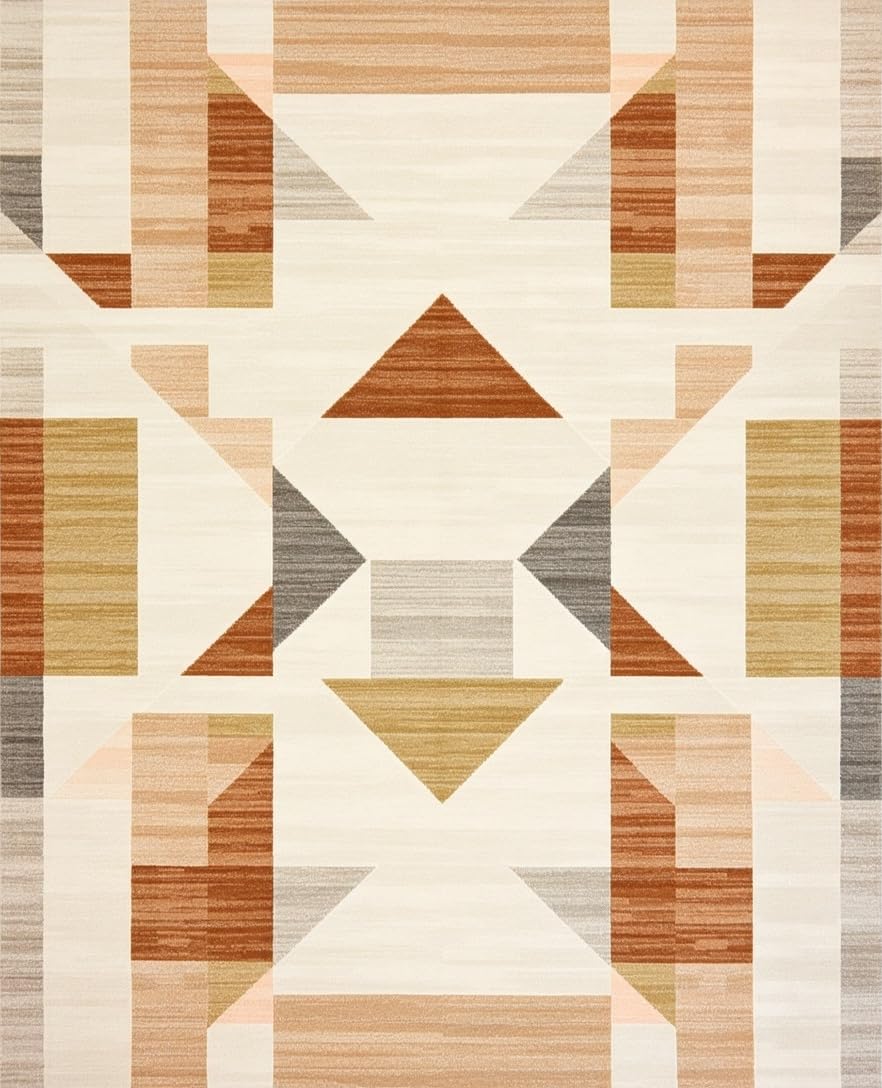 Modern Abstract Geometric Area with Earthy Brown and Beige Borders(Beige)