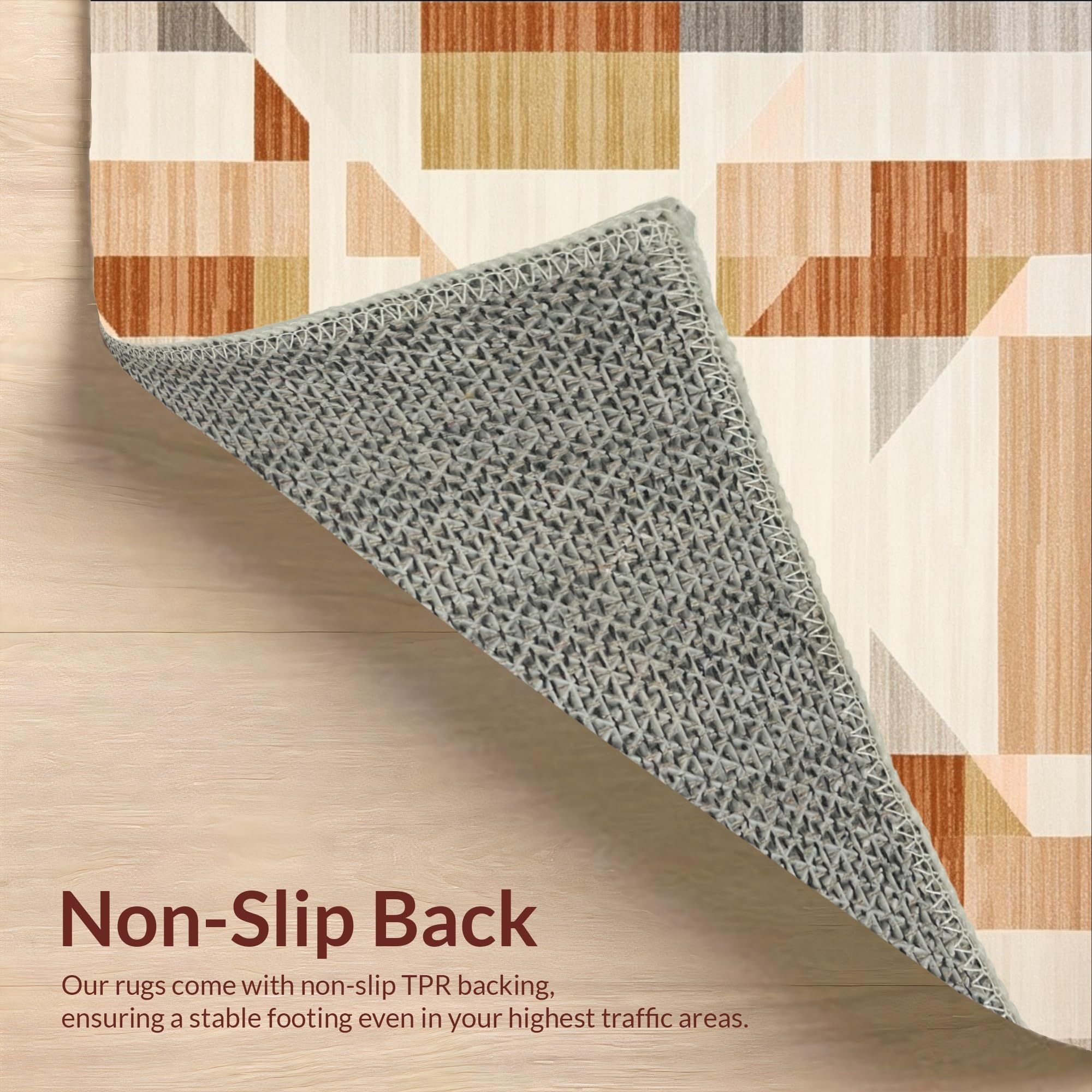 Ultra Soft Area Rug, Non Slip, Stain Resistant, Washable Area Rugs for Living Room, Bedroom, Modern Abstract Geometric Area with Earthy Brown and Beige Borders(Beige) Overview: