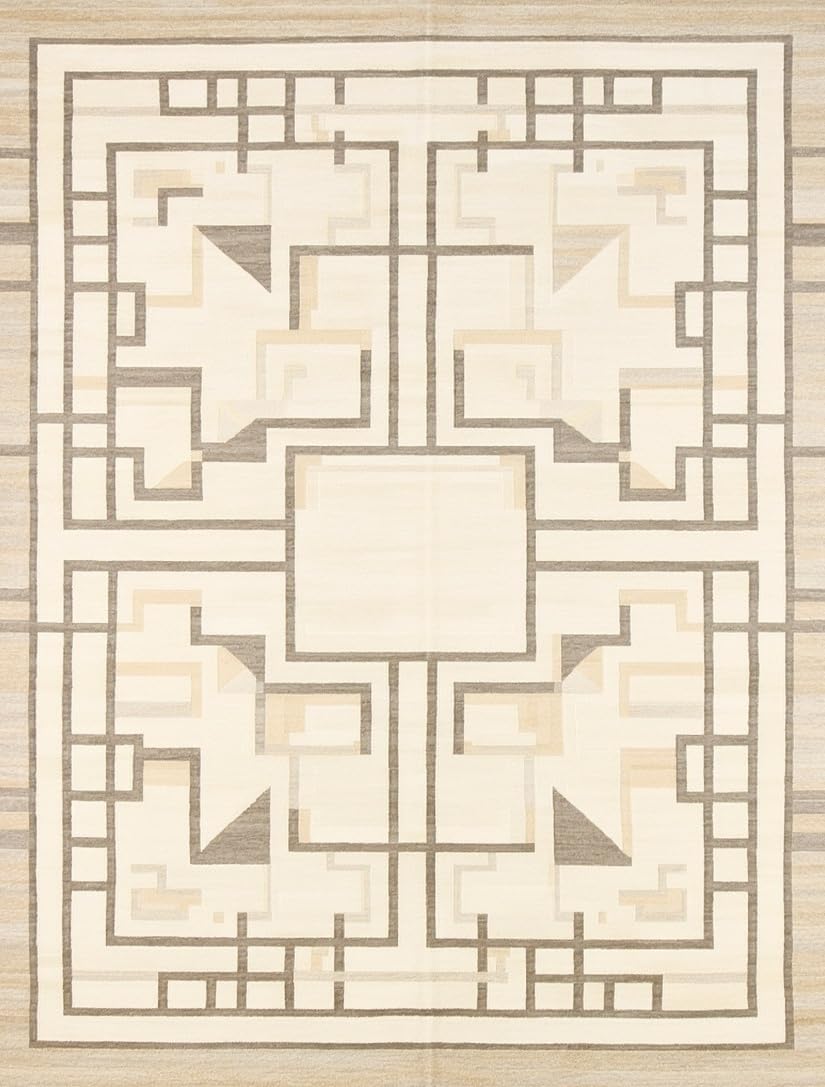Modern Abstract Geometric Beige Non Slip Area(Beige)