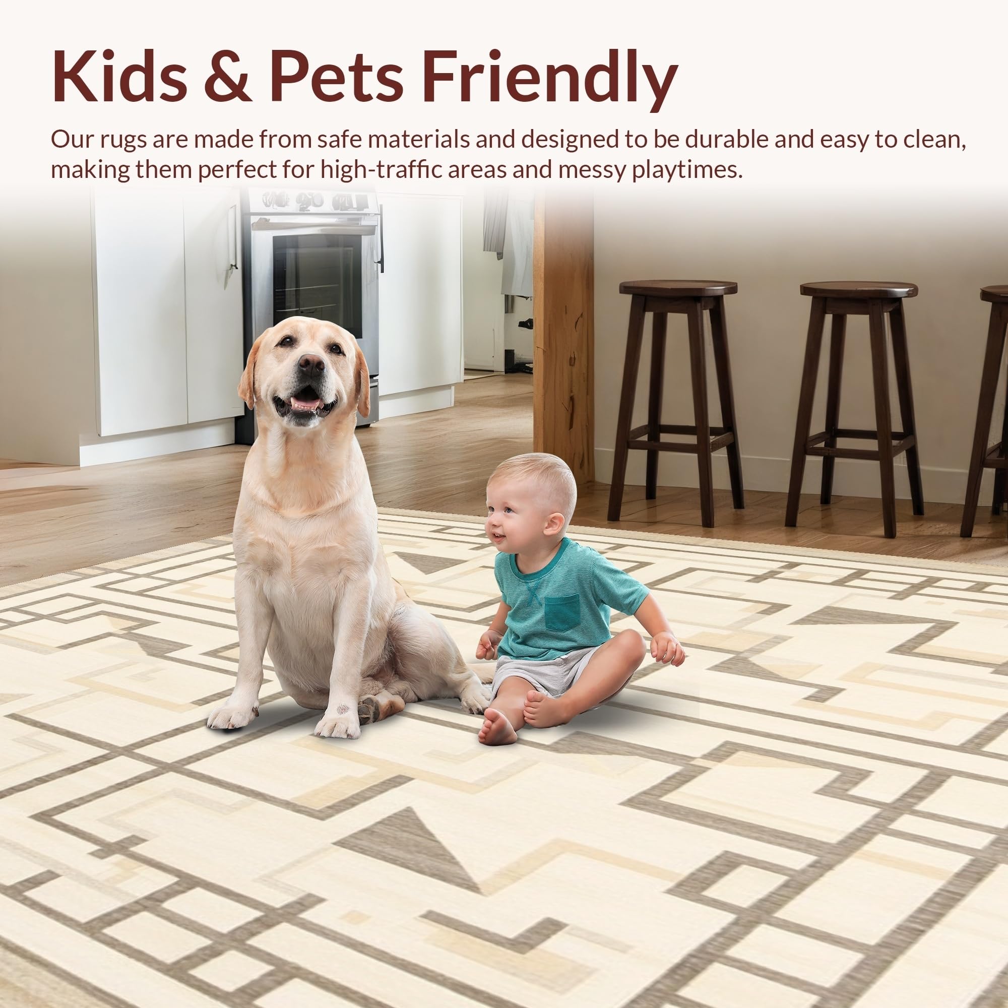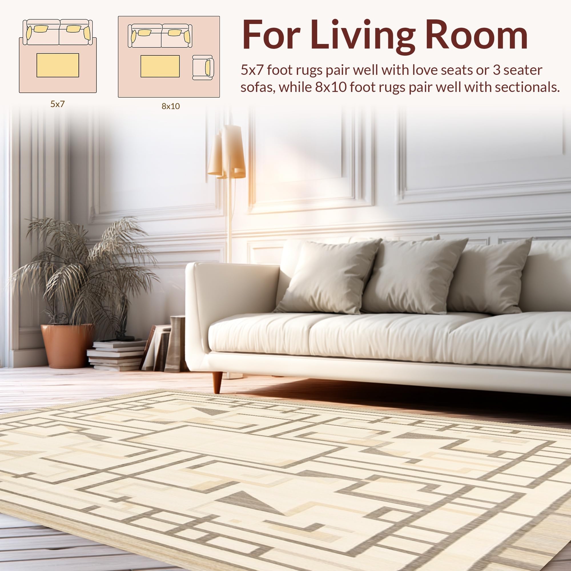 Ultra Soft Area Rug, Non Slip, Stain Resistant, Washable Area Rugs for Living Room, Bedroom, Modern Abstract Geometric Beige Non Slip Area(Beige) Overview: