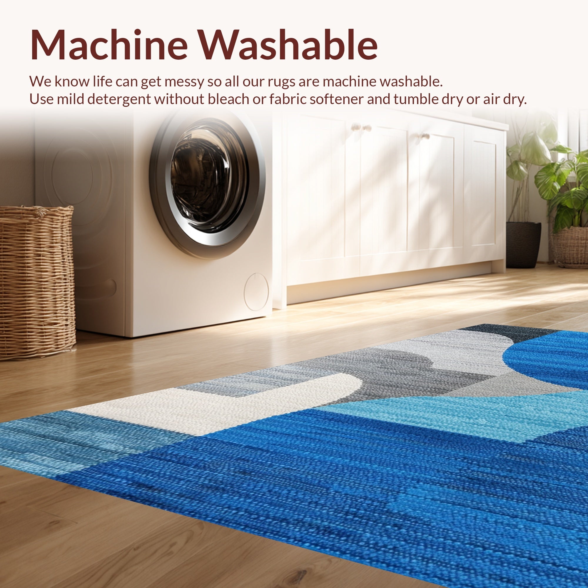 - Machine Washable: Our rugs can be easily thrown in the wash machine.