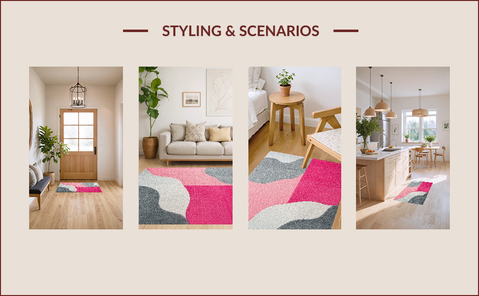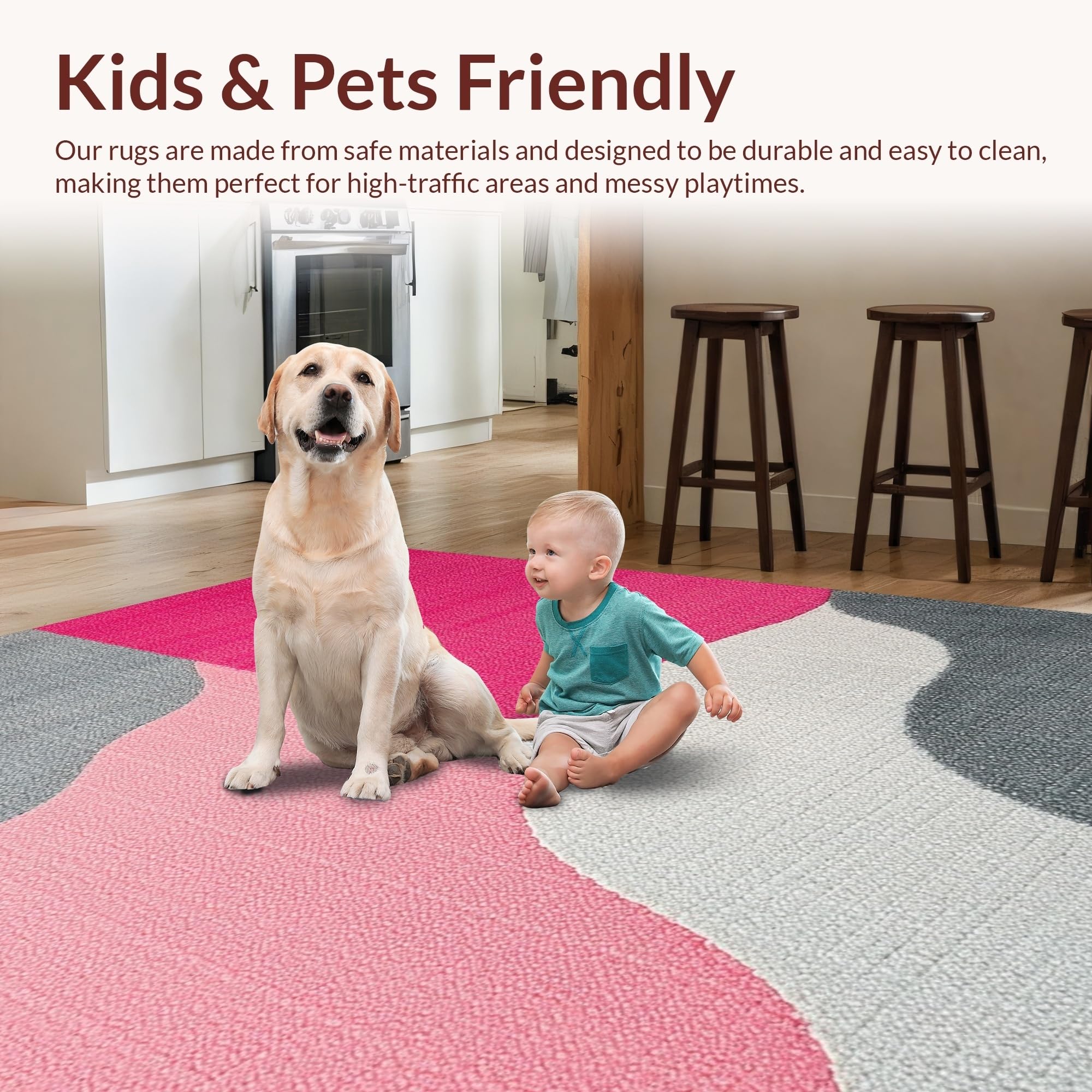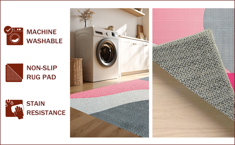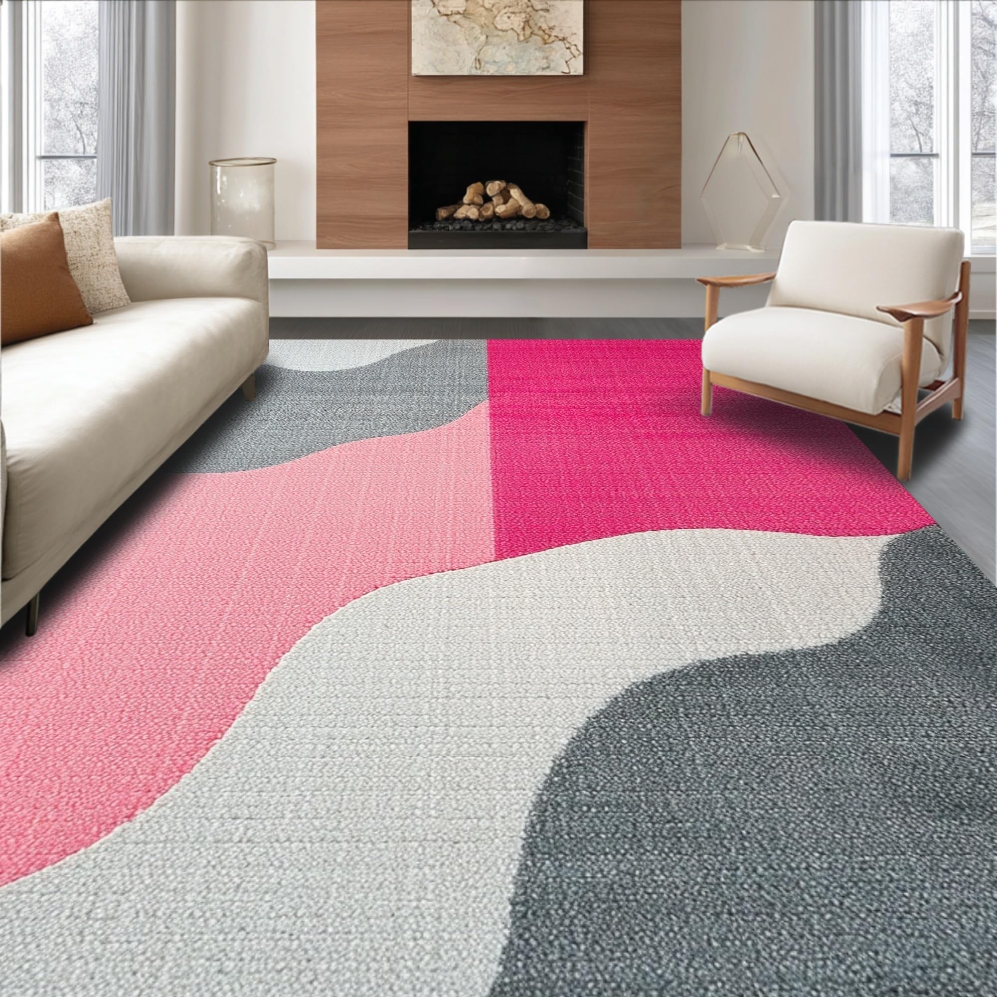 Ultra Soft Area Rug, Non Slip, Stain Resistant, Washable Area Rugs for Living Room, Bedroom, Modern Abstract Grey Pink Living Room Rug(Gray) Overview: