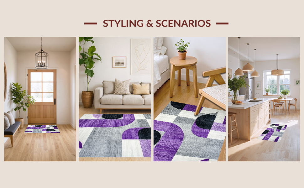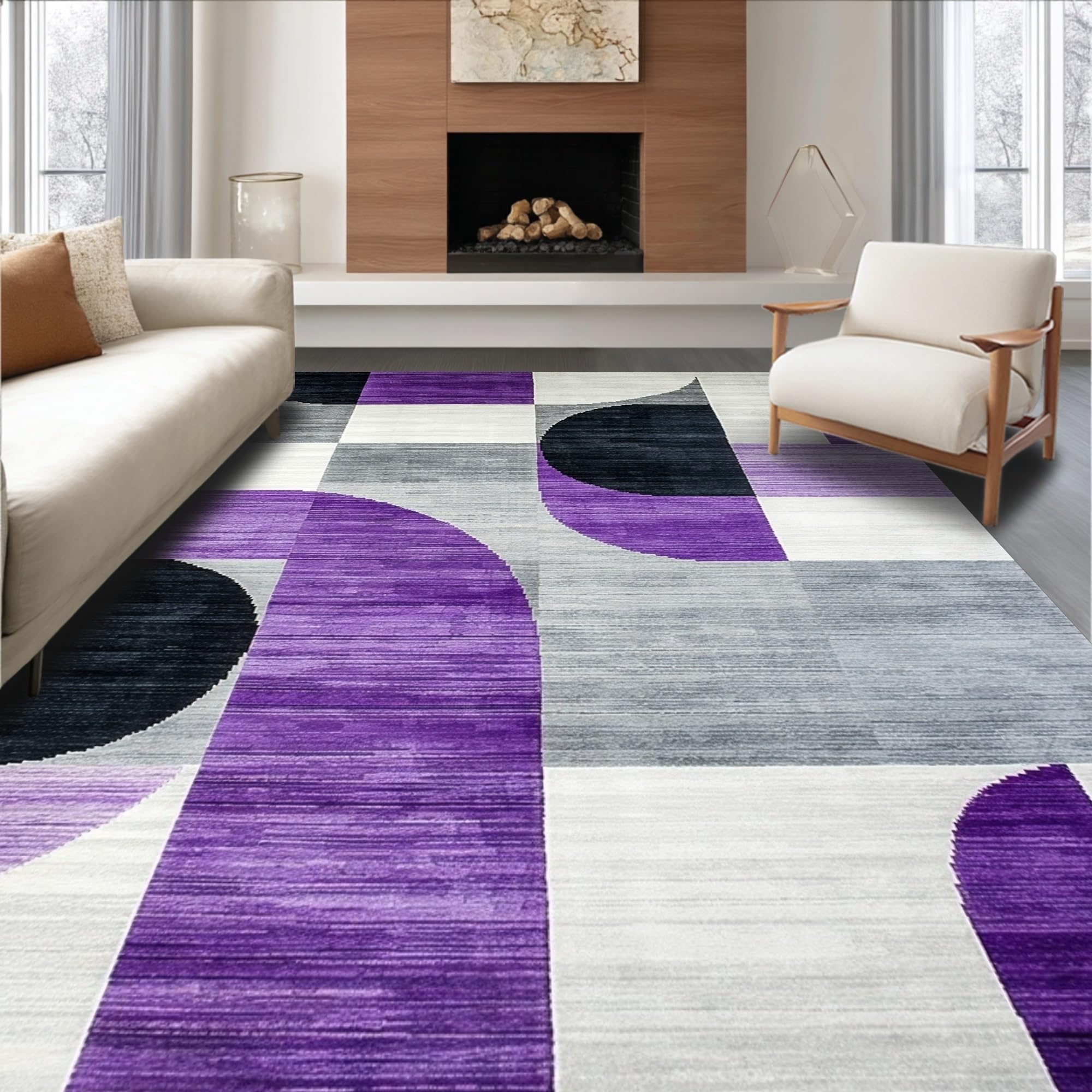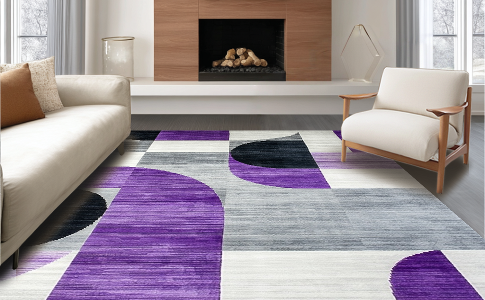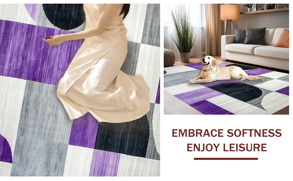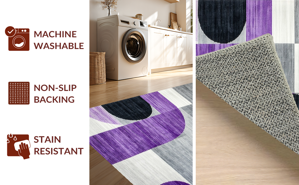 Ultra Soft Area Rug, Non Slip, Stain Resistant, Washable Area Rugs for Living Room, Bedroom, Modern Abstract Half Moon(Purple) Overview: