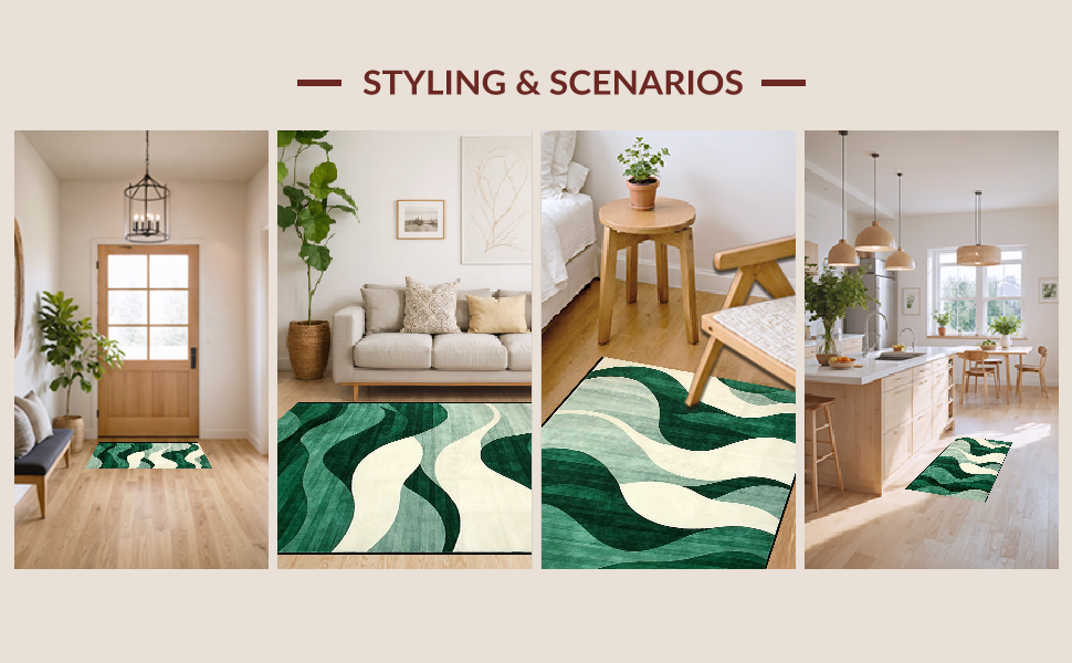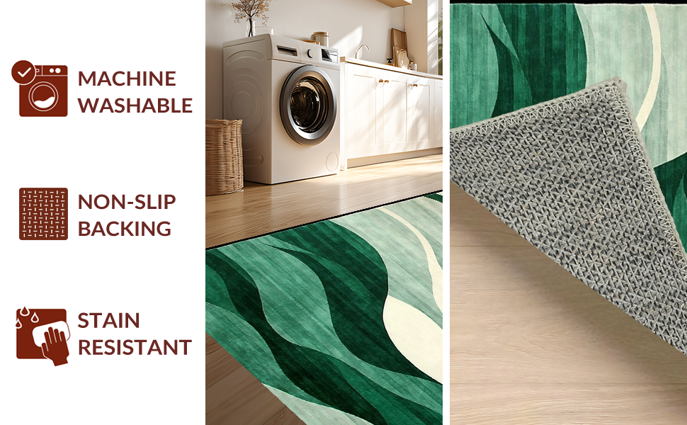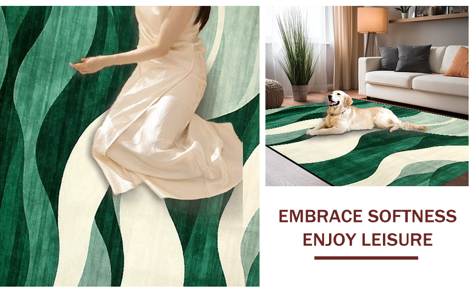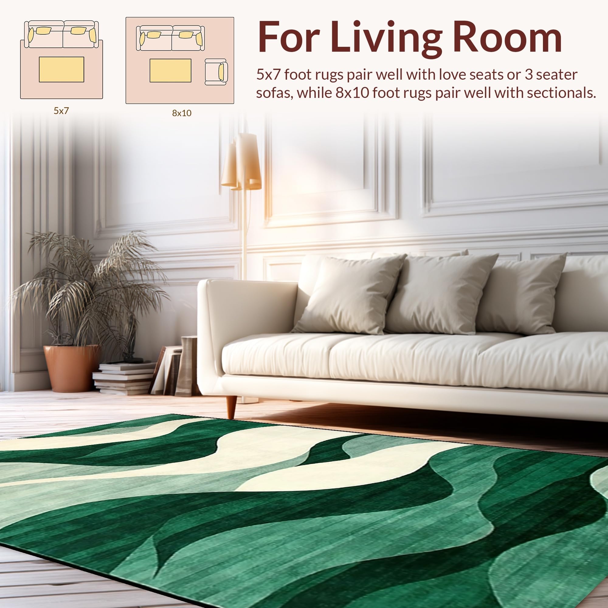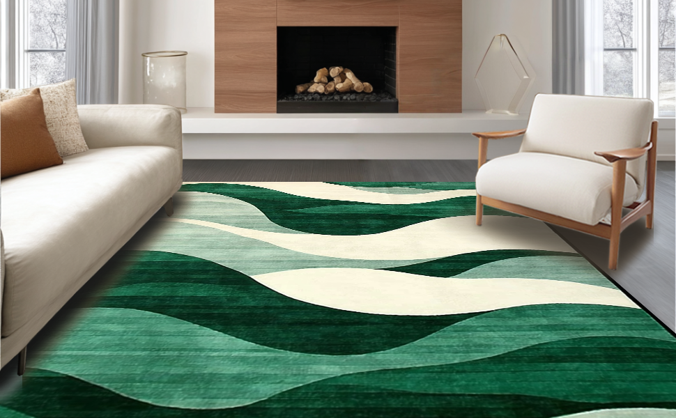 Ultra Soft Area Rug, Non Slip, Stain Resistant, Washable Area Rugs for Living Room, Bedroom, Modern Abstract Irregular Borders(Green) Overview: