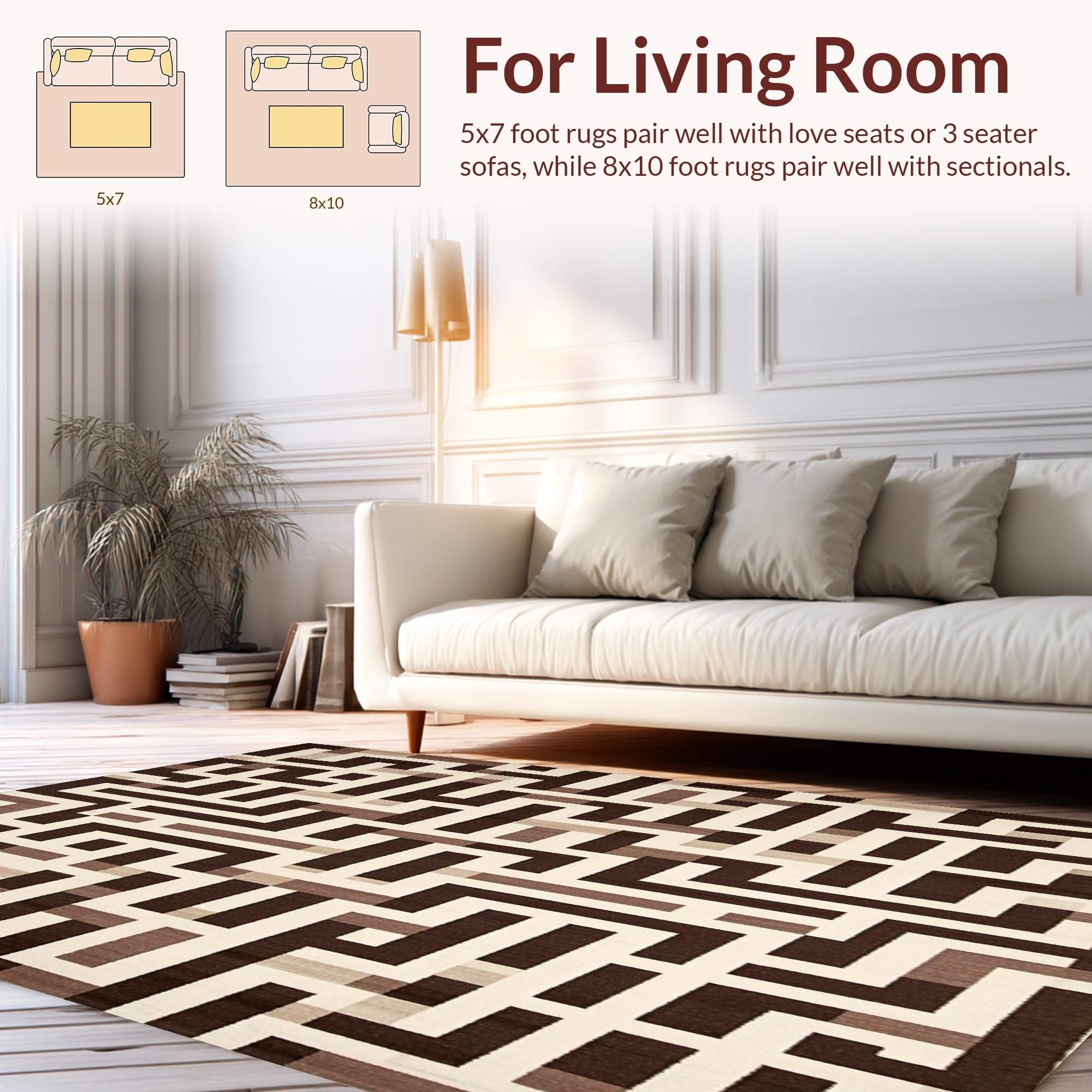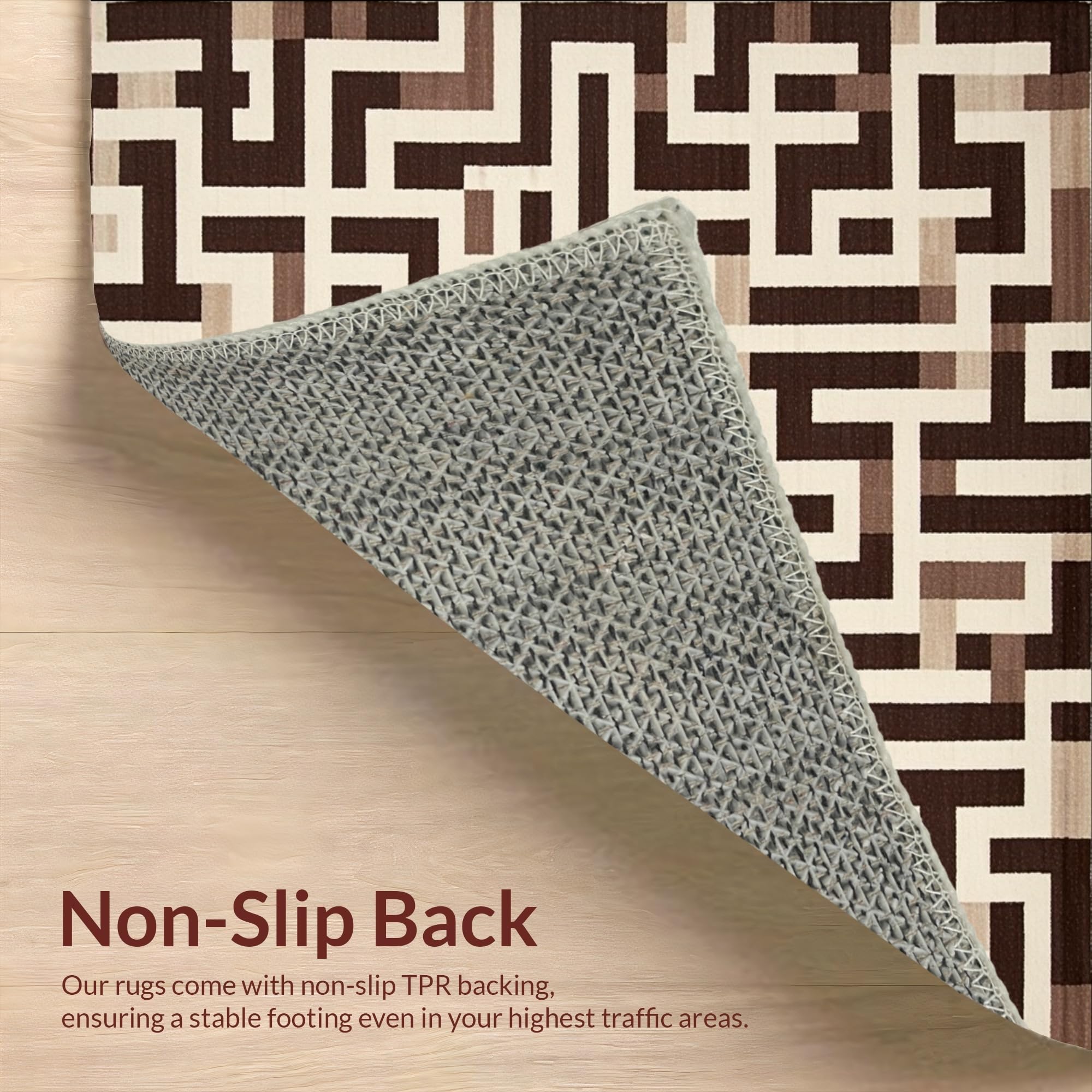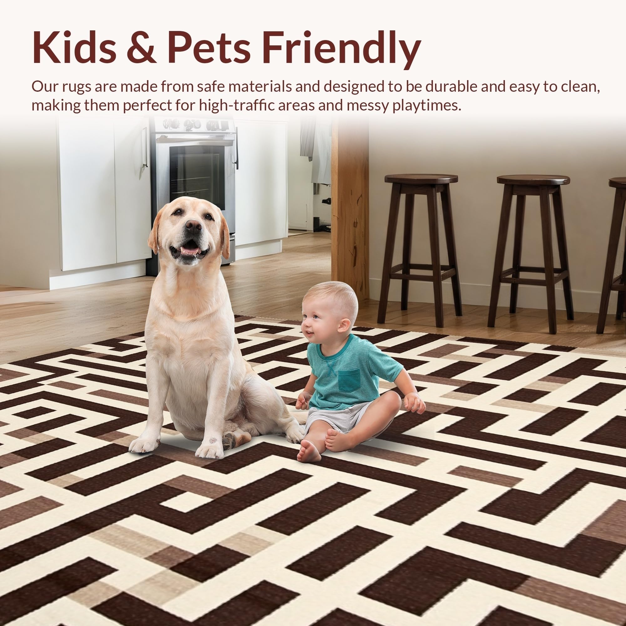 Ultra Soft Area Rug, Non Slip, Stain Resistant, Washable Area Rugs for Living Room, Bedroom, Modern Abstract Lines Area with Interlocking Geometric Shapes Design(Beige) Overview: