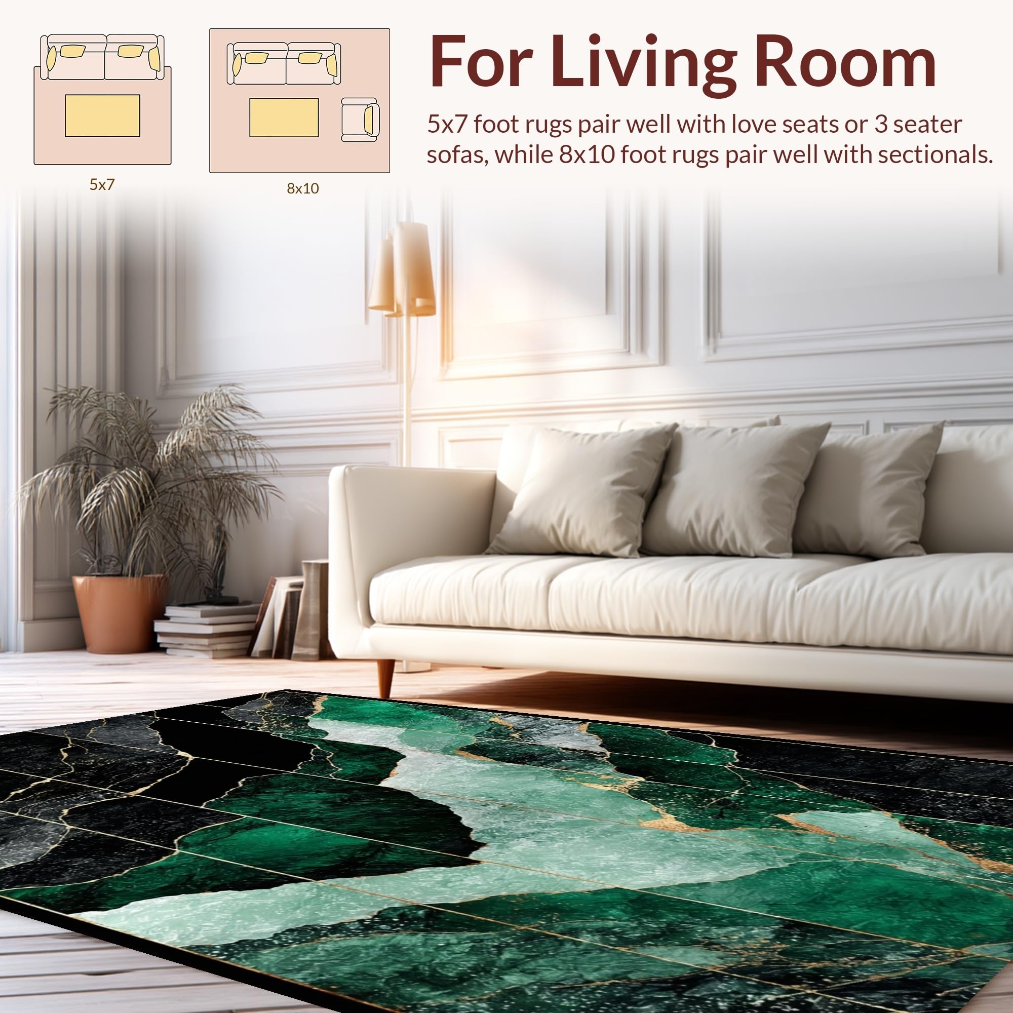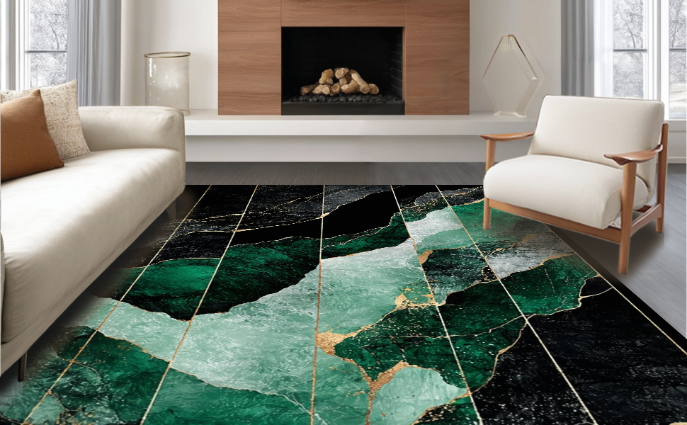 Ultra Soft Area Rug, Non Slip, Stain Resistant, Washable Area Rugs for Living Room, Bedroom, Modern Abstract Marble Fusion(Black) Overview: