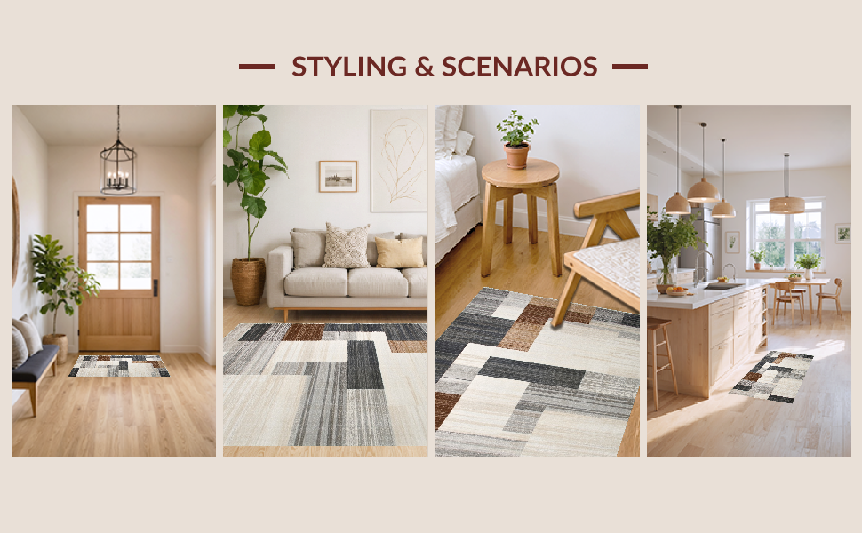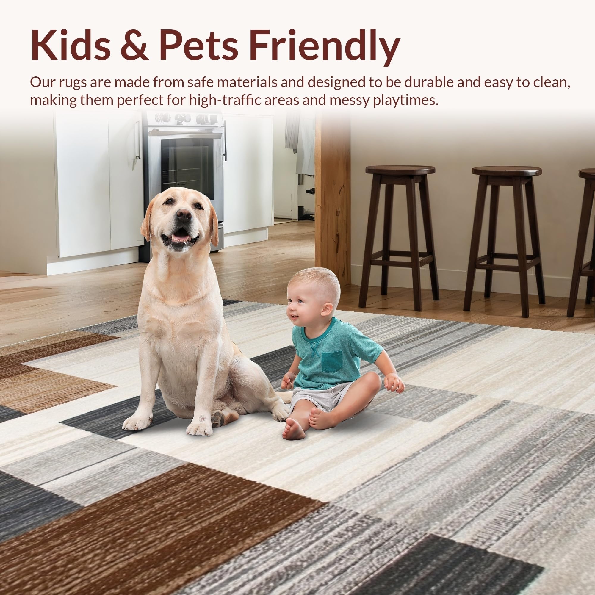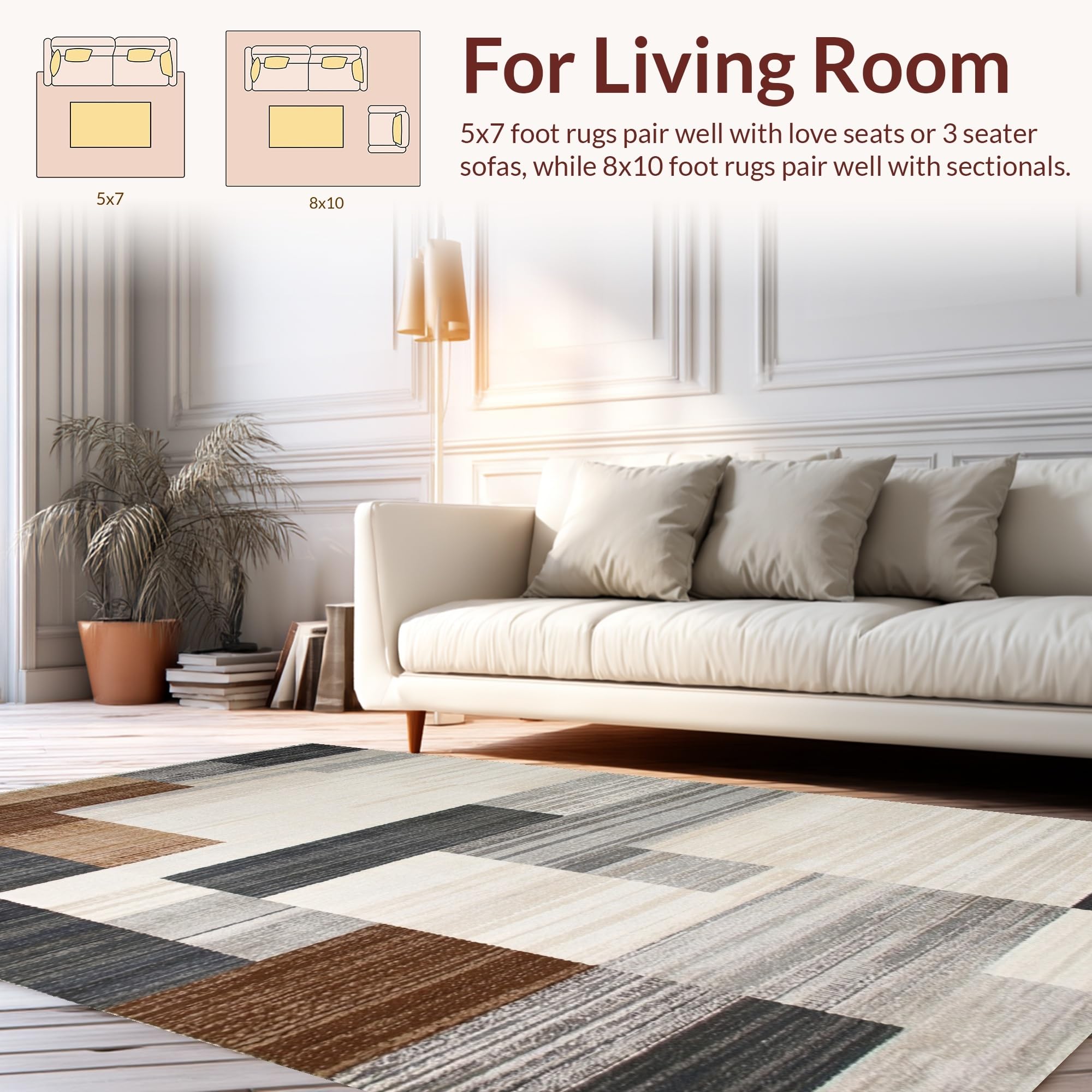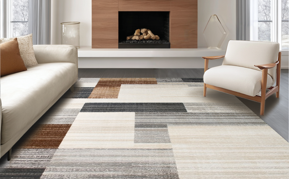 Ultra Soft Area Rug, Non Slip, Stain Resistant, Washable Area Rugs for Living Room, Bedroom, Modern Abstract Multi-Hued Design(Gray) Overview: