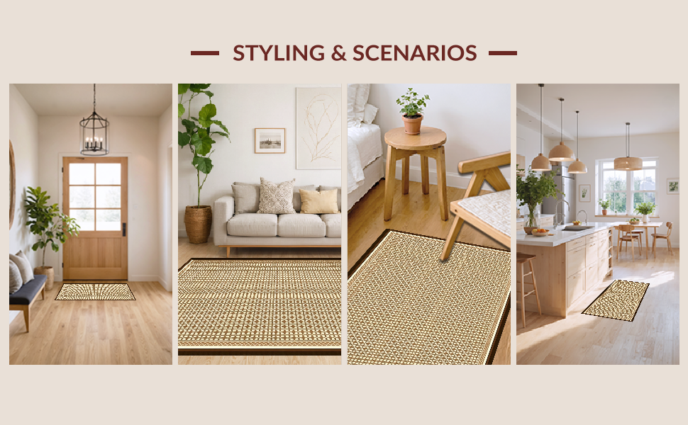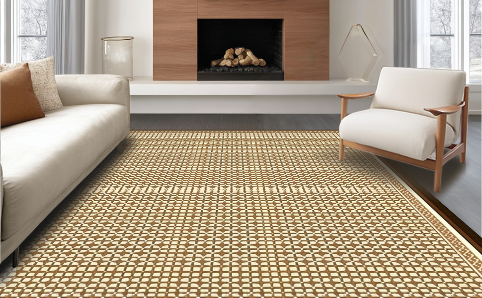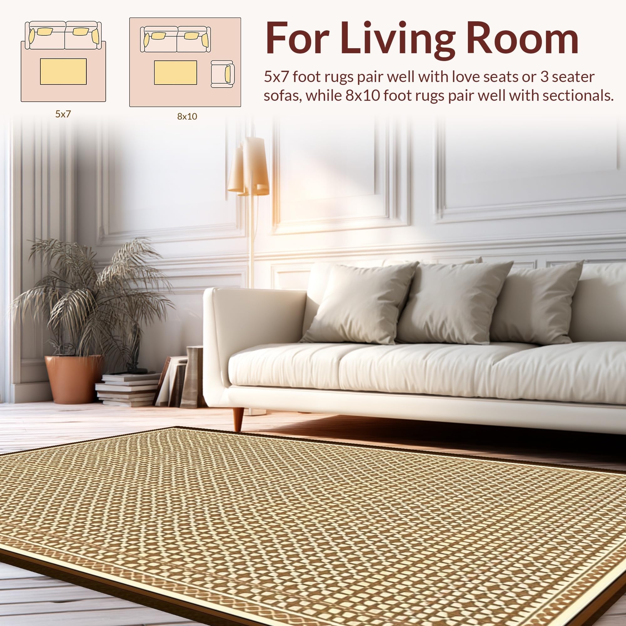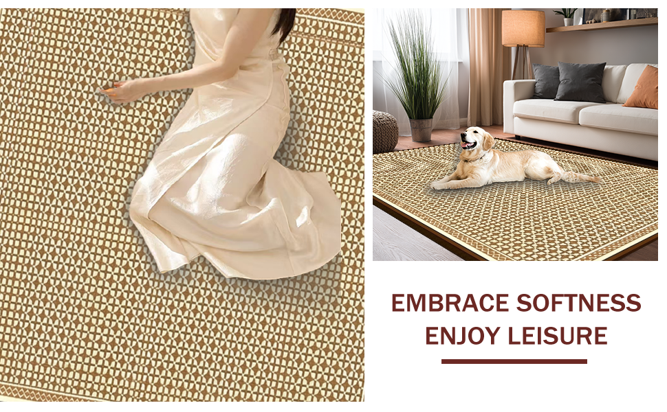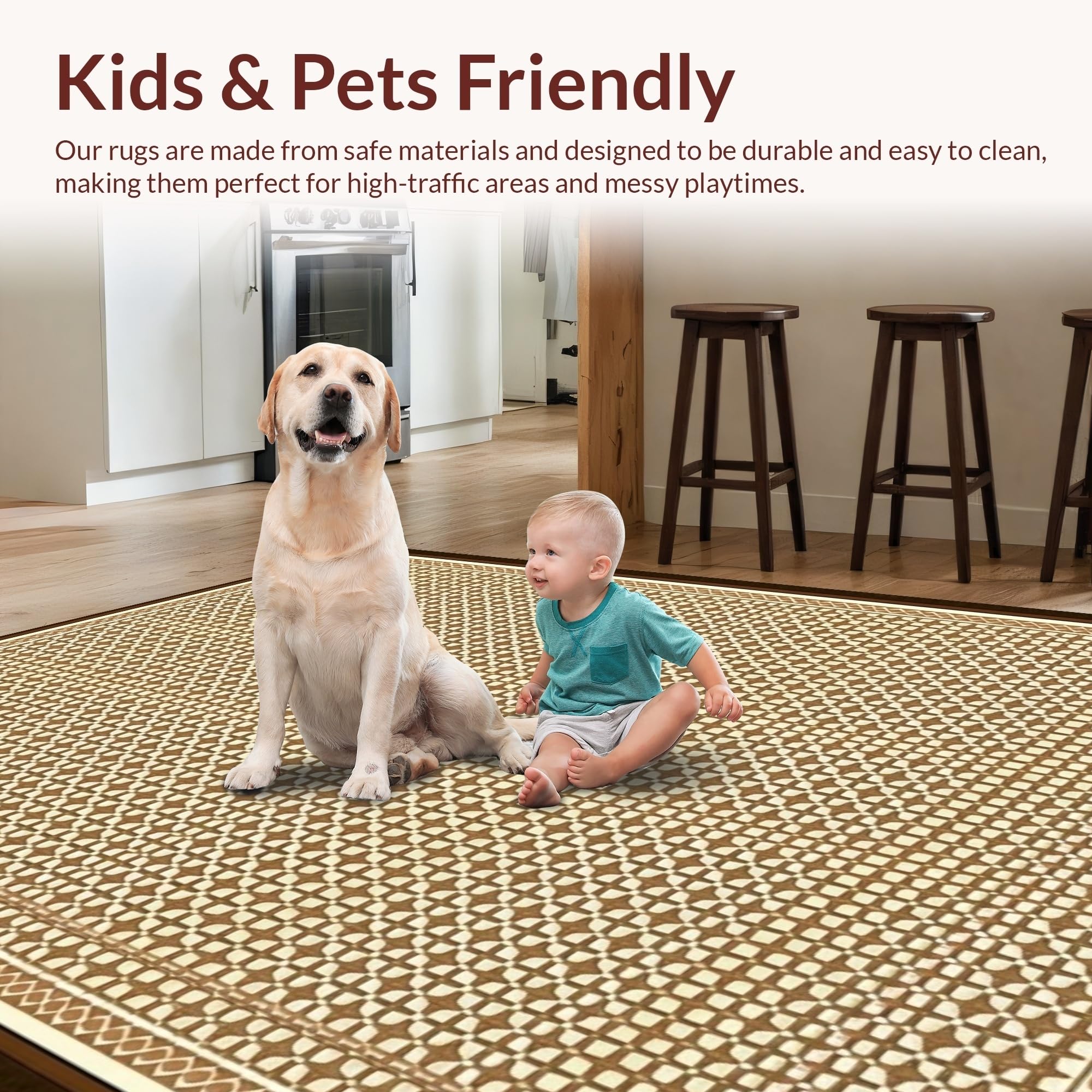 Ultra Soft Area Rug, Non Slip, Stain Resistant, Washable Area Rugs for Living Room, Bedroom, Modern Abstract Ogee Pattern(Beige) Overview:
