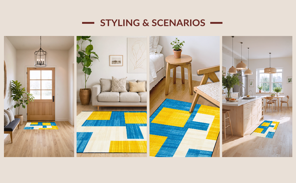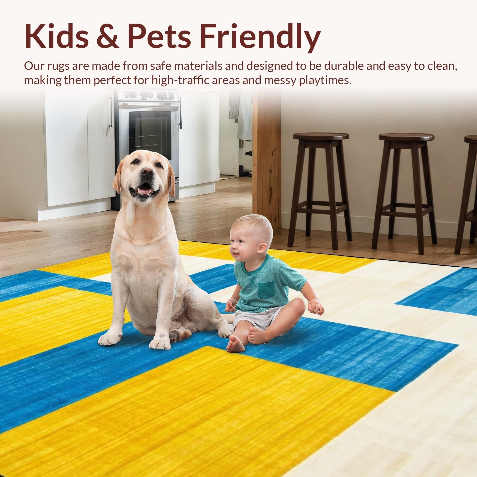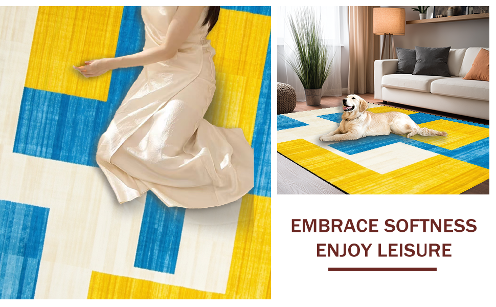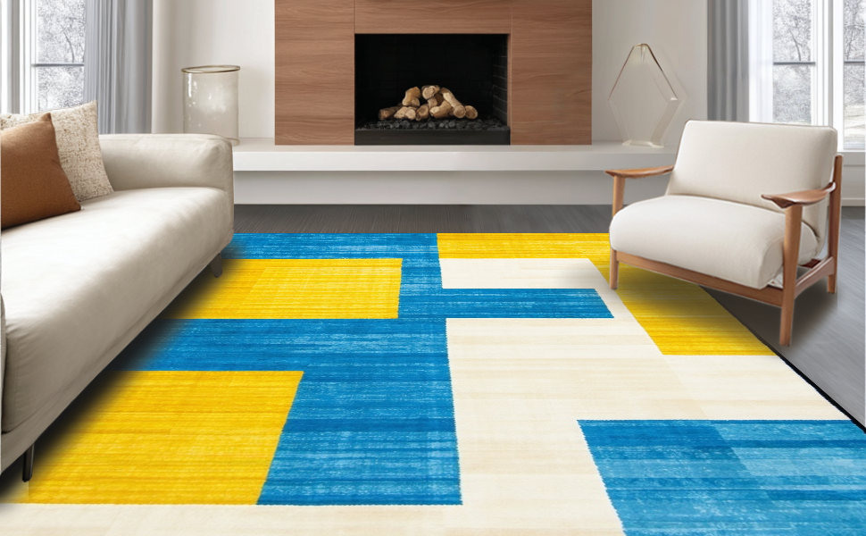 Ultra Soft Area Rug, Non Slip, Stain Resistant, Washable Area Rugs for Living Room, Bedroom, Modern Abstract Patterned Aesthetic(Blue) Overview: