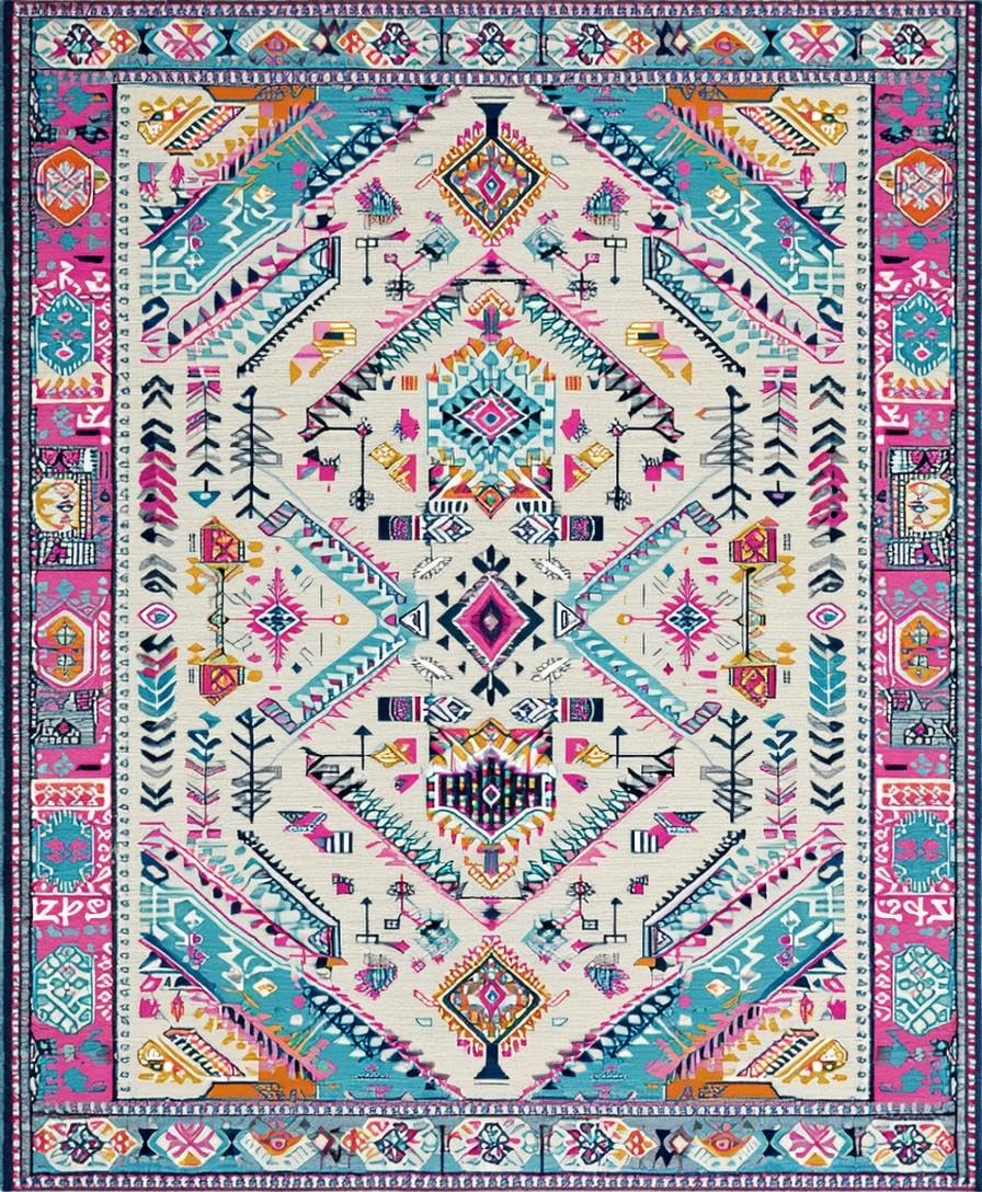 Ultra Soft Area Rug, Non Slip, Stain Resistant, Washable Area Rugs for Living Room, Bedroom, Modern Abstract Patterned Delight(White) Overview: