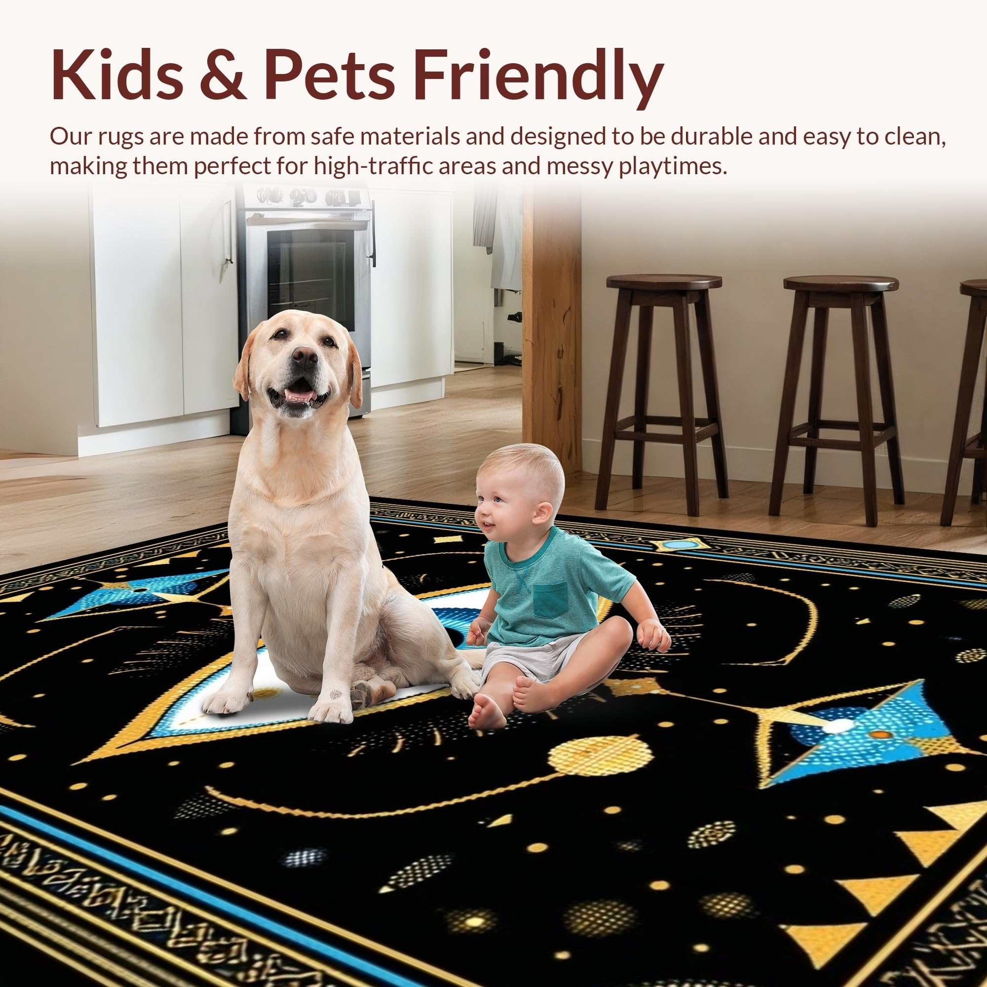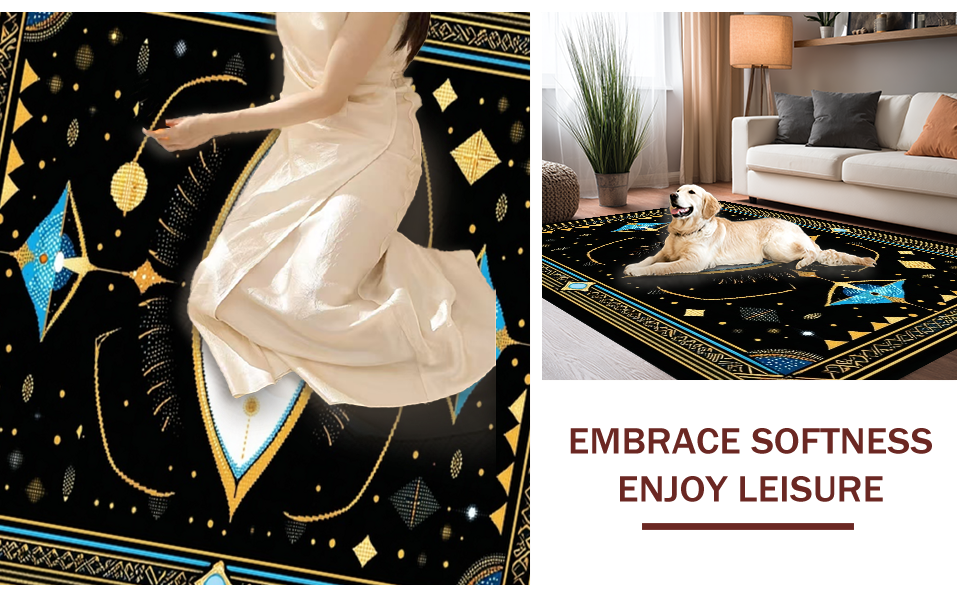 Ultra Soft Area Rug, Non Slip, Stain Resistant, Washable Area Rugs for Living Room, Bedroom, Modern Abstract Protective Pattern(Black) Overview: