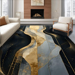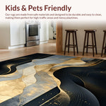 Ultra Soft Area Rug, Non Slip, Stain Resistant, Washable Area Rugs for Living Room, Bedroom, Modern Abstract Rug with Flowing Lines and Metallic Accents(Black) Overview: