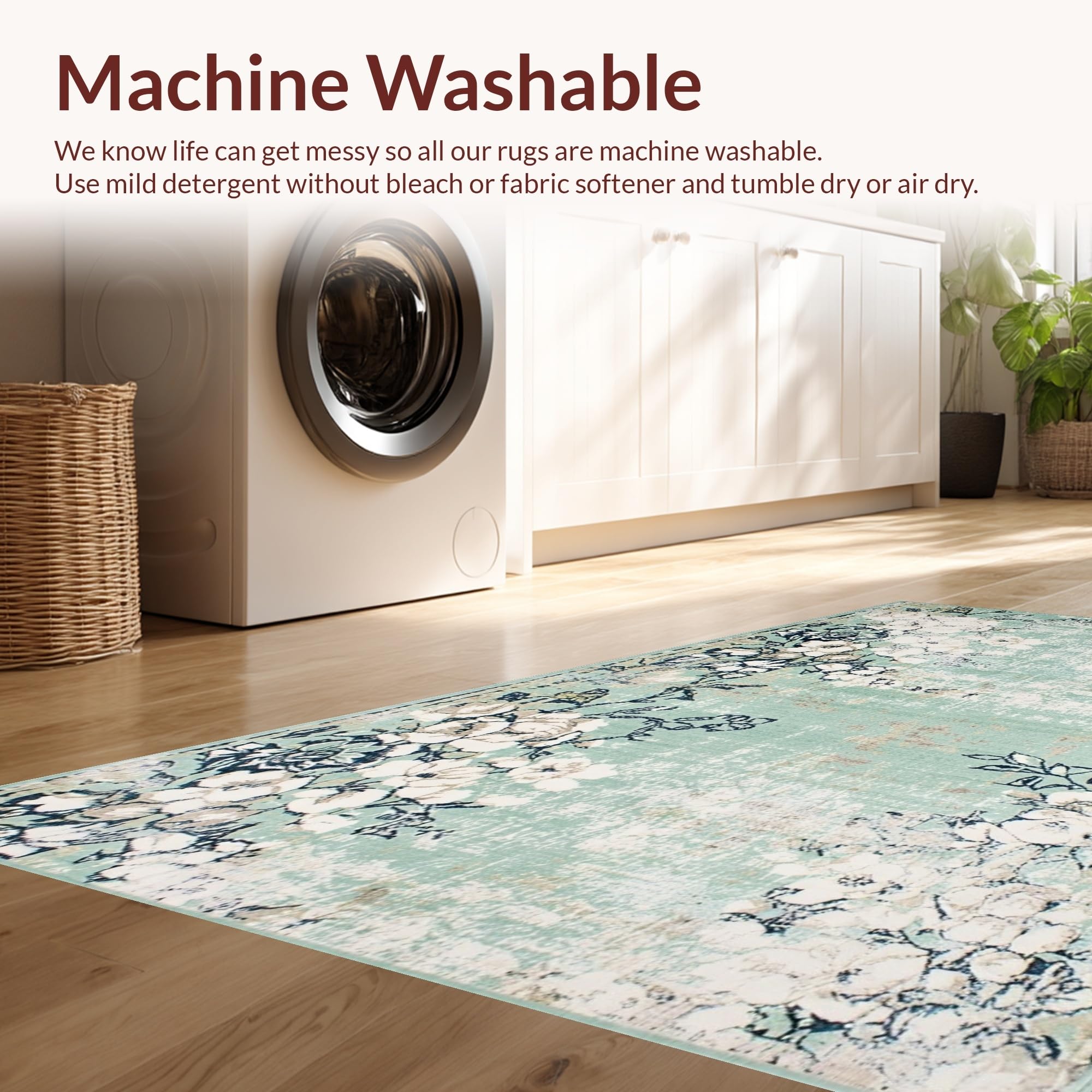 - Machine Washable: Our rugs can be easily thrown in the wash machine.